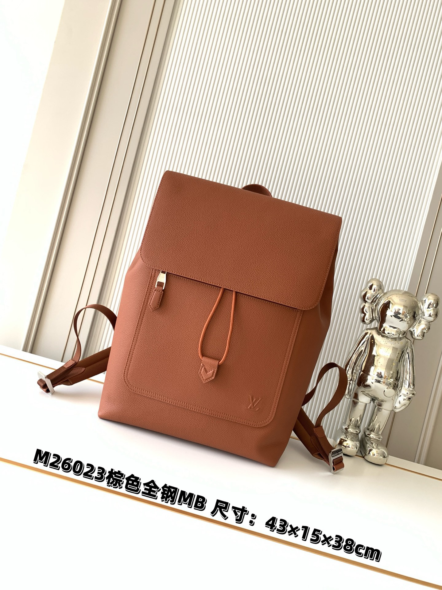 秋冬特惠💰1600 渠道级LV【全钢五金 原厂皮MB163c01变码芯片】te级LV 全套包装 M26023棕色 Fastline 大号双肩包取材柔软耐磨的蜡面牛皮革,以粒面纹理和压纹 LV 字母打造摩登商务之选。宽敞内部空间彰显功能考量,加衬内贴袋可轻松存放 16 寸笔记本电脑。
