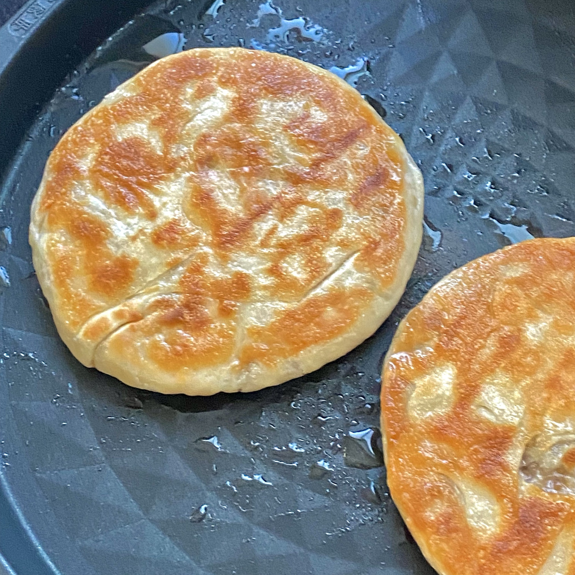 满满煎烤后,肉馅油脂慢慢渗透出,