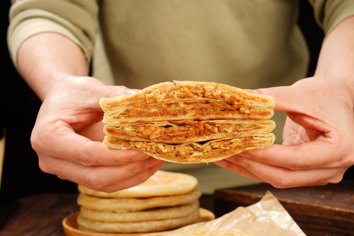 一层层薄如纸的面皮夹着扎实的肉馅!