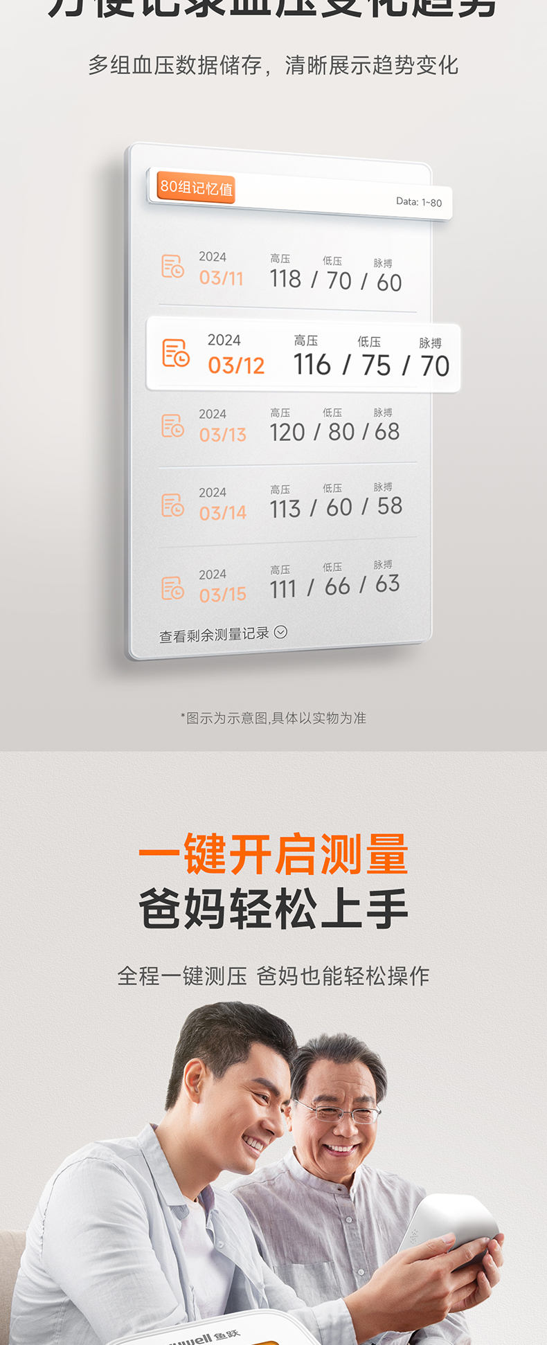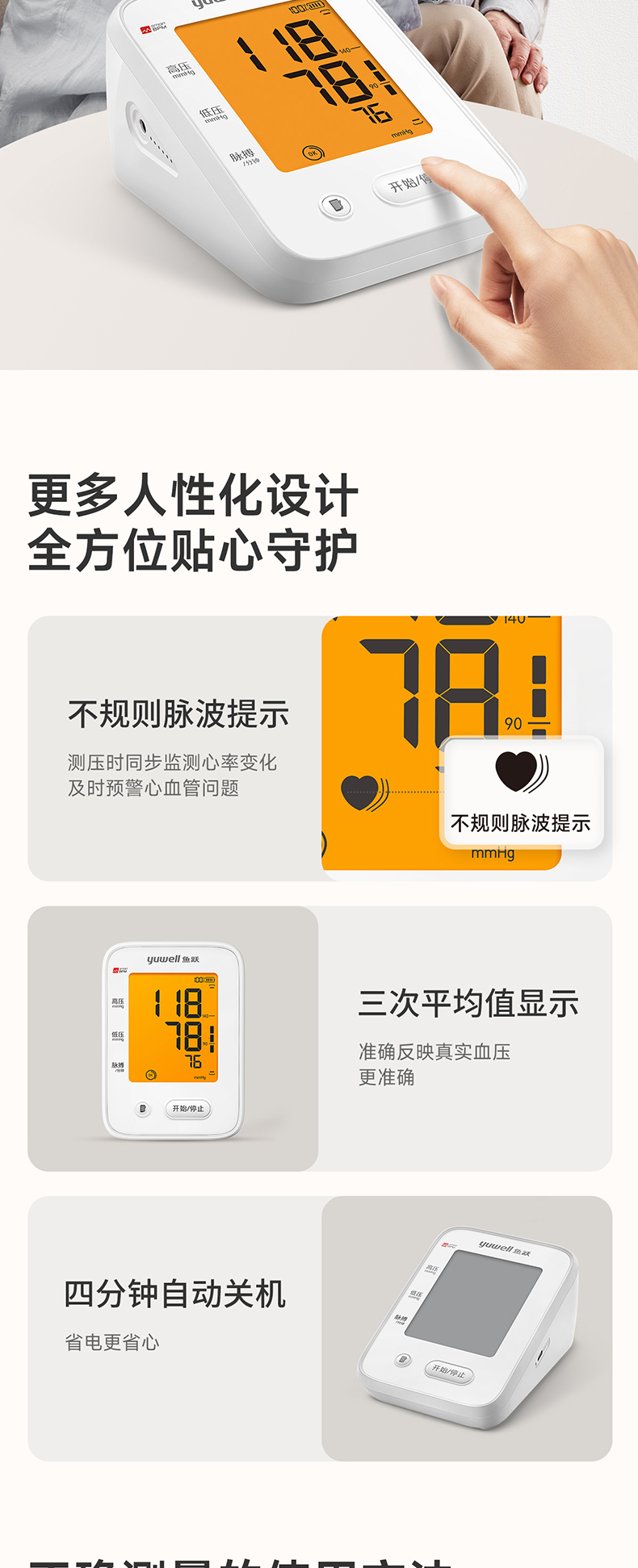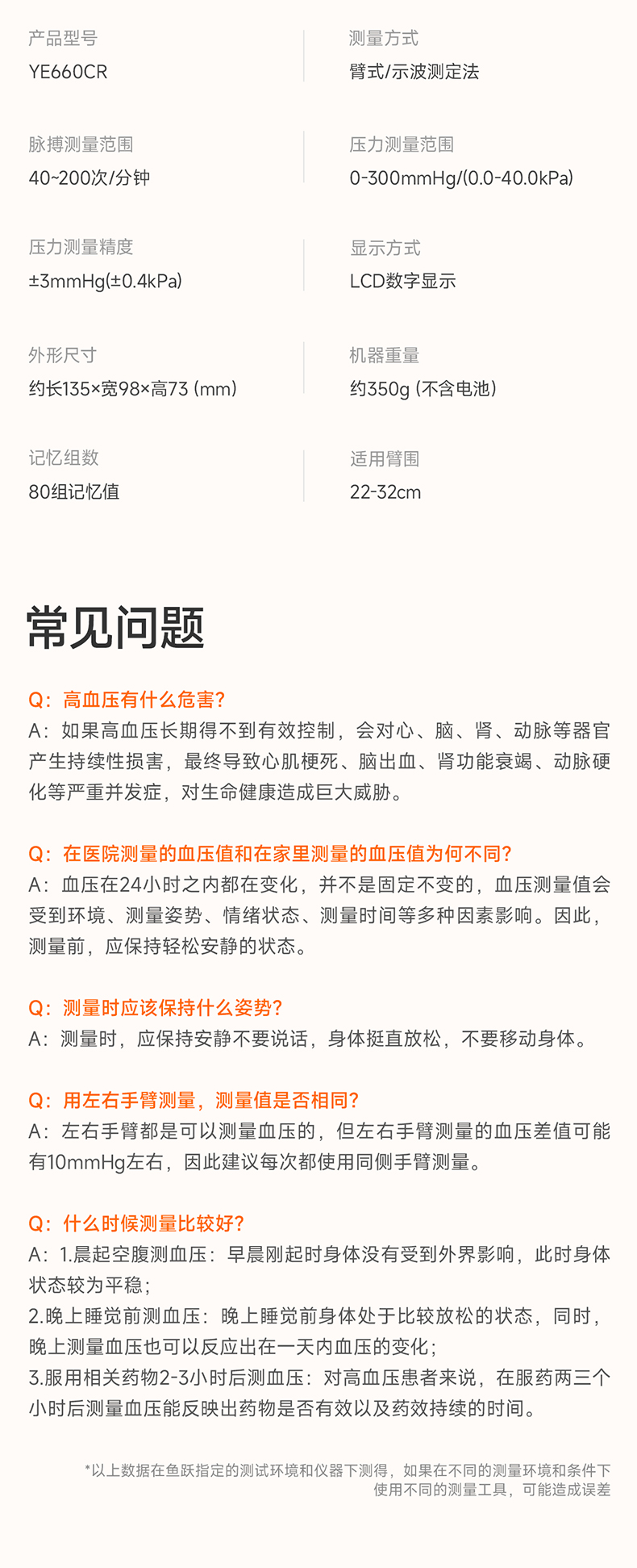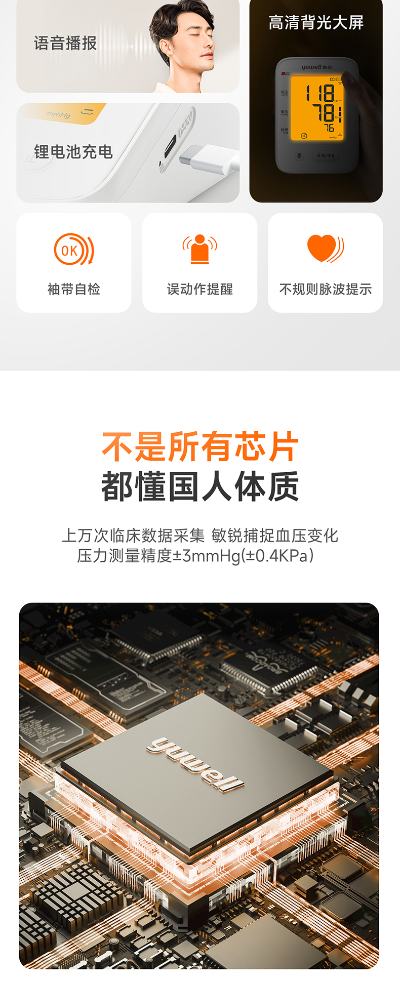 鱼跃YE660CR电子血压计上臂式语音背光充电款