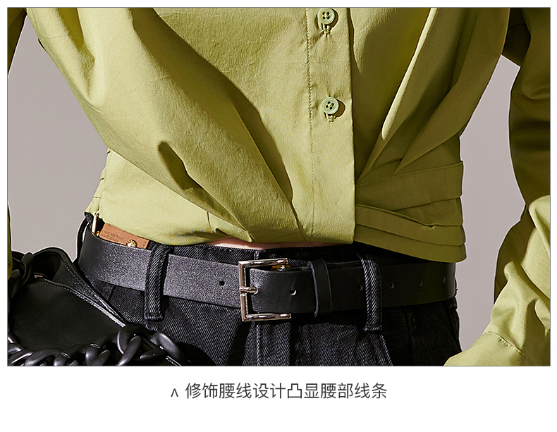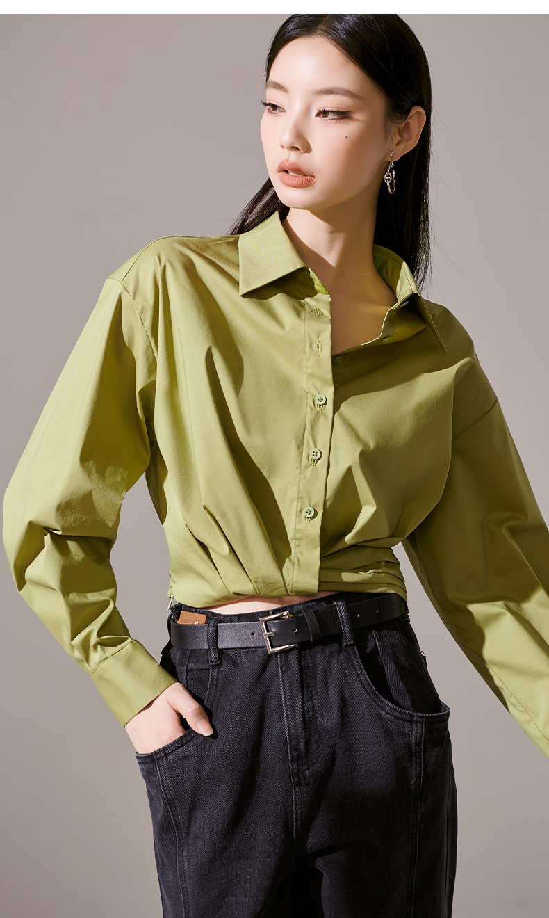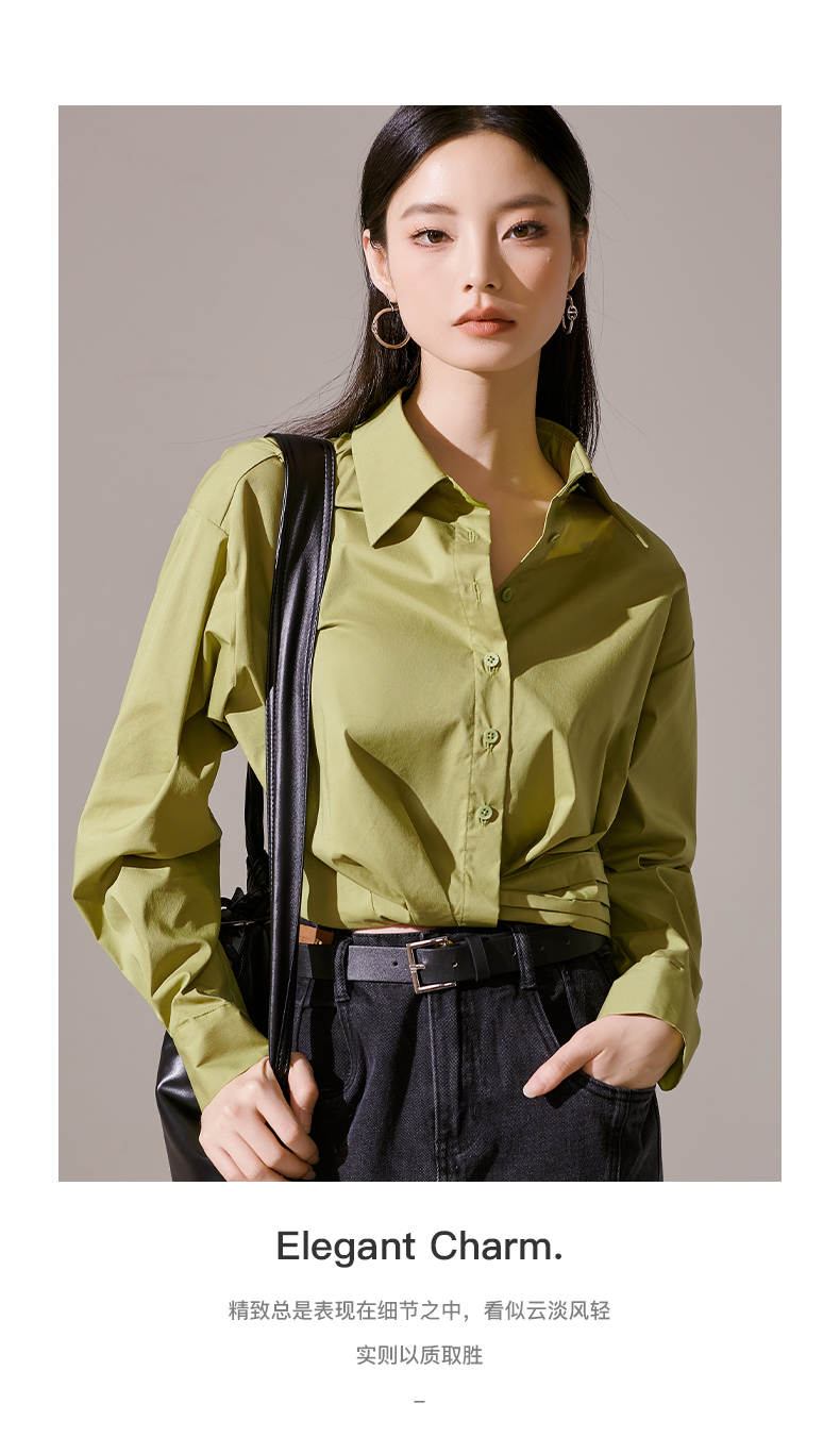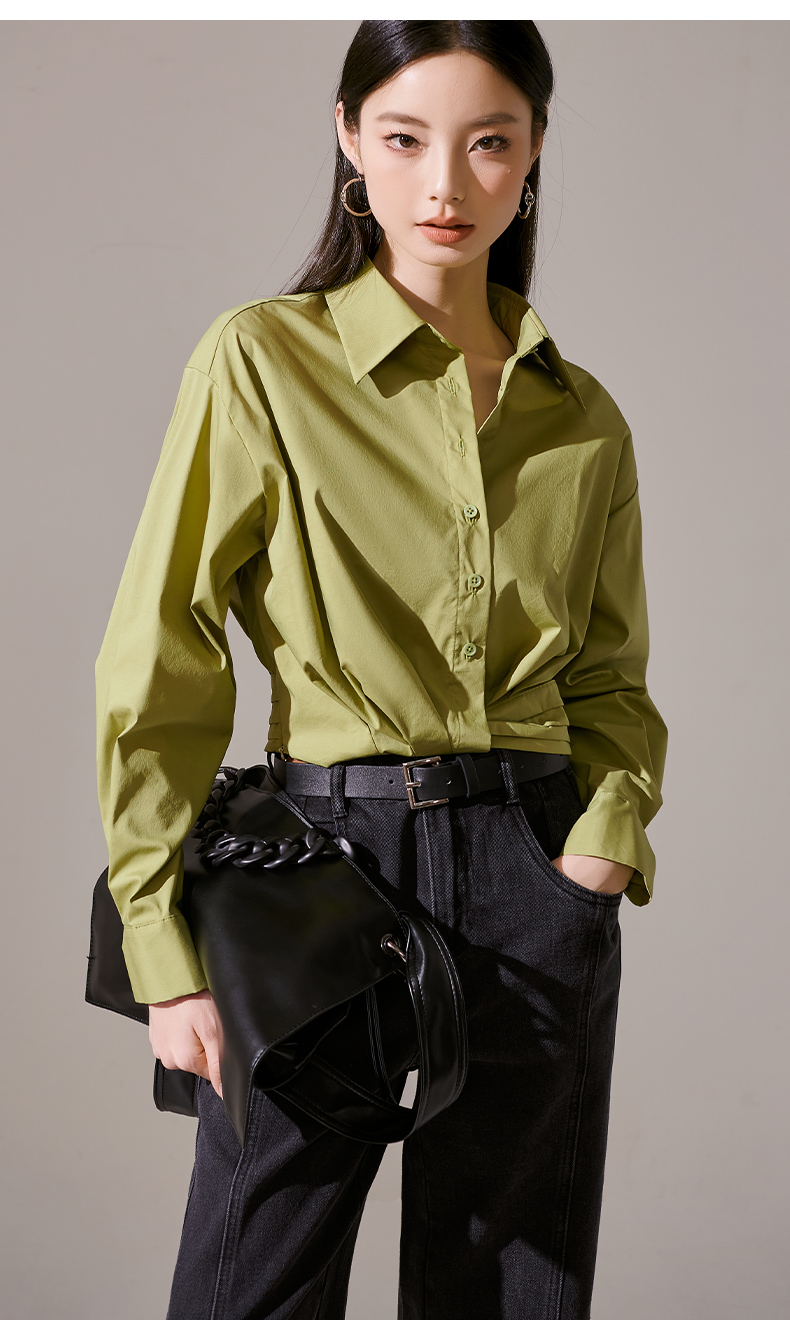剩L 芳外秋季新款气质长袖上衣简约设计感下摆捏褶衬衫1418