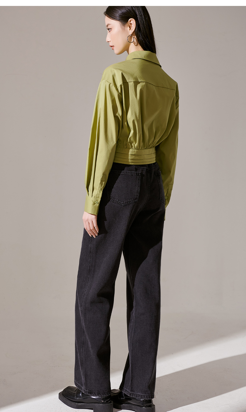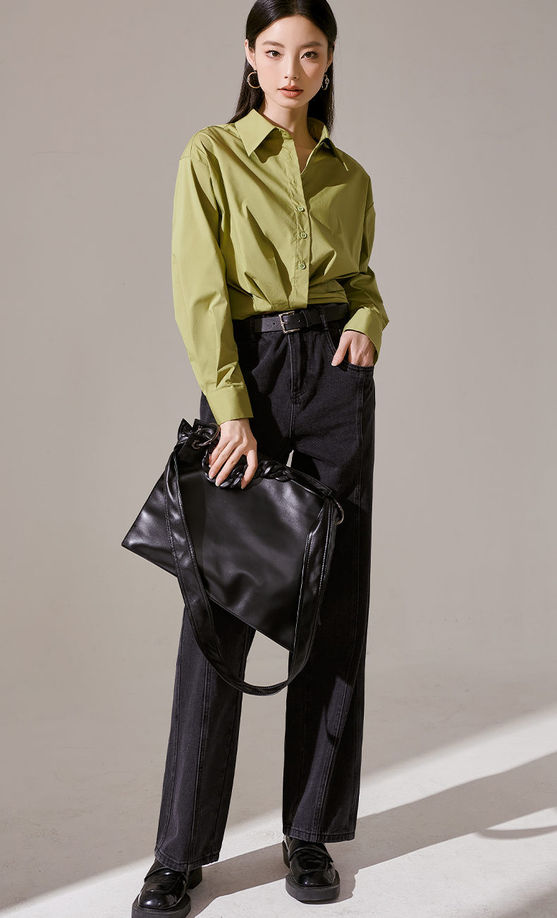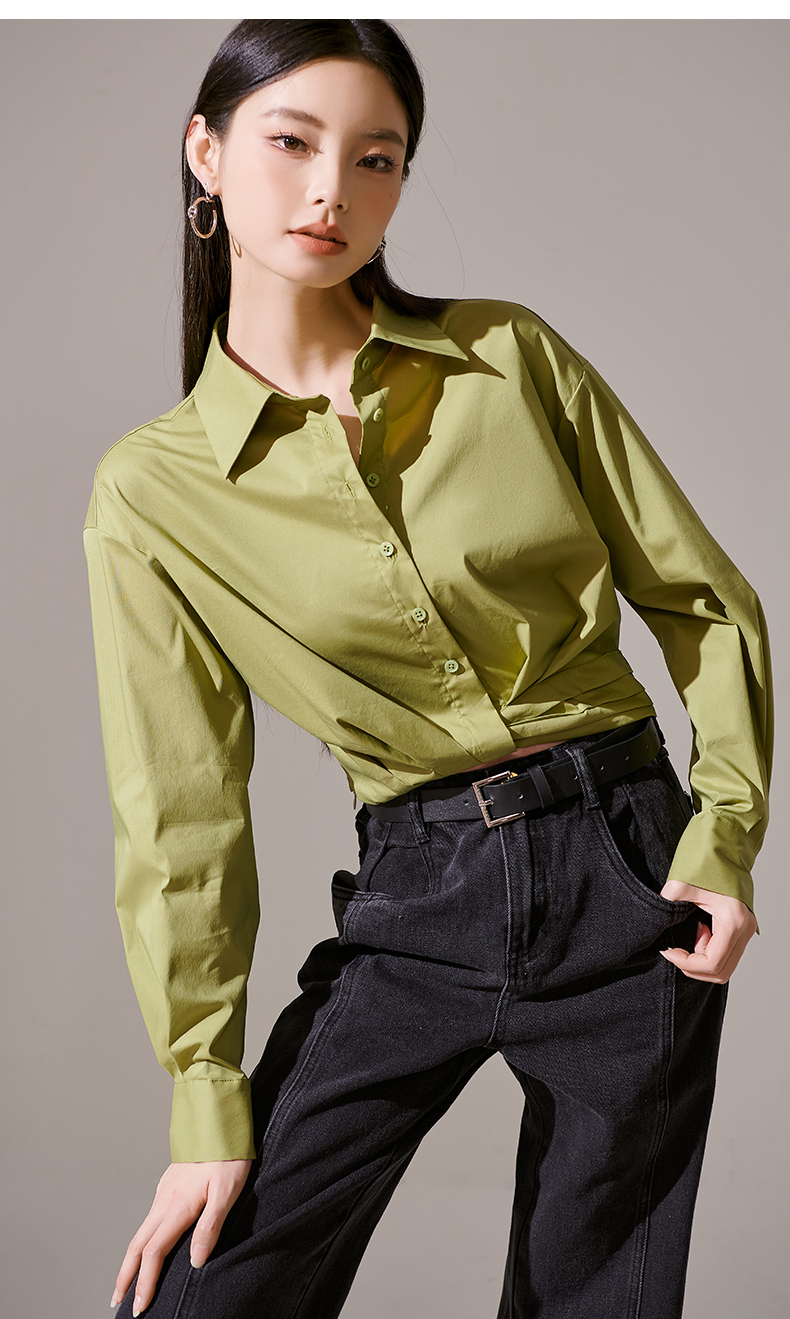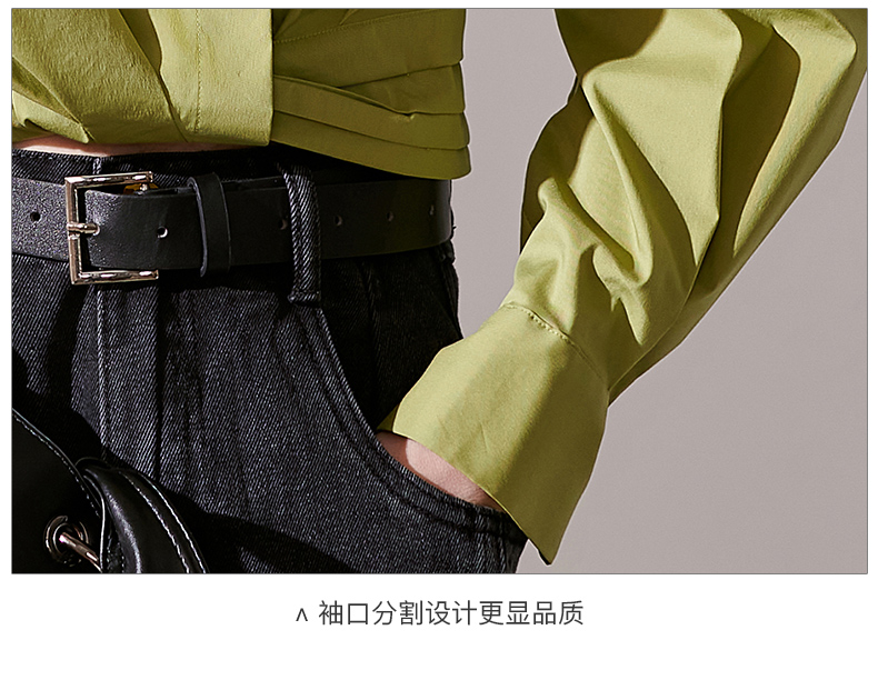剩L 芳外秋季新款气质长袖上衣简约设计感下摆捏褶衬衫1418