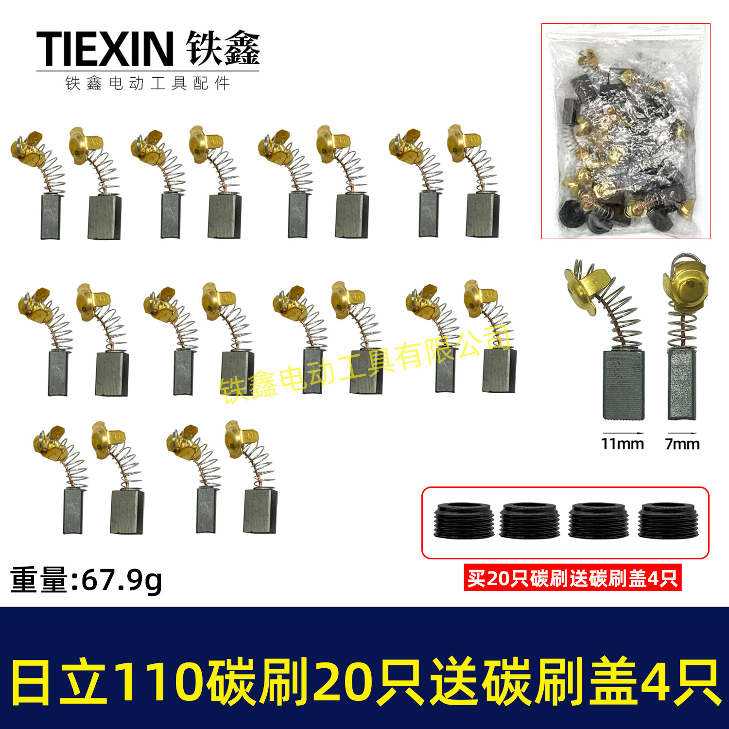 【货号08036】日立110切割机飞机钻碳刷43#碳刷7*11碳刷20只袋装送18MM碳刷盖4只