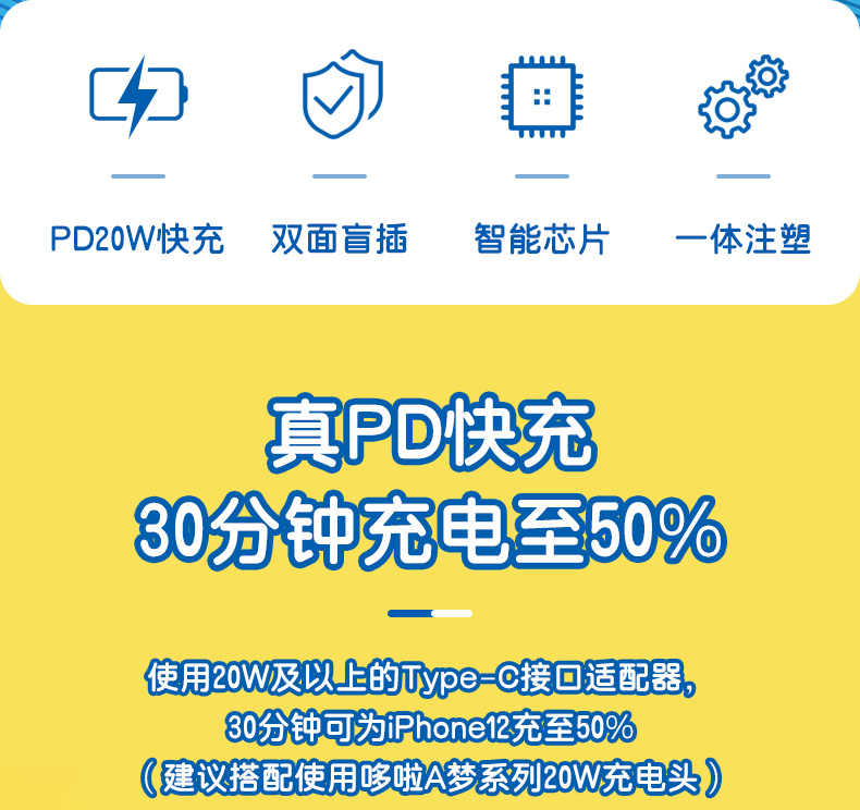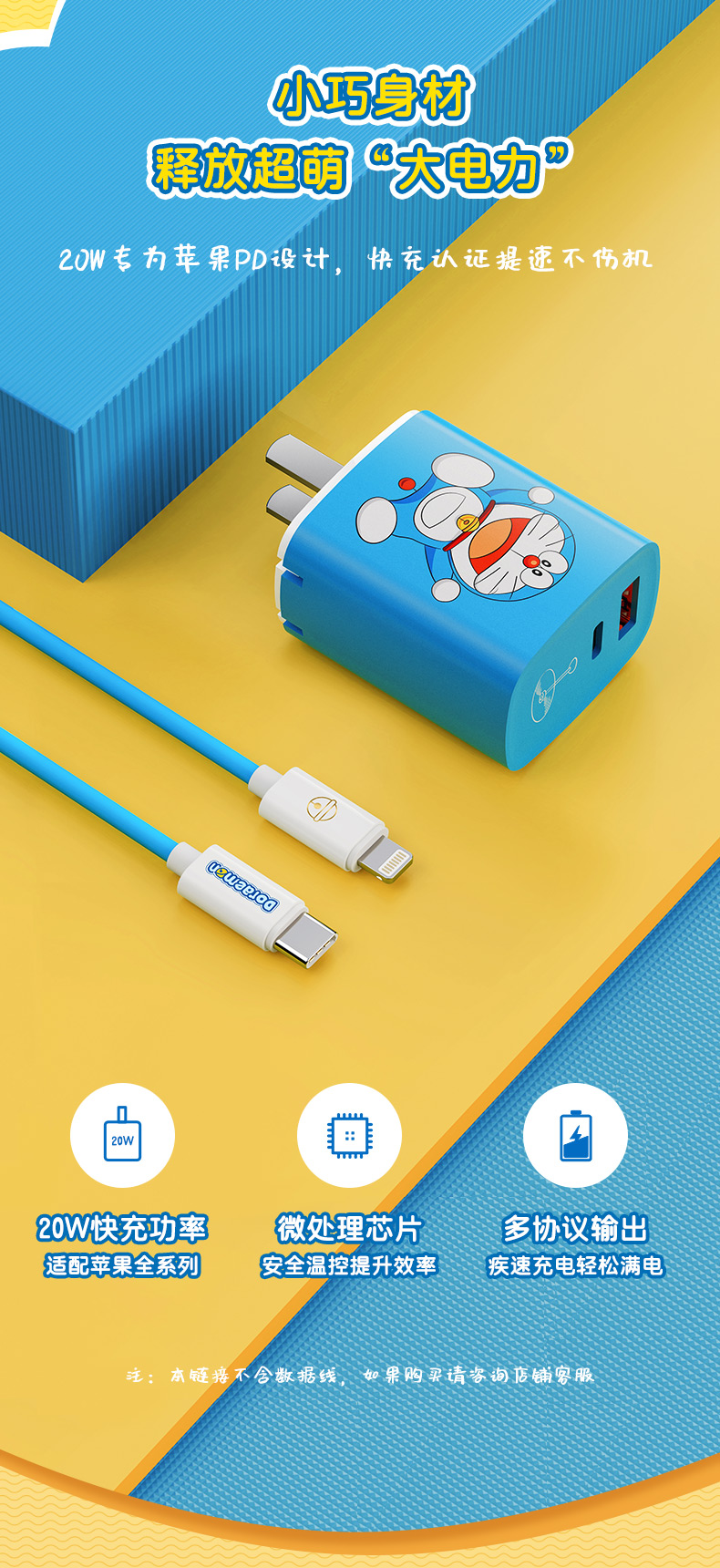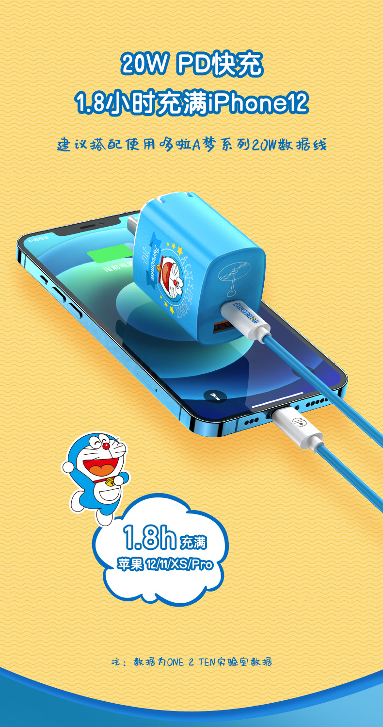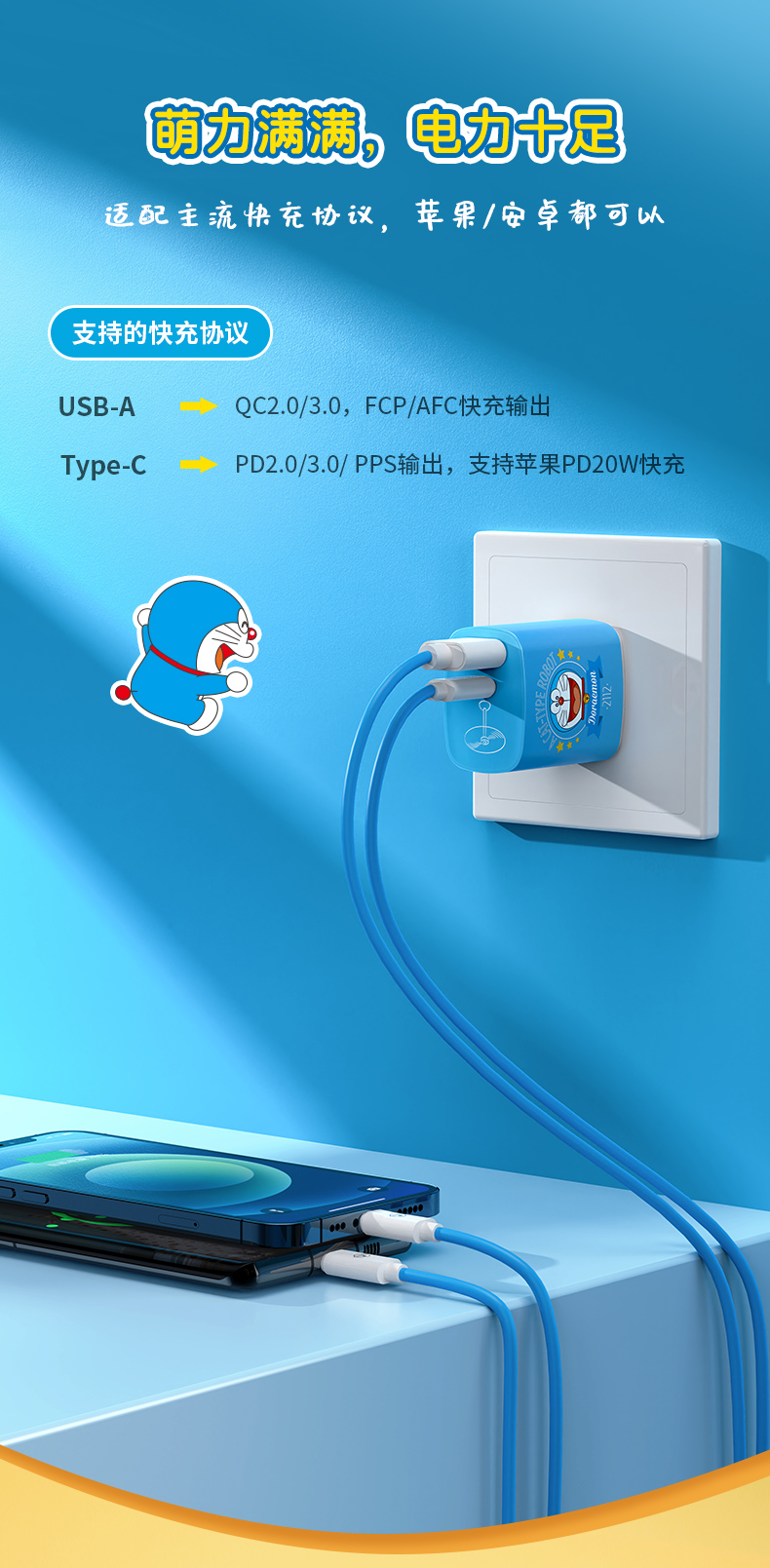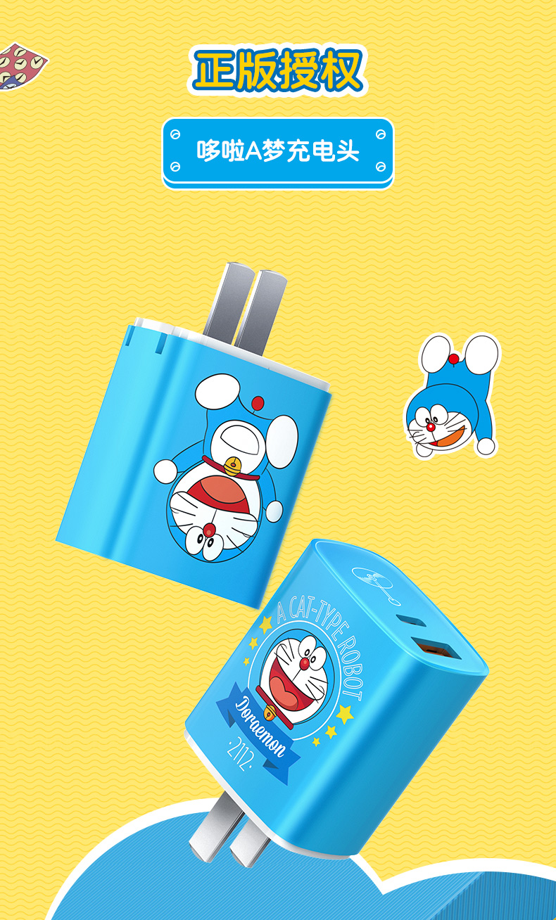 哆啦A梦双口折叠PD20W旅行快充充电器