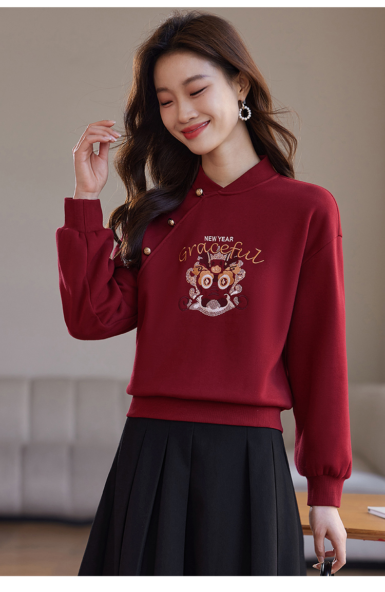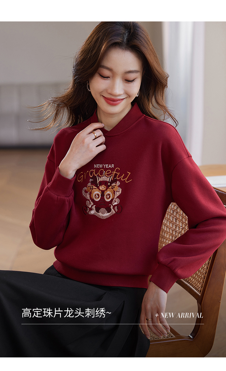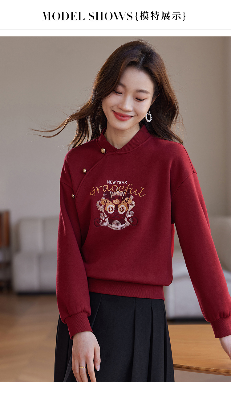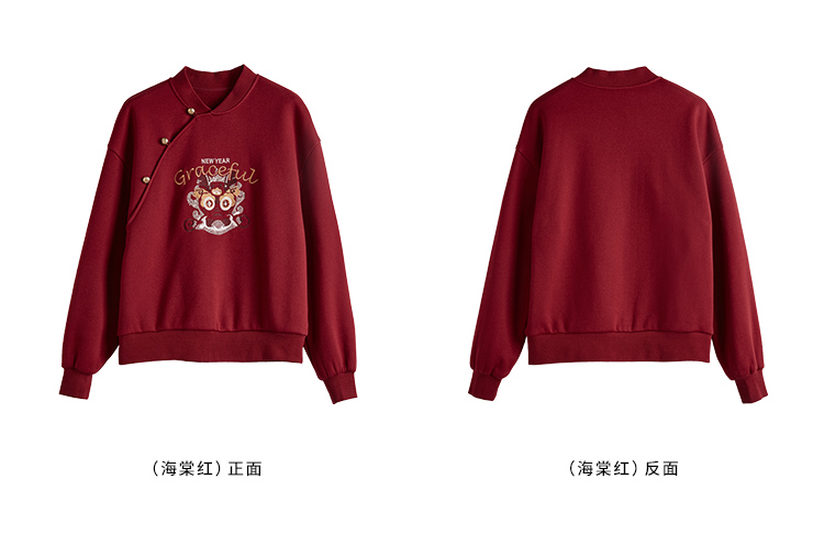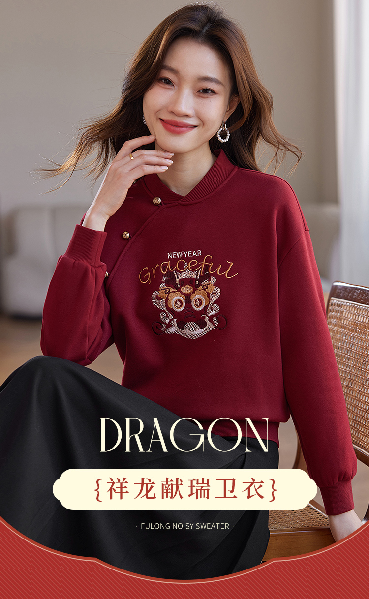 【年货节】熙世界本命年衣服秋冬国风国潮套头上衣红色加绒卫衣