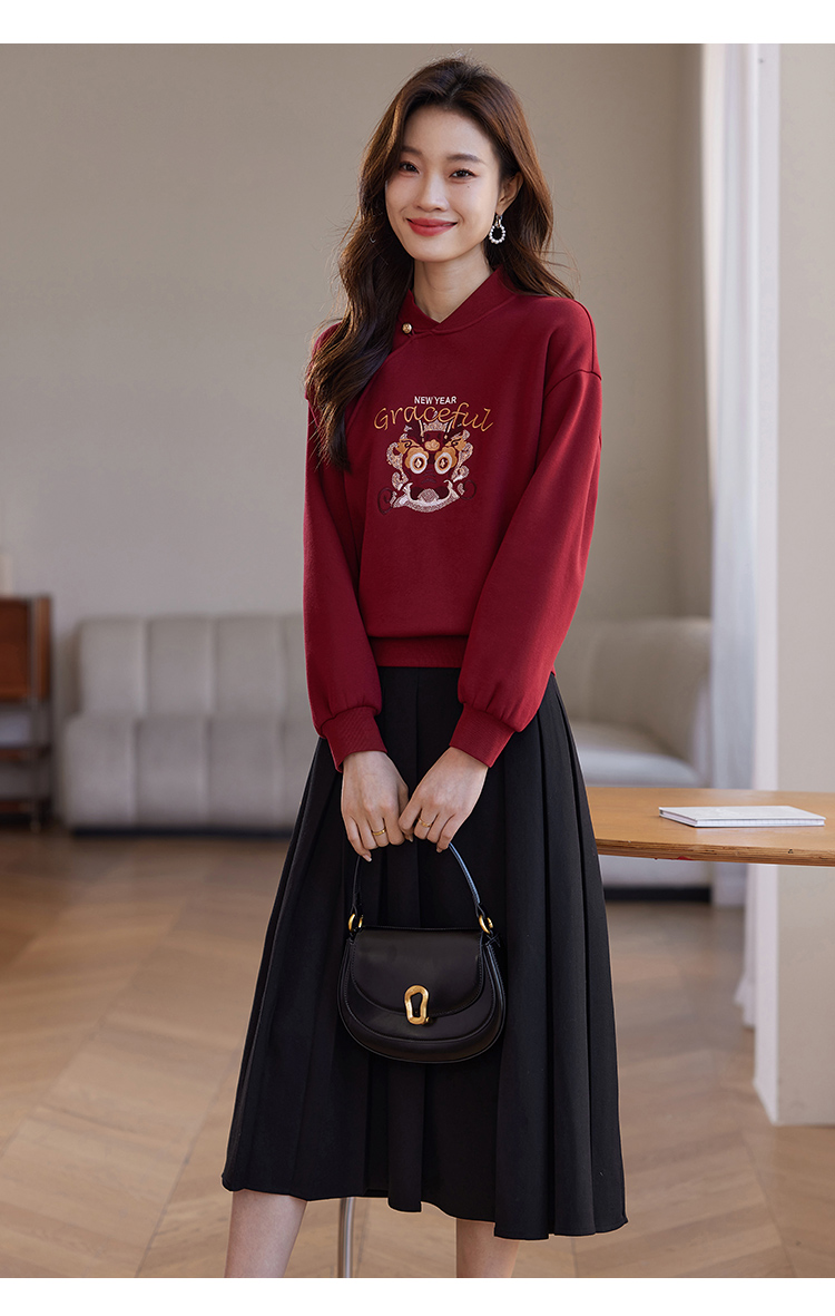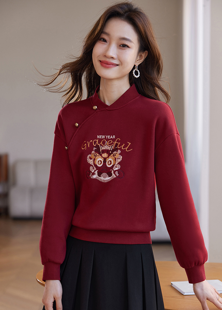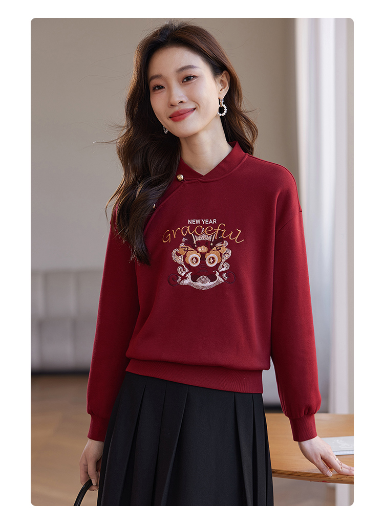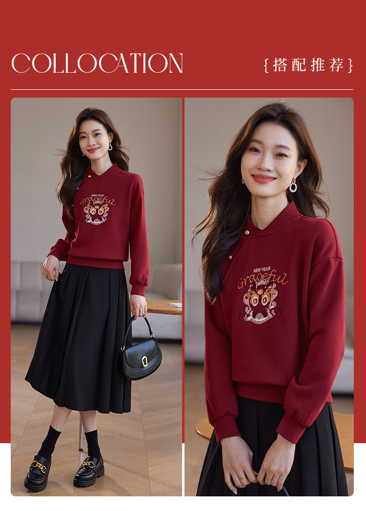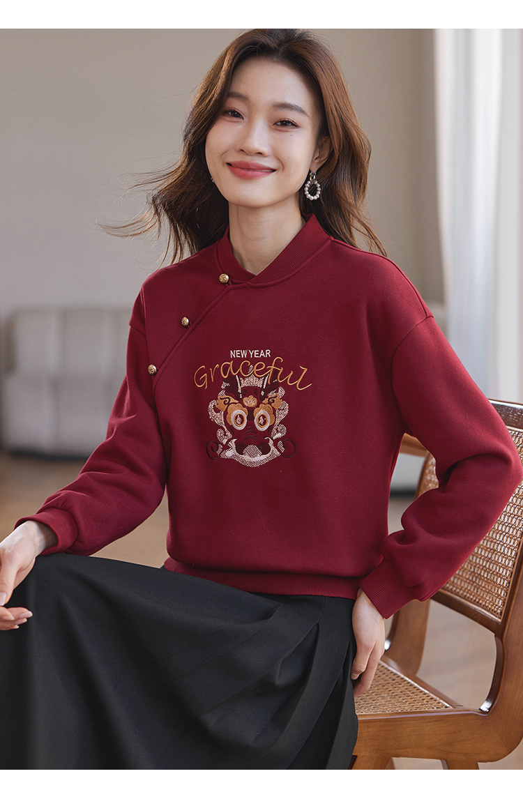 【年货节】熙世界本命年衣服秋冬国风国潮套头上衣红色加绒卫衣