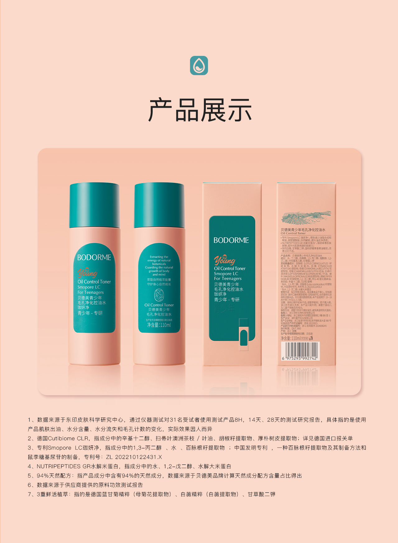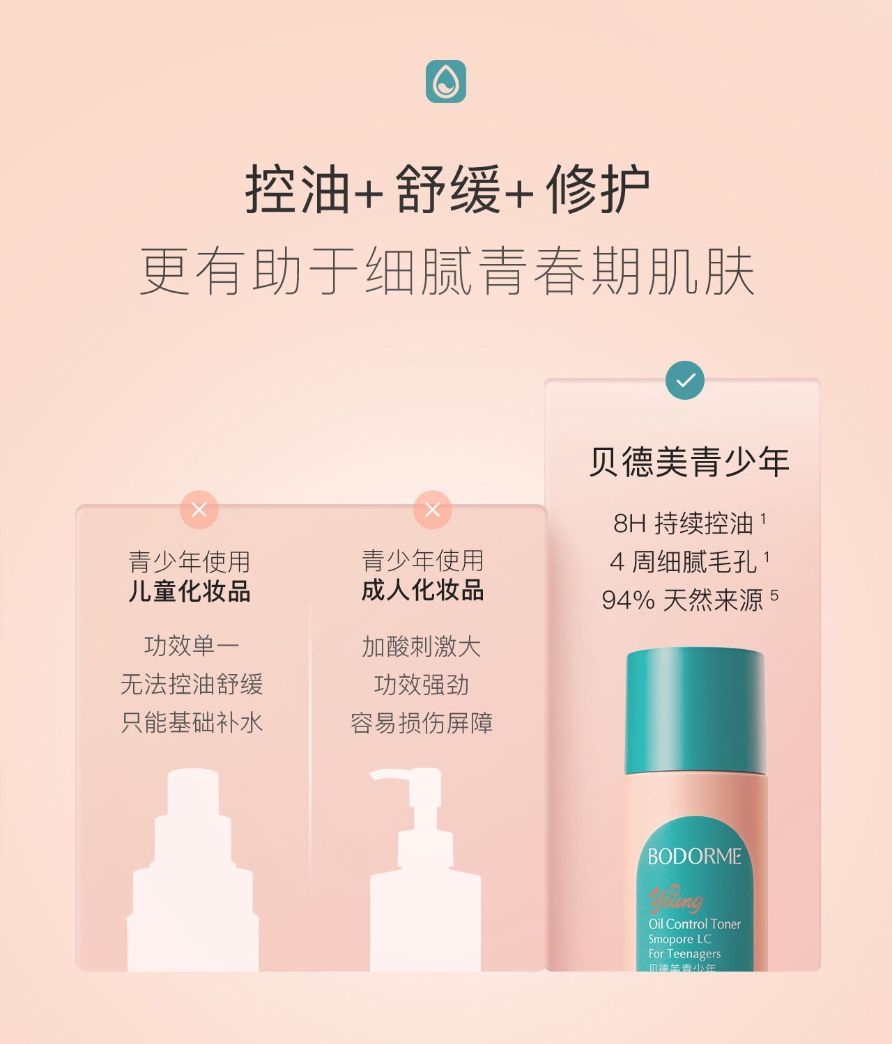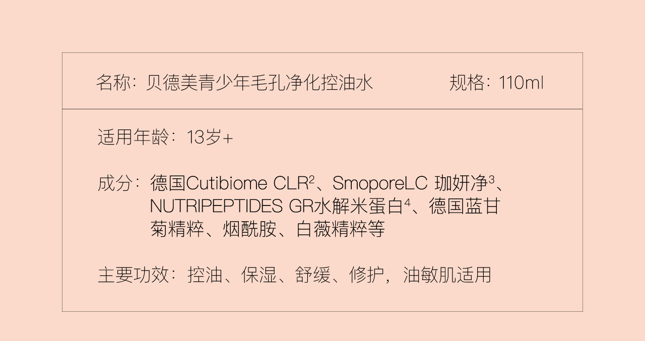 贝德美青少年毛孔净化控油水110ml