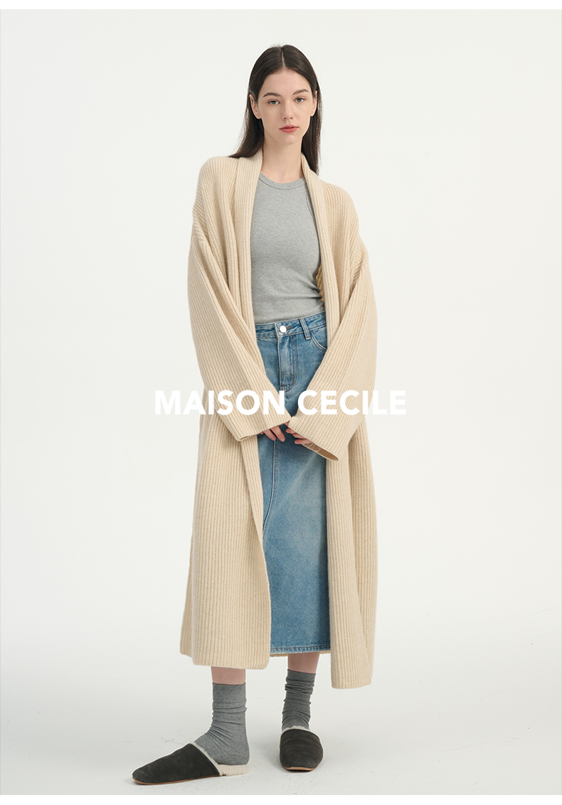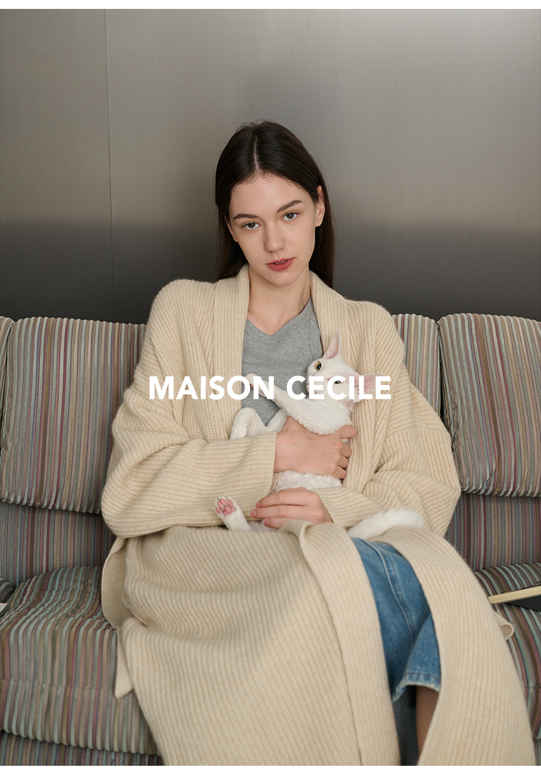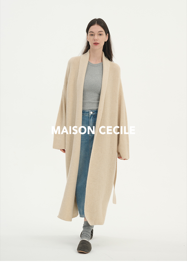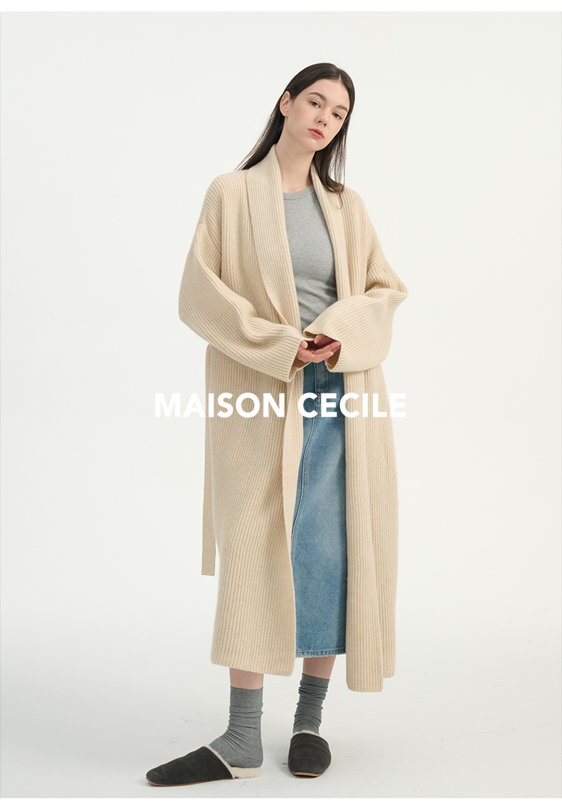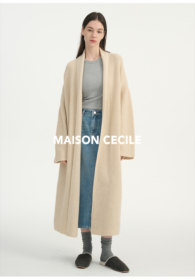 MAISON CECILE燕麦色羊绒高克重温暖软糯长款大衣开衫