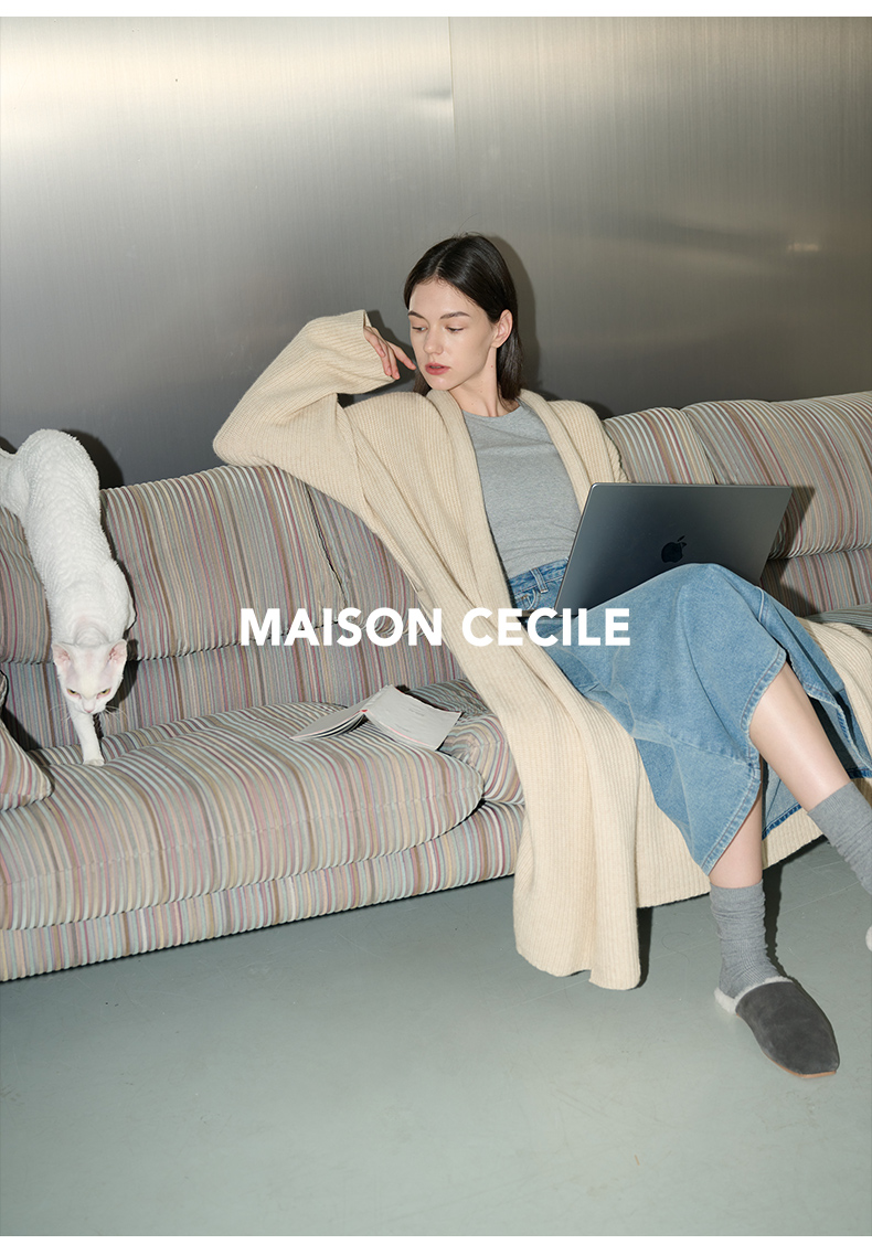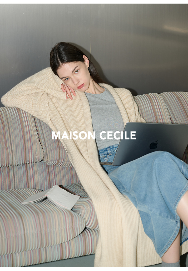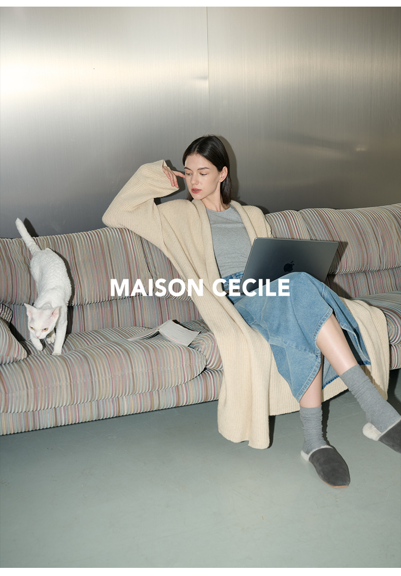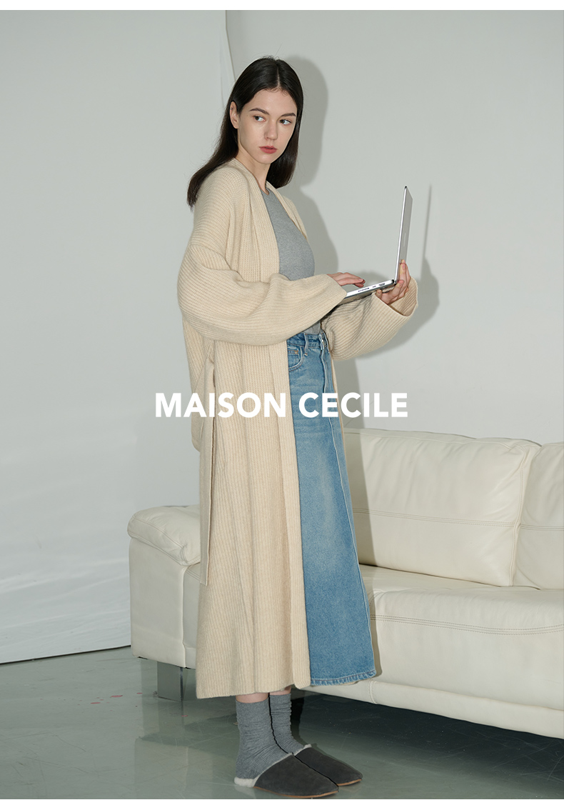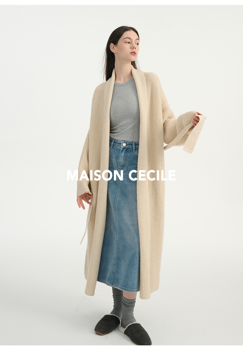MAISON CECILE燕麦色羊绒高克重温暖软糯长款大衣开衫
