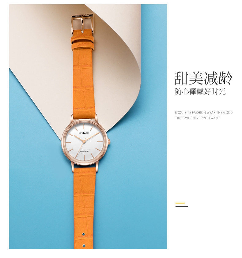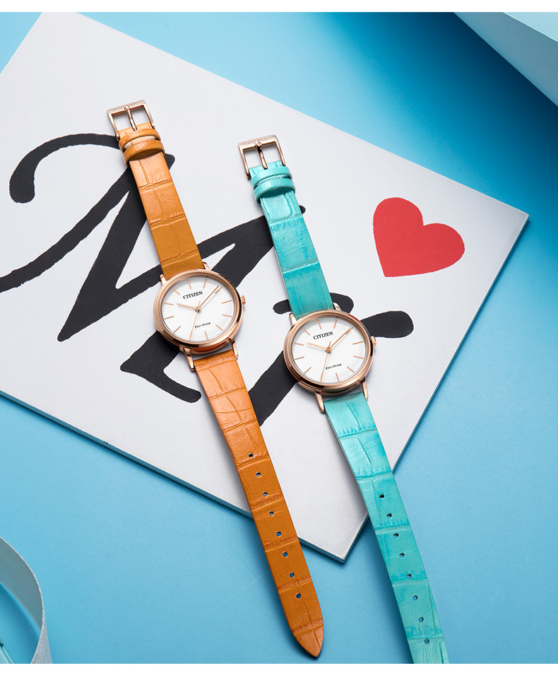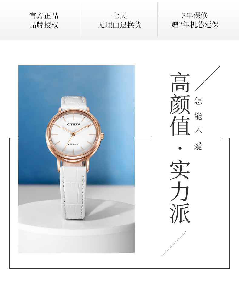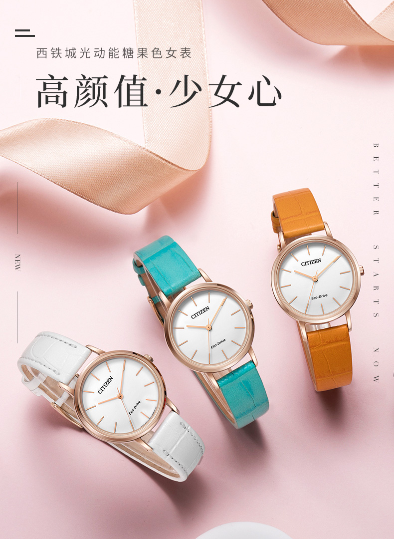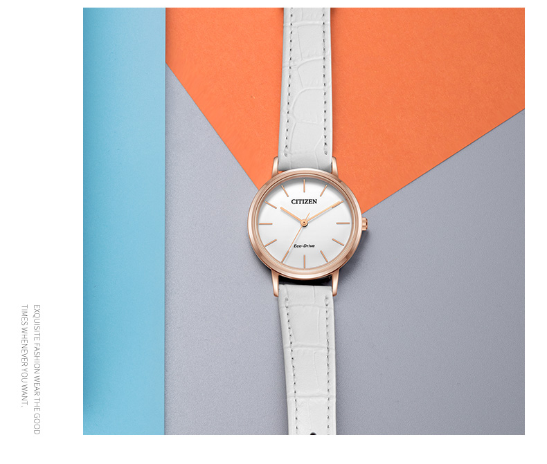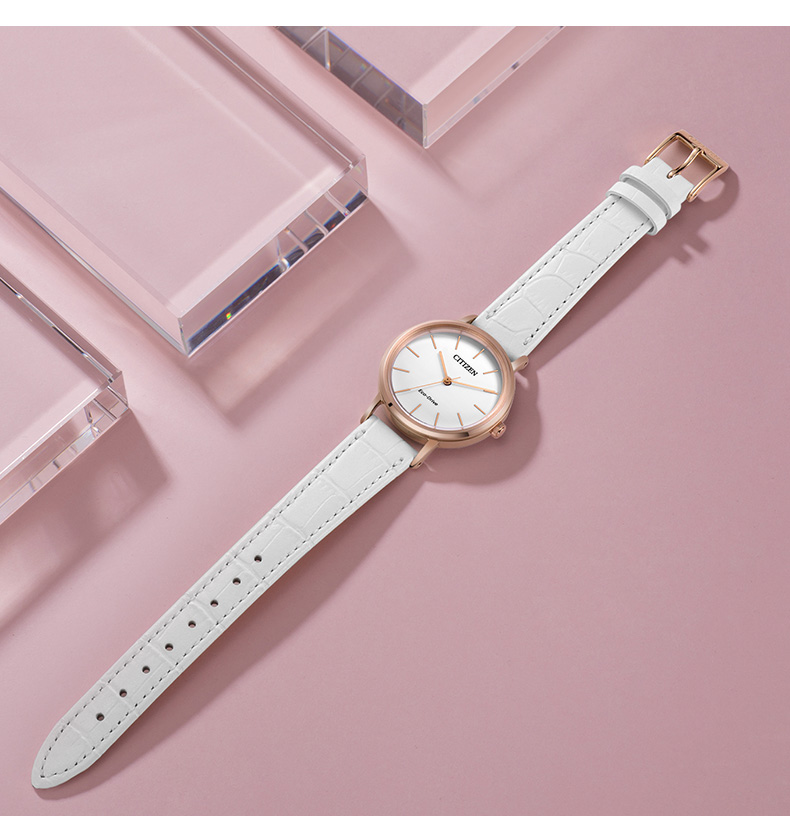 西铁城日本官方正品潮皮带光动能玫瑰金色女表EM0577-36A