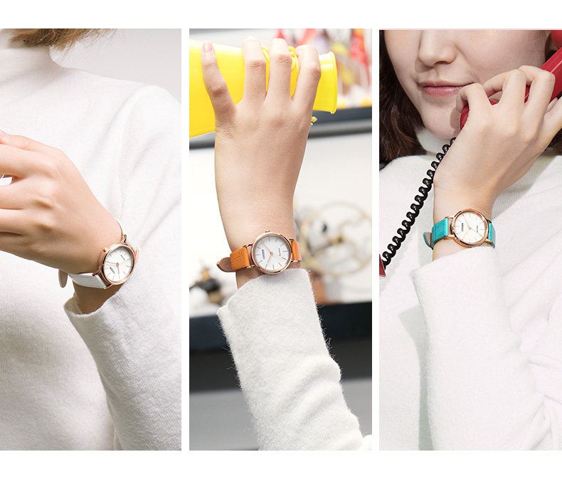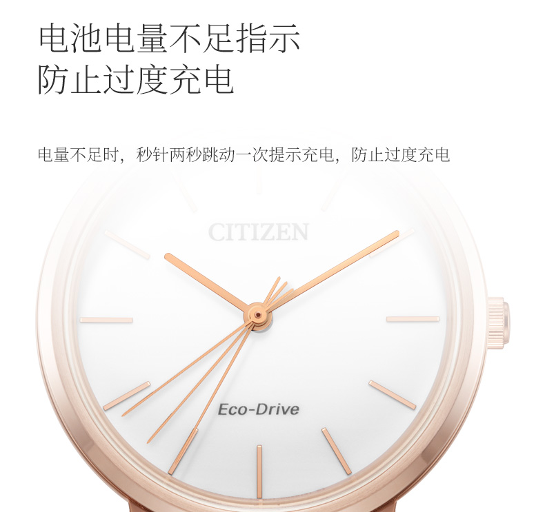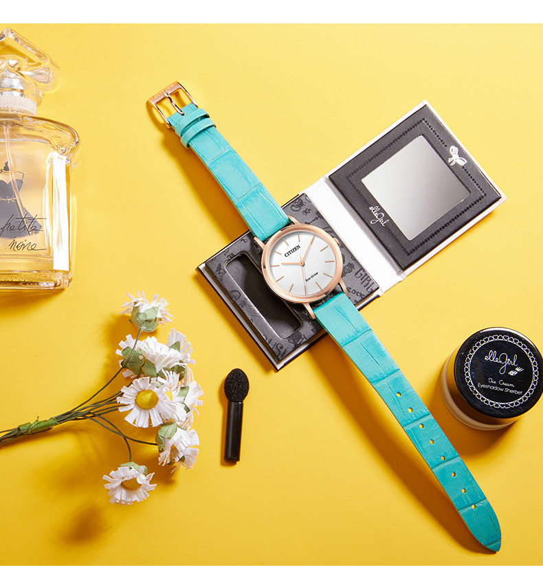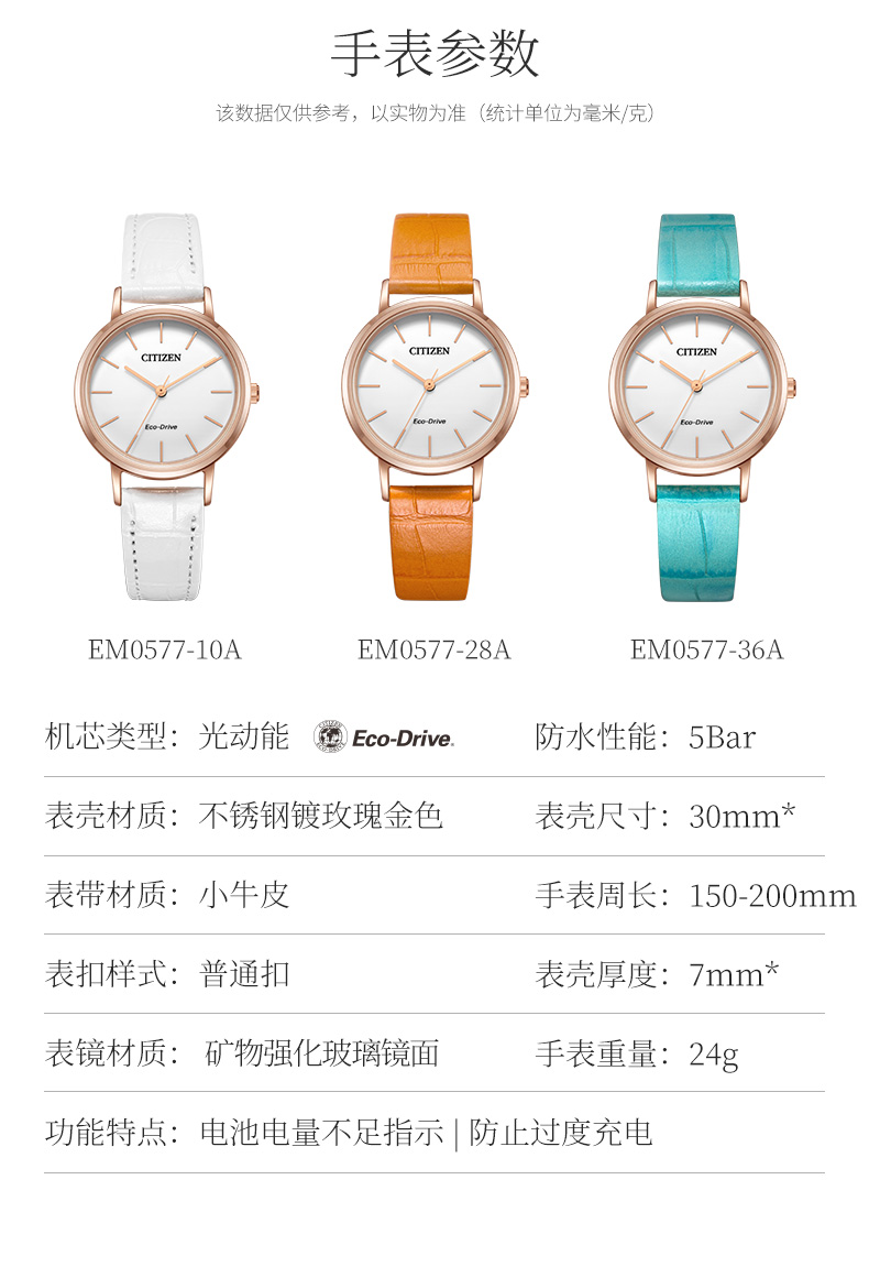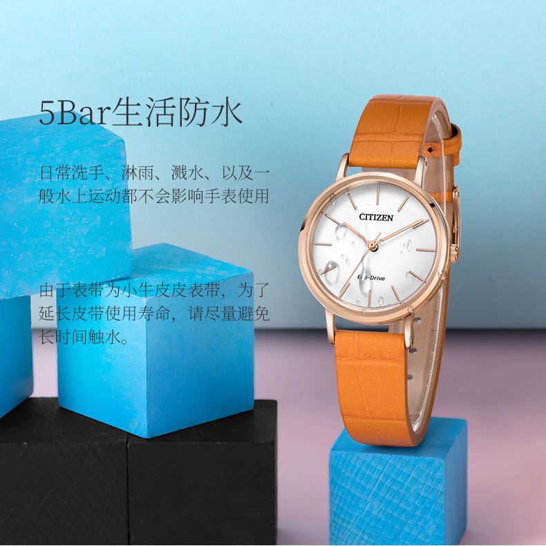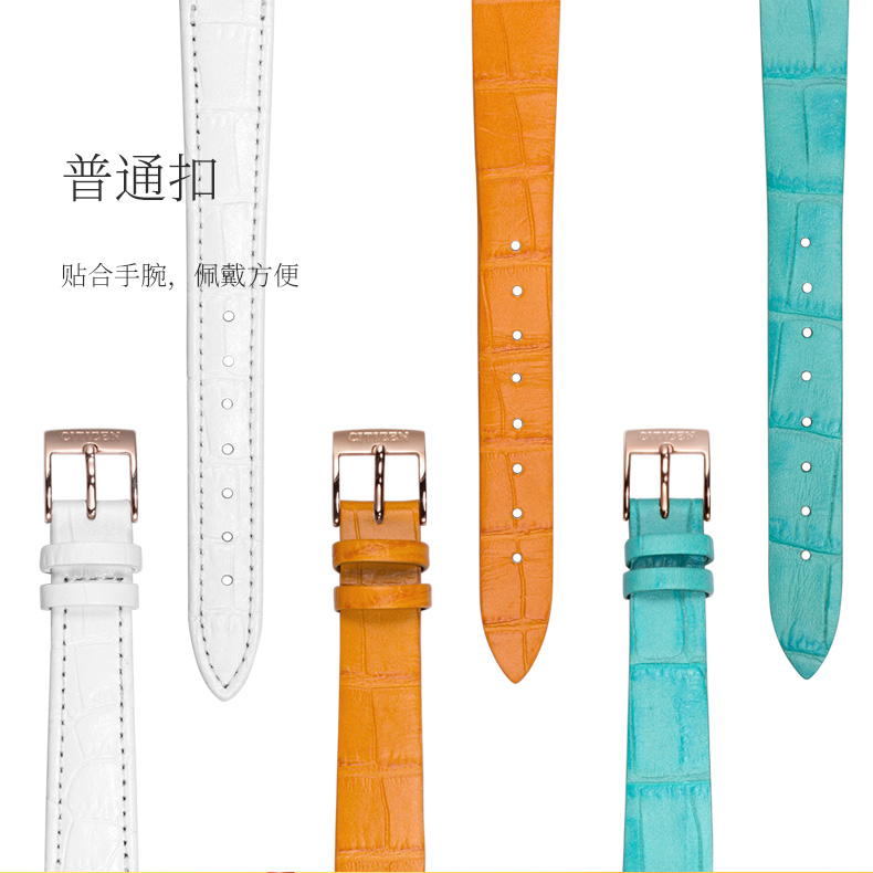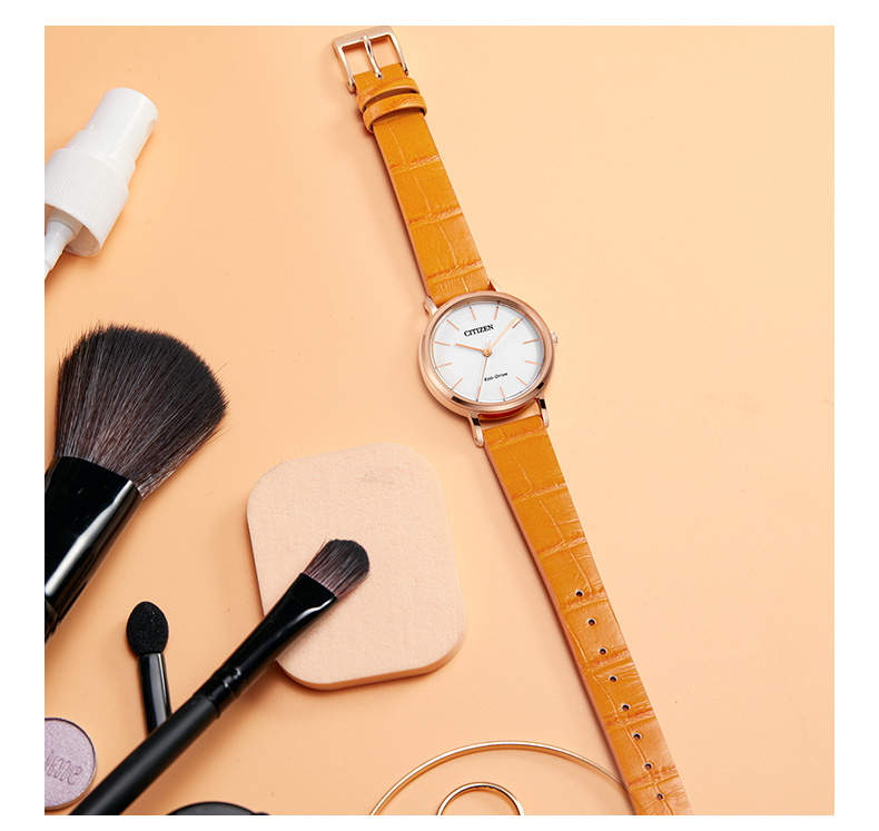 西铁城日本官方正品潮皮带光动能玫瑰金色女表EM0577-36A