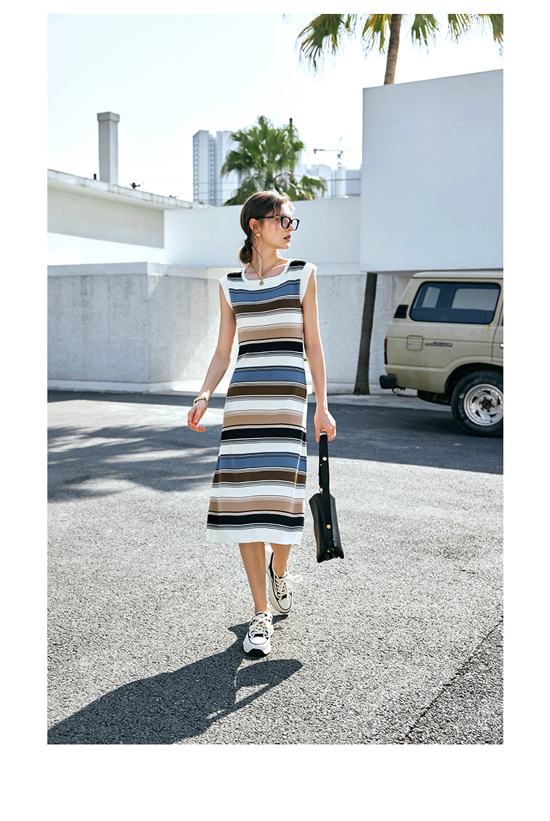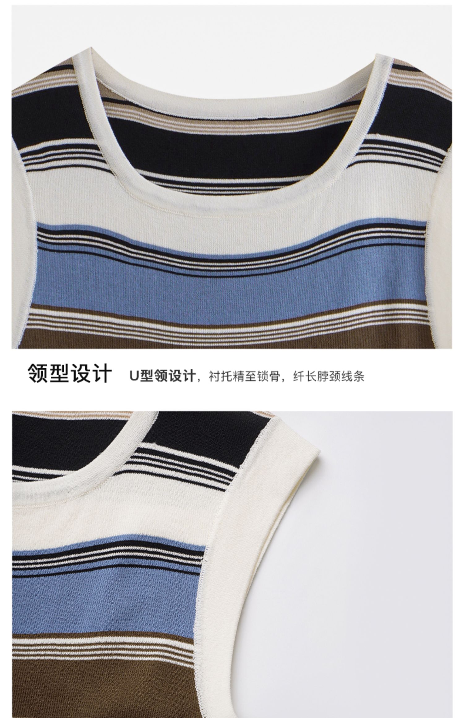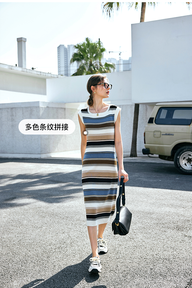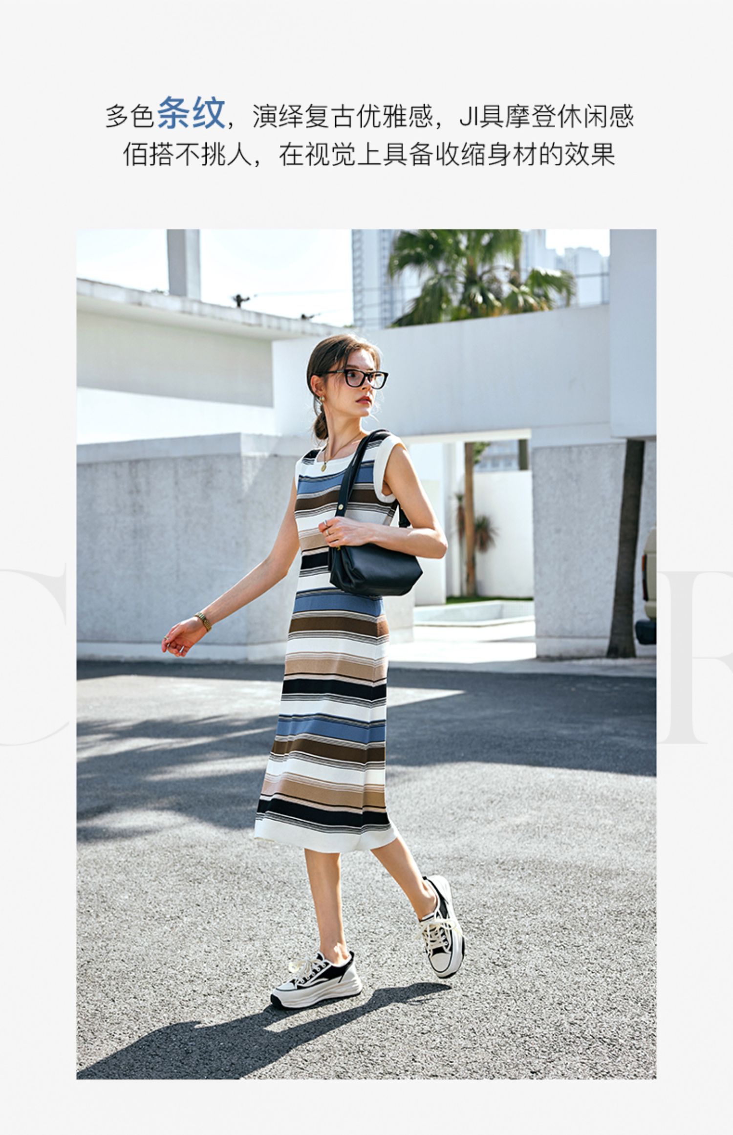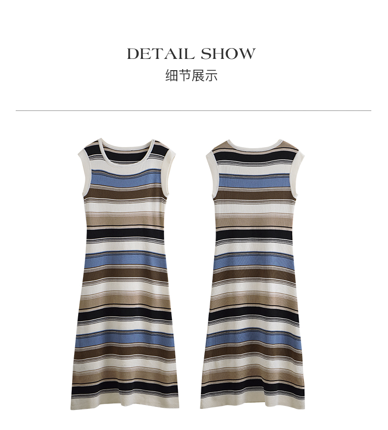 OLrain欧芮儿条纹连衣裙女早春2024年新款气质收腰针织无袖裙子