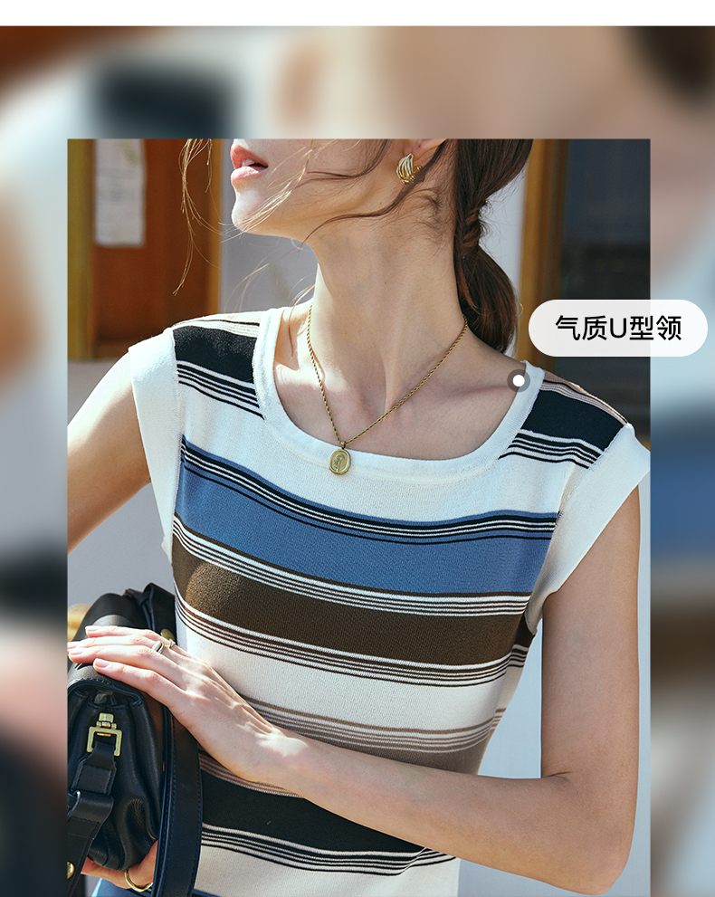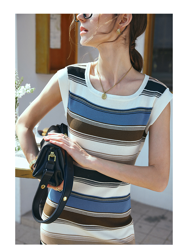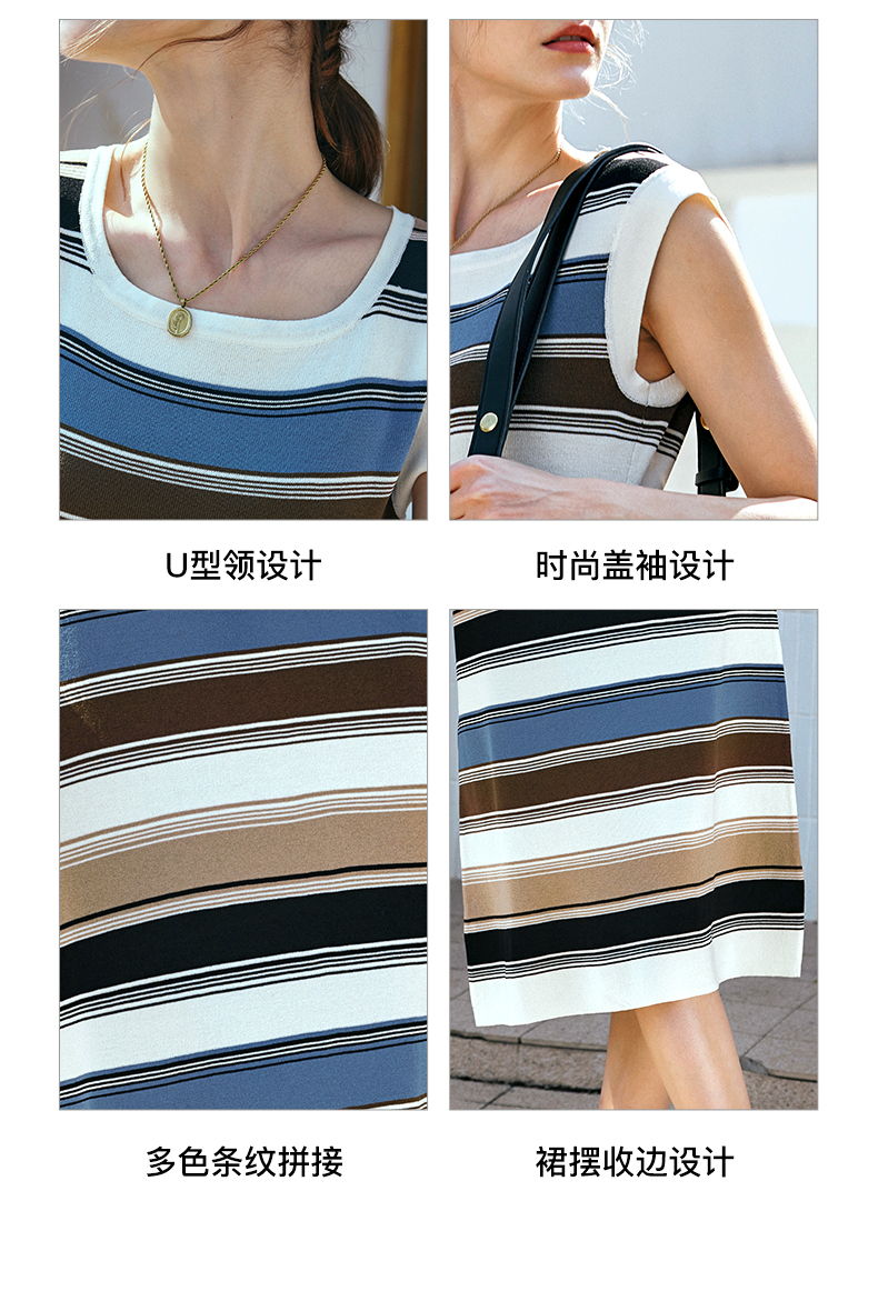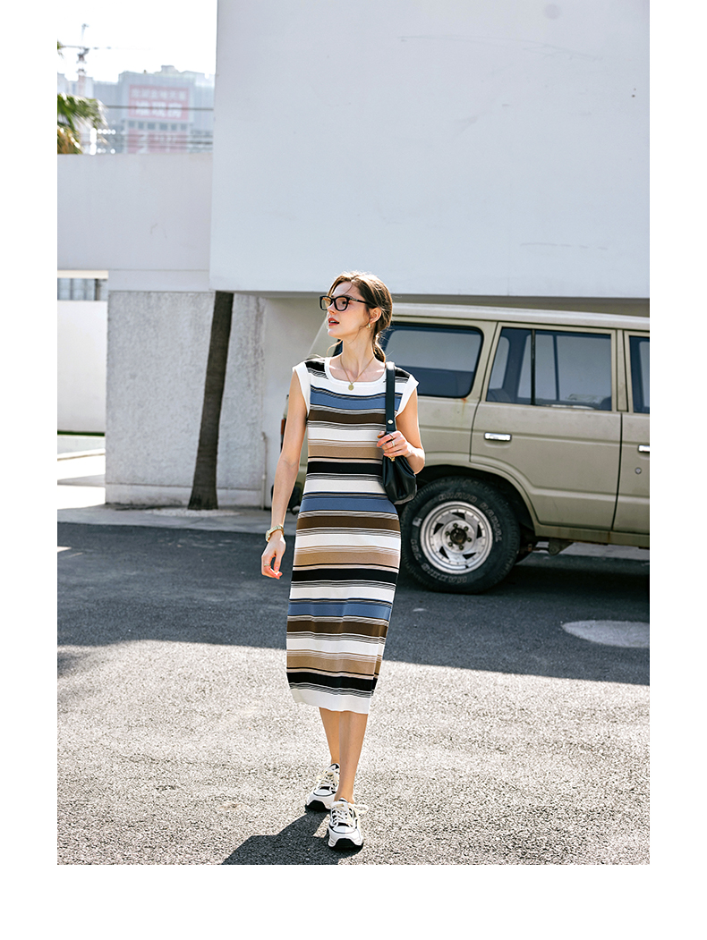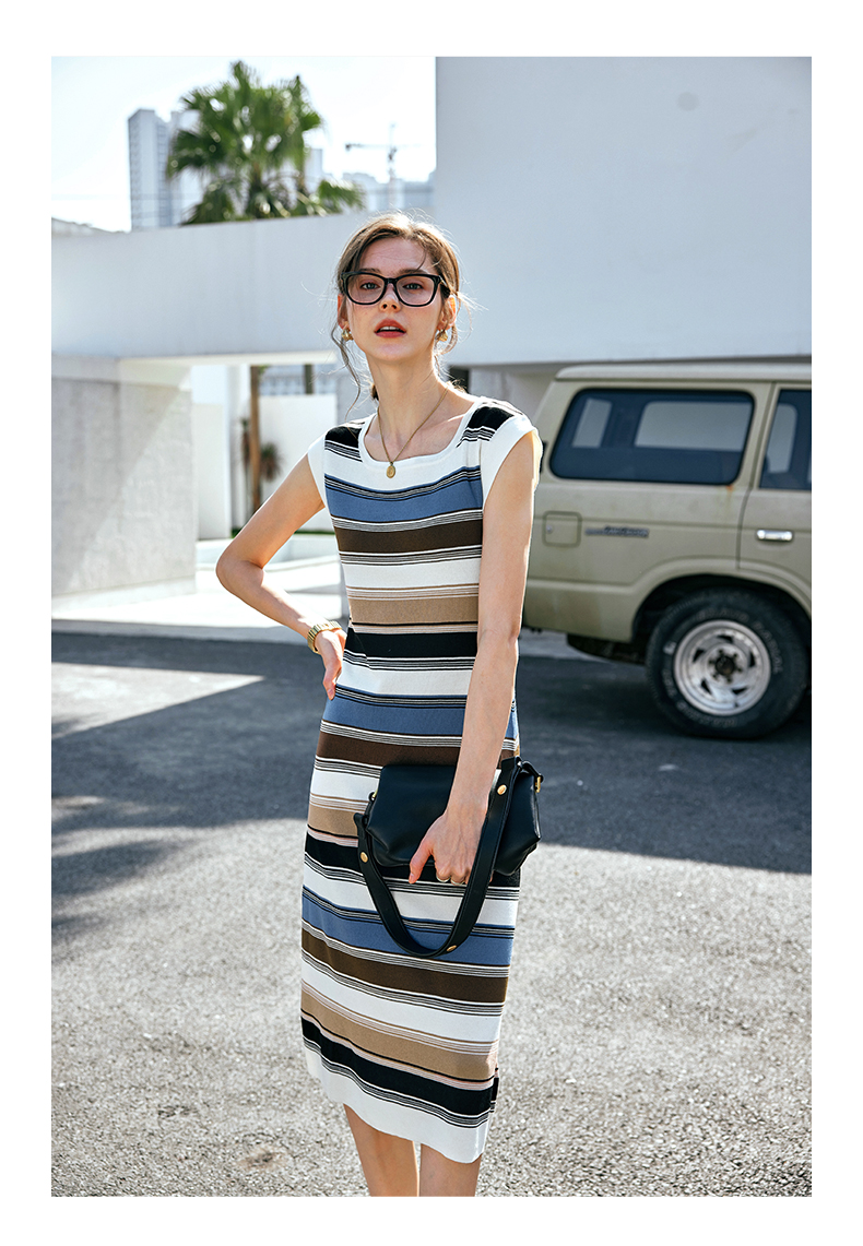 OLrain欧芮儿条纹连衣裙女早春2024年新款气质收腰针织无袖裙子