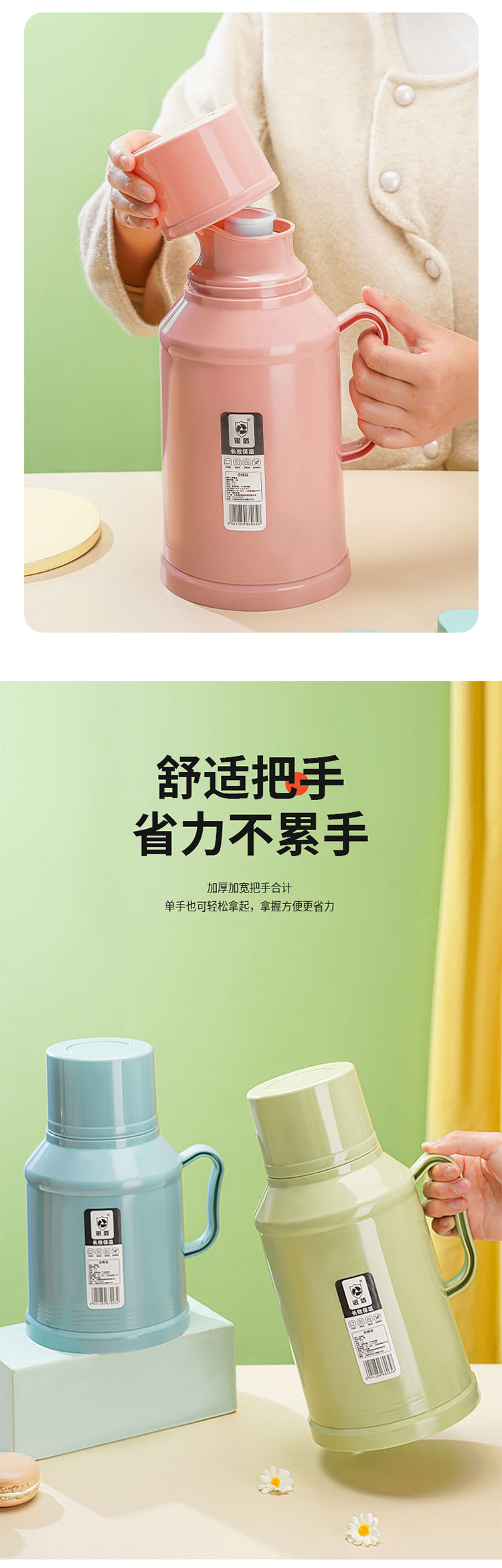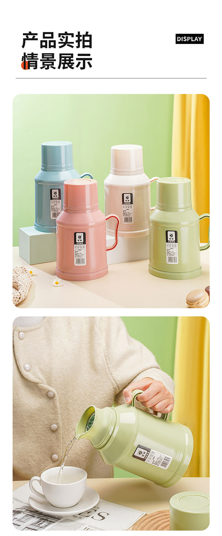 「马卡龙配色!高颜值」新款马卡龙热水瓶 暖壶小型保温客厅居家日用餐饮用具宿舍带盖水壶暖瓶