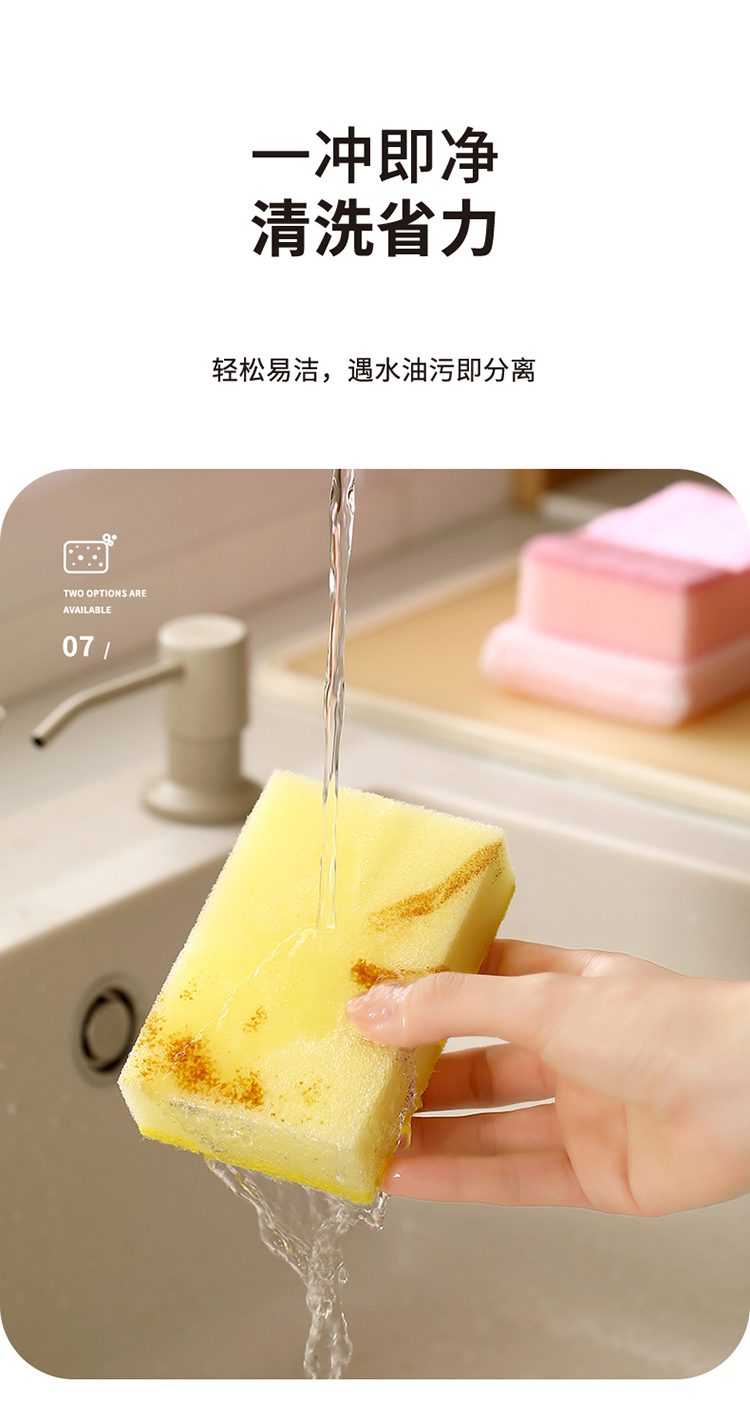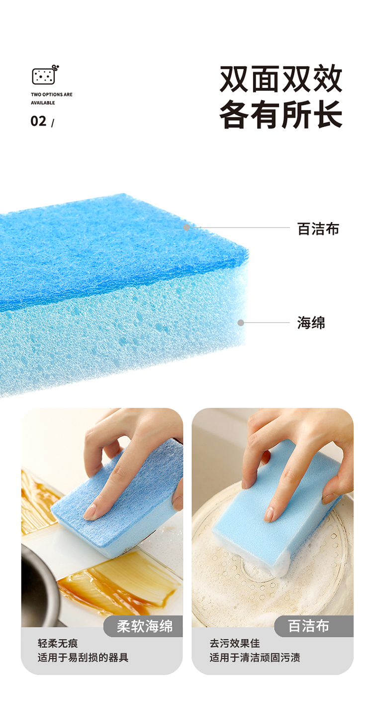 FaSoLa 双面百洁布海绵擦 厨房清洁用品加厚刷锅洗碗去污海绵