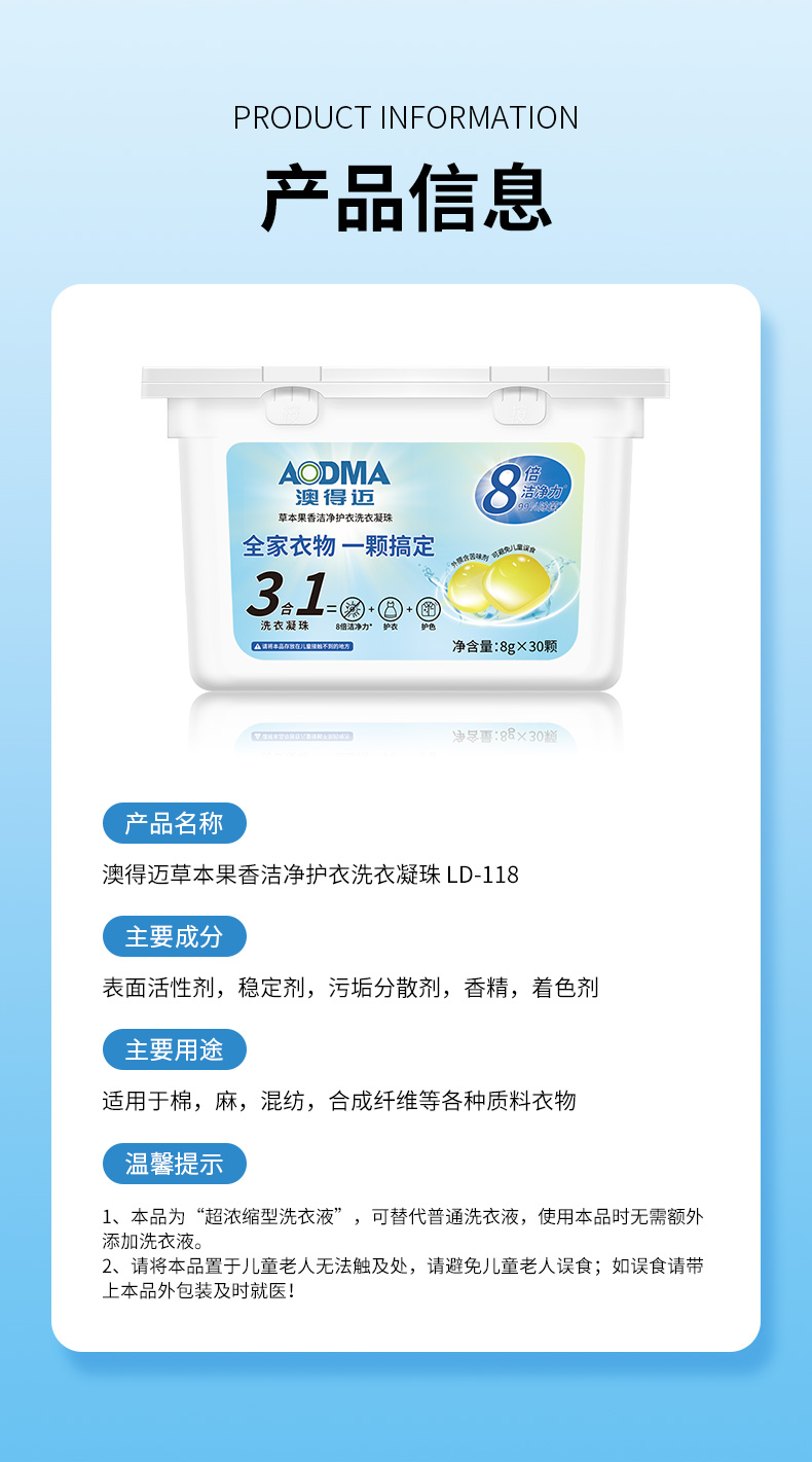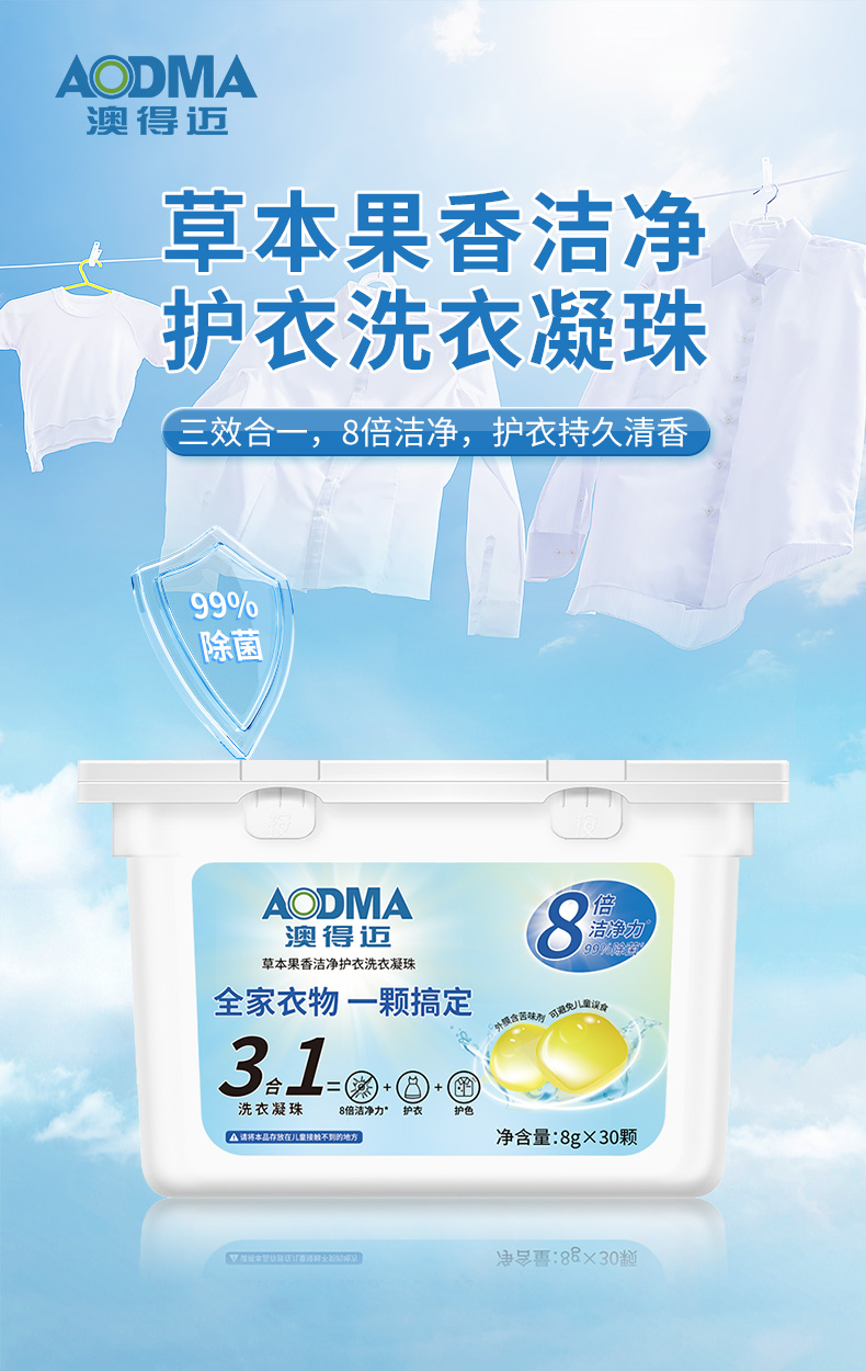 澳得迈草本果香洁净护衣洗衣凝珠8gx30颗/盒