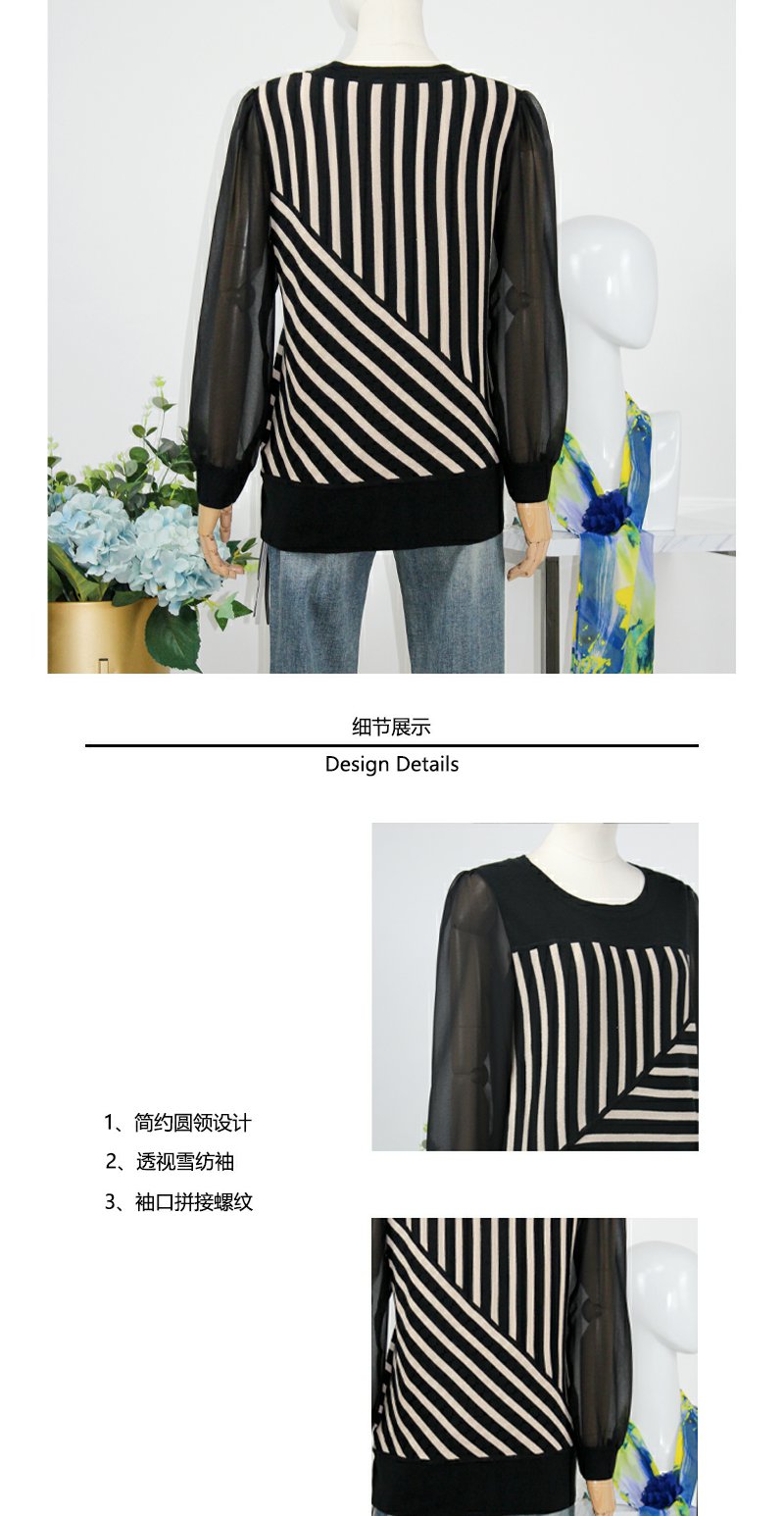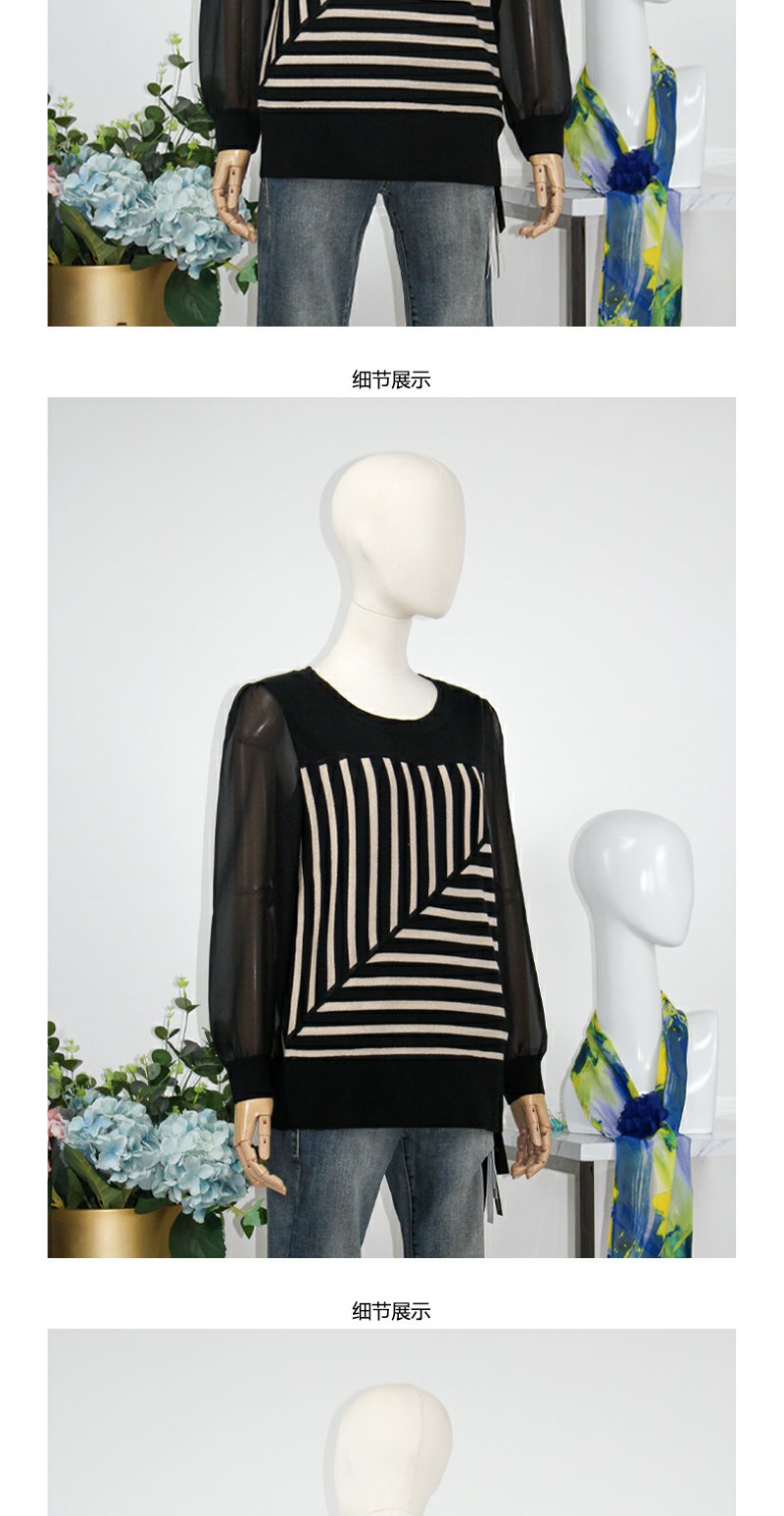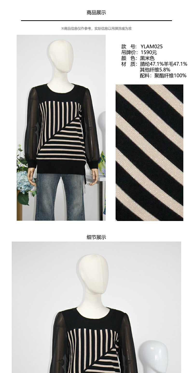 FOCALS福柯斯女装秋季新款圆领套头上衣条纹毛衫针织衫FYLAM025NM