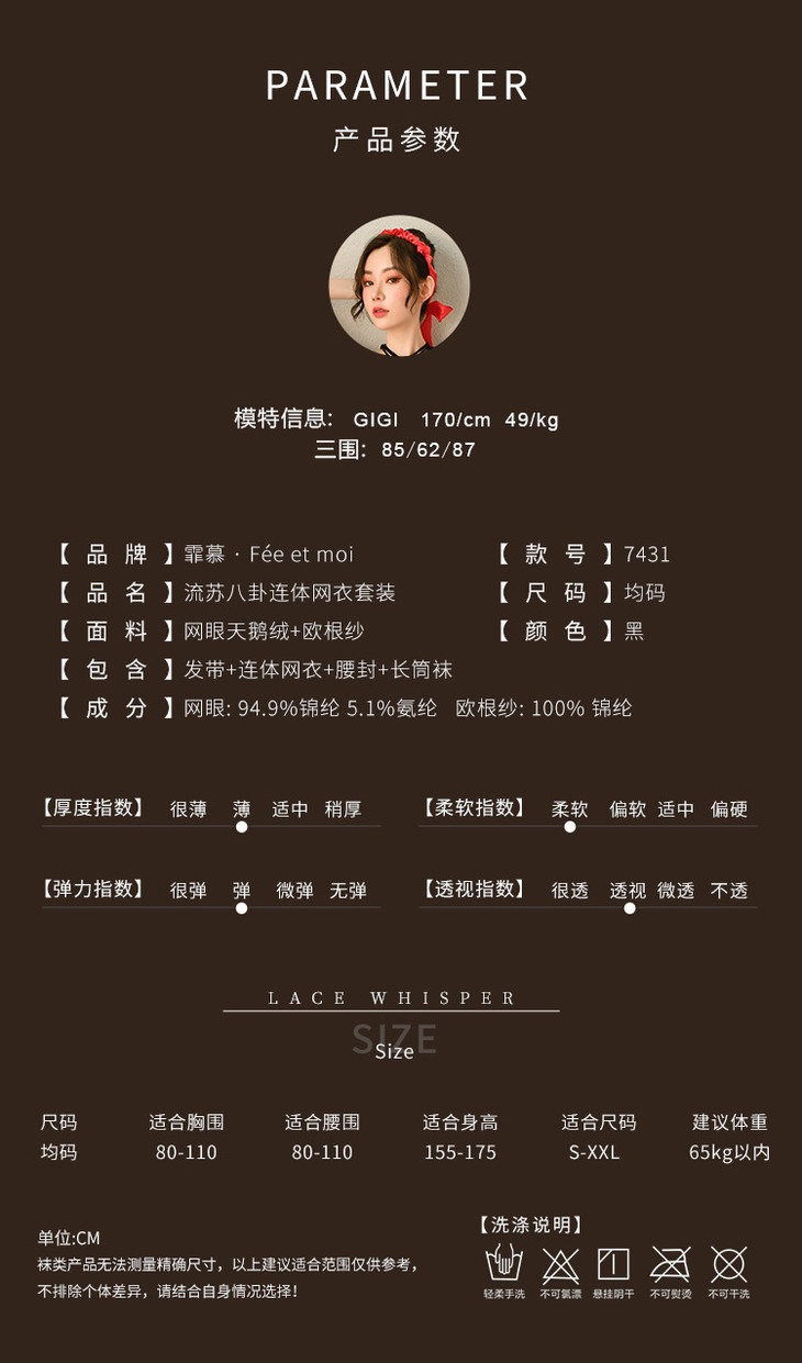 【占卜小精灵】玄幻风镂空设计 情趣内衣 女士内衣 性感连体衣 网衣 蕾丝 连身袜 套装 发带 胸罩 腰围 丝袜 型号7431