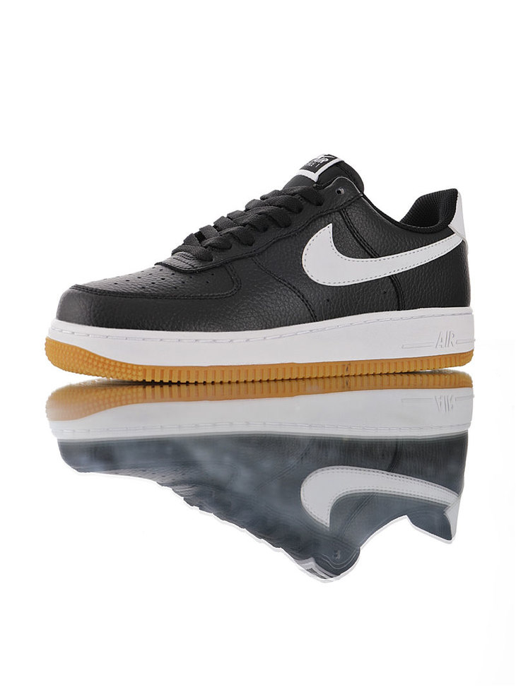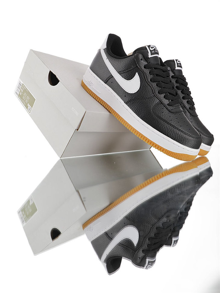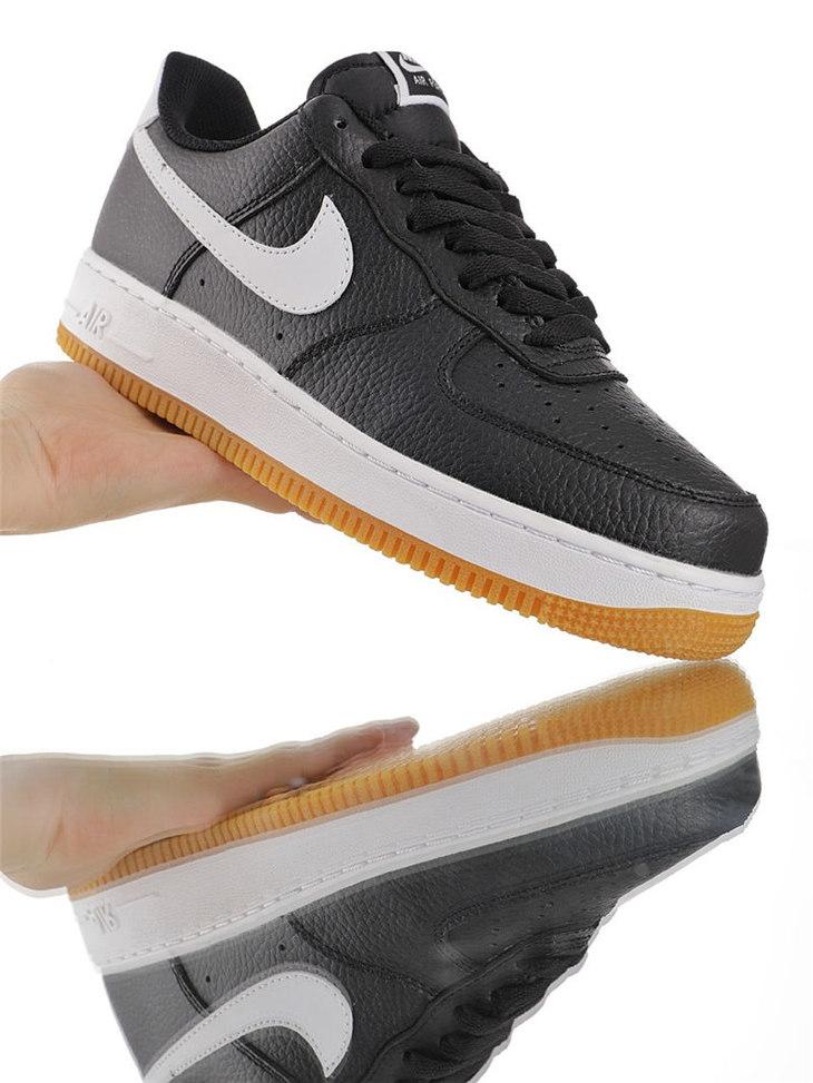 耐克Nike Air Force 1 '07 采用荔枝纹牛皮革 内置全掌air sole气垫 空军一号经典百搭休闲运动板鞋 皮革黑白生胶黄