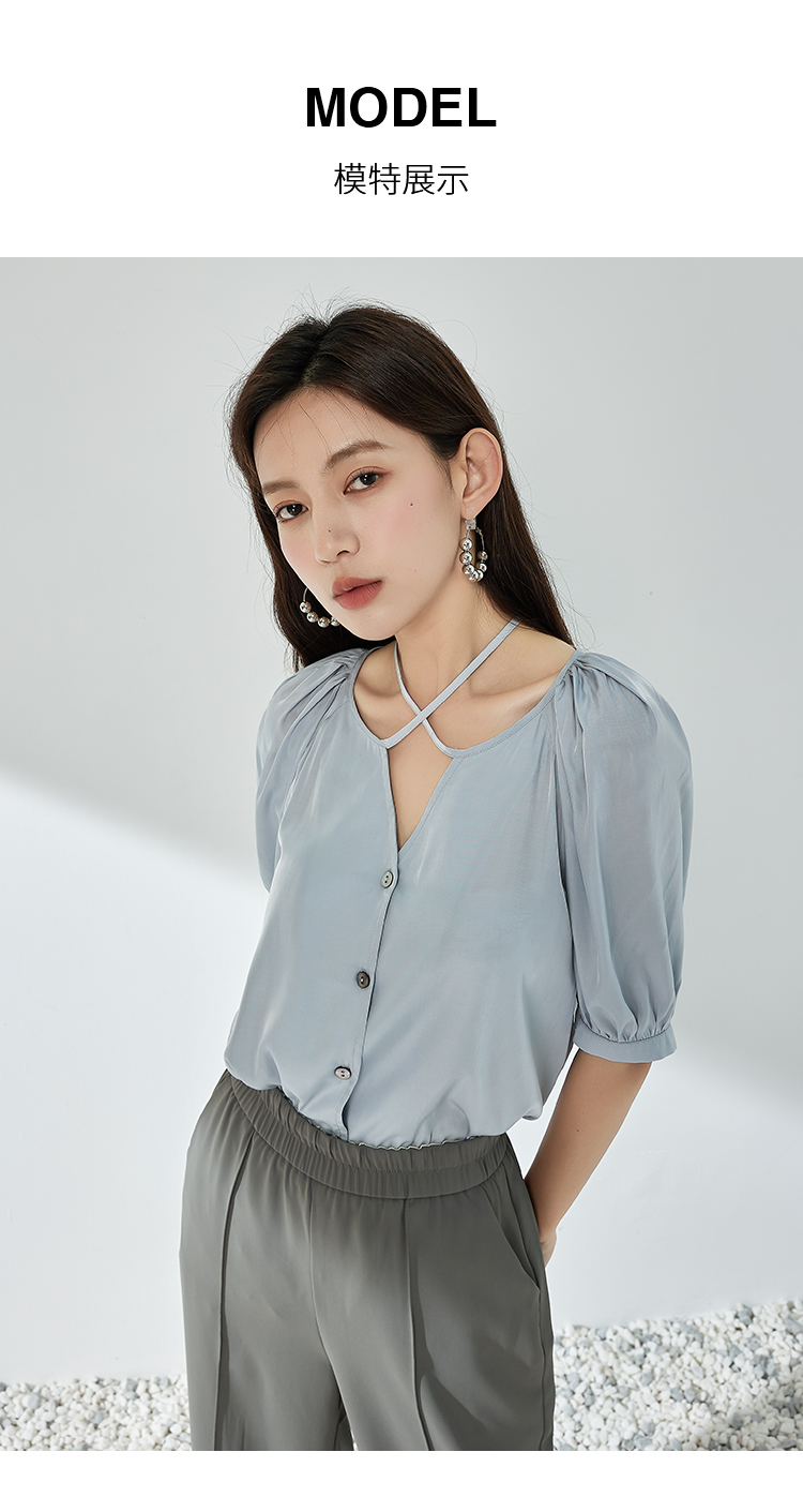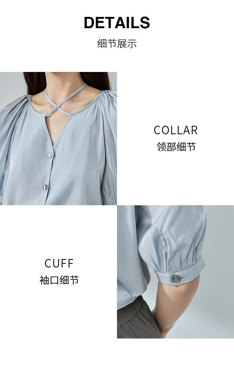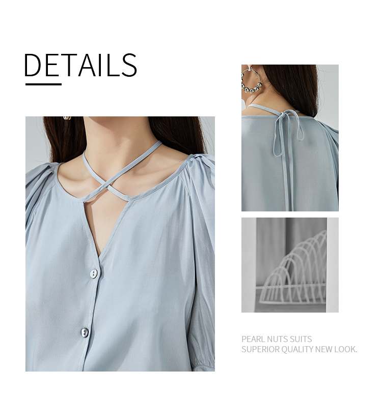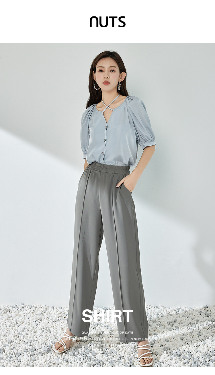 NUTS夏季新款简约气质圆领泡泡袖衬衫女429011367