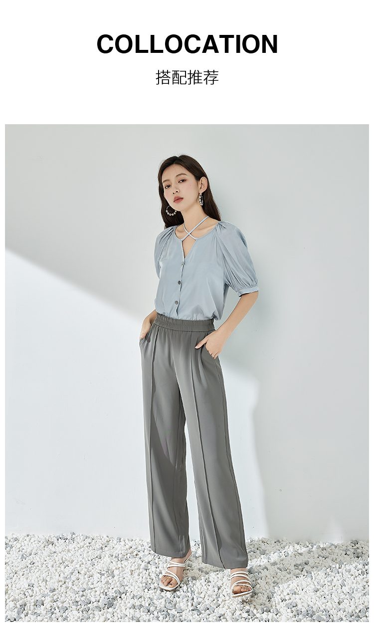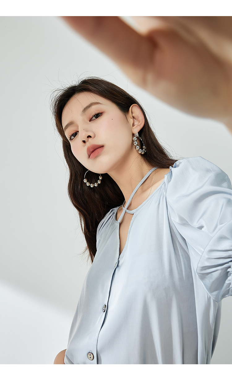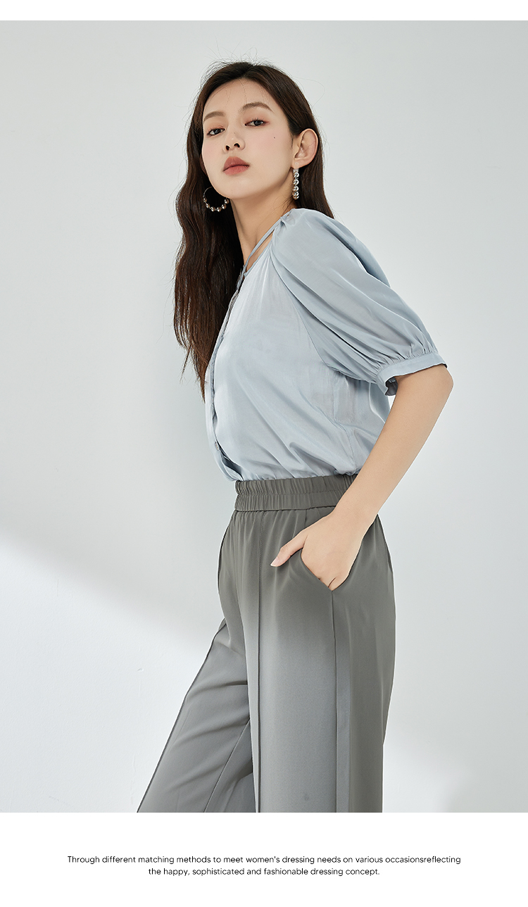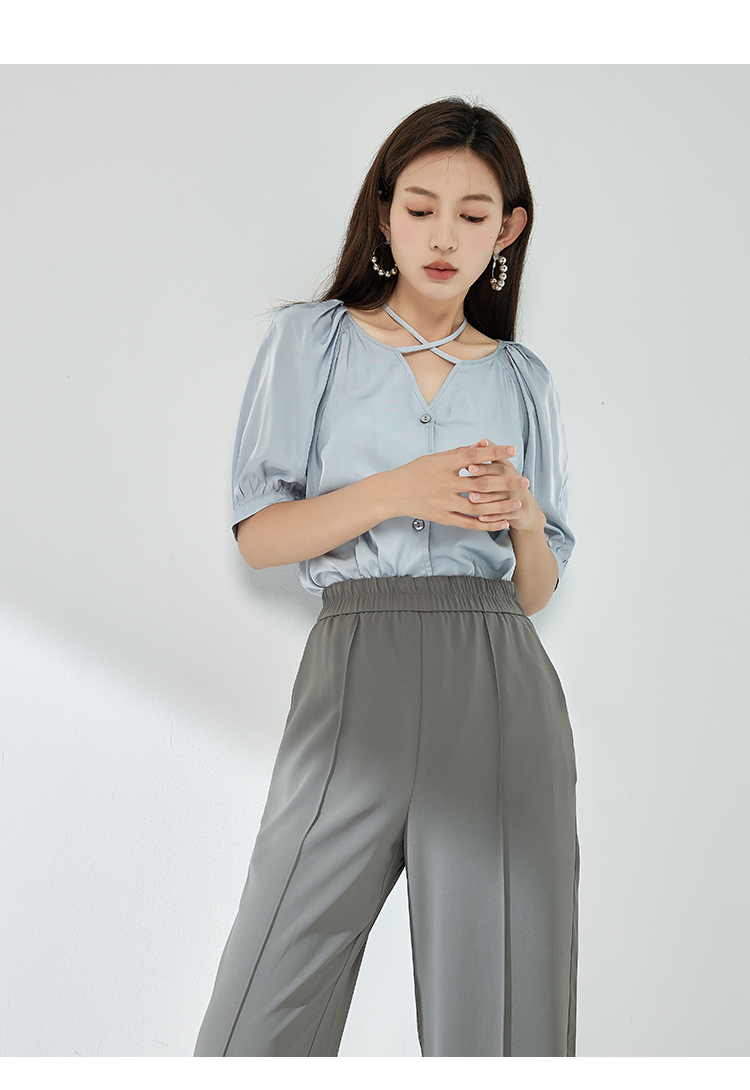 NUTS夏季新款简约气质圆领泡泡袖衬衫女429011367