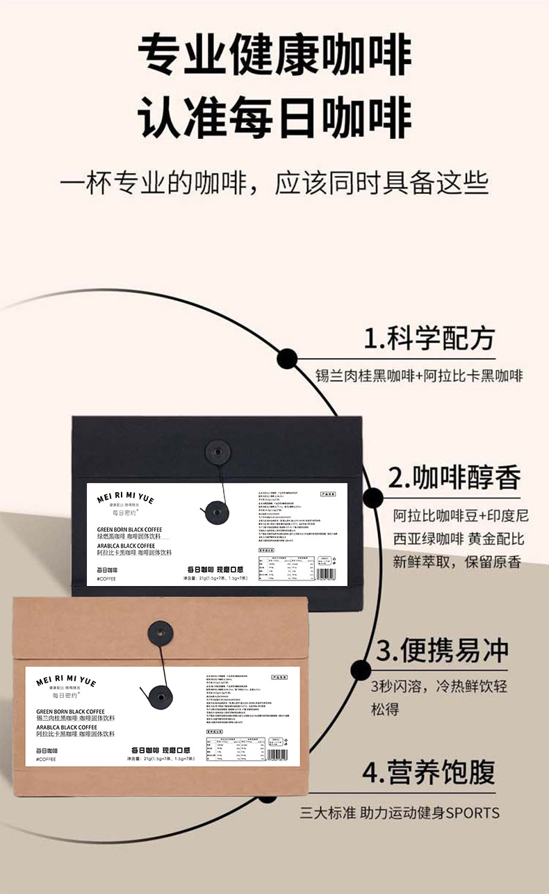 每日PH地中海咖啡锡兰肉桂绿燃阿拉比卡黑咖啡信封式