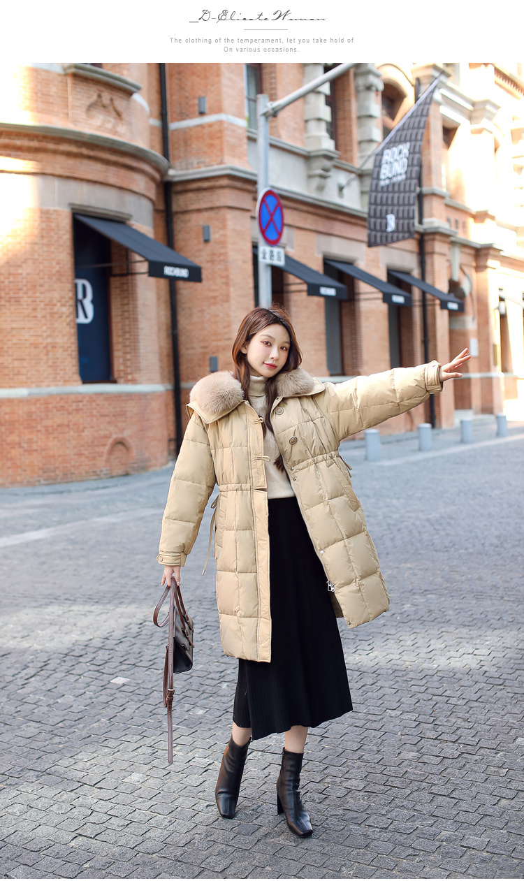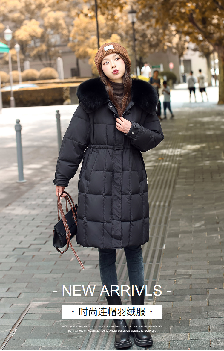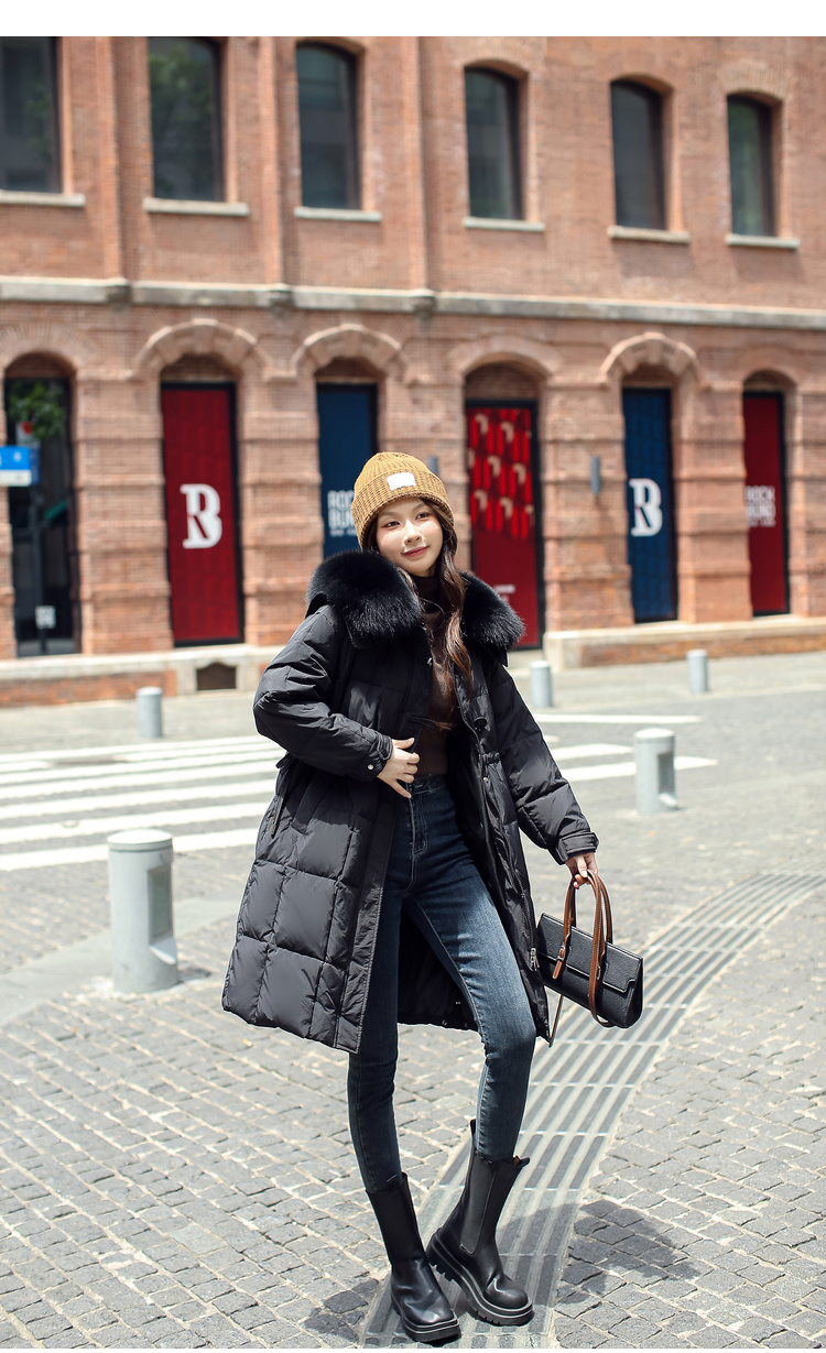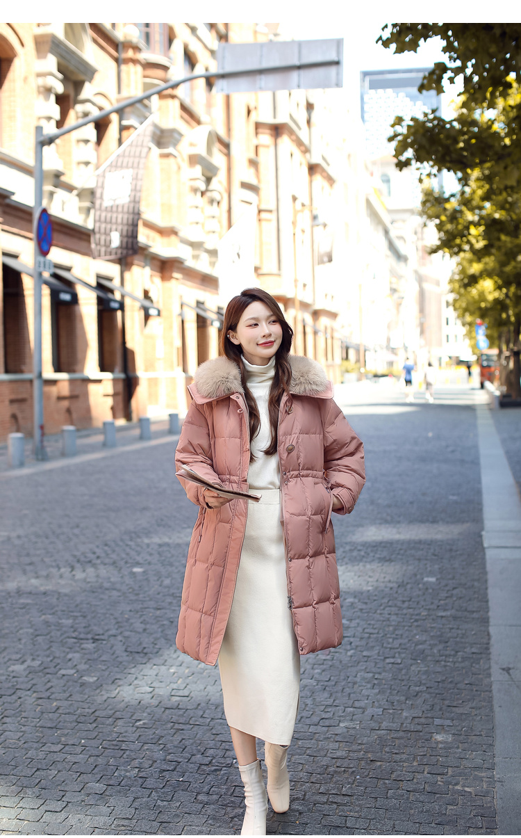 奢姿大码女装2024冬季海军领狐狸毛领中长款羽绒服胖妹妹保暖外套7344300220