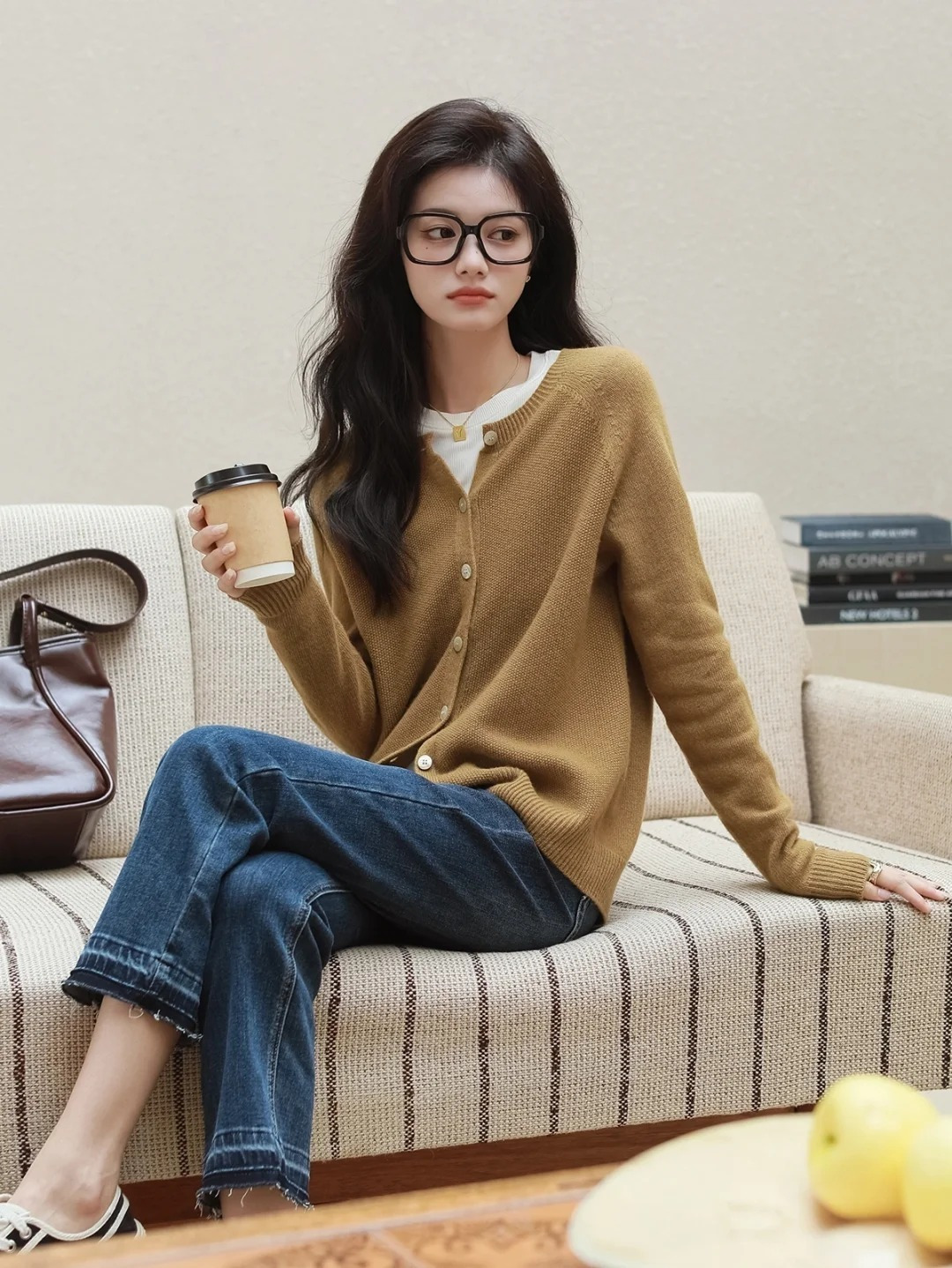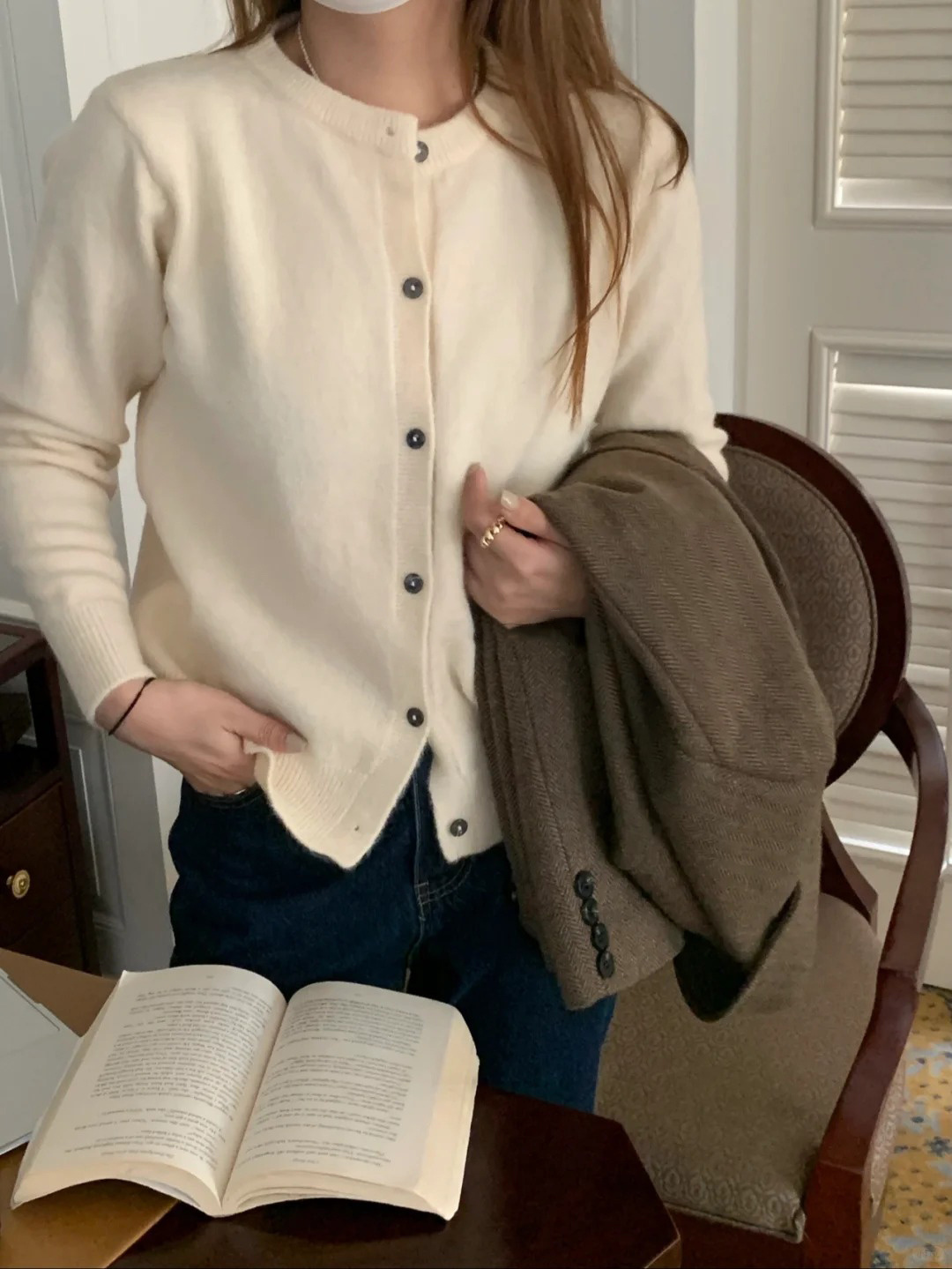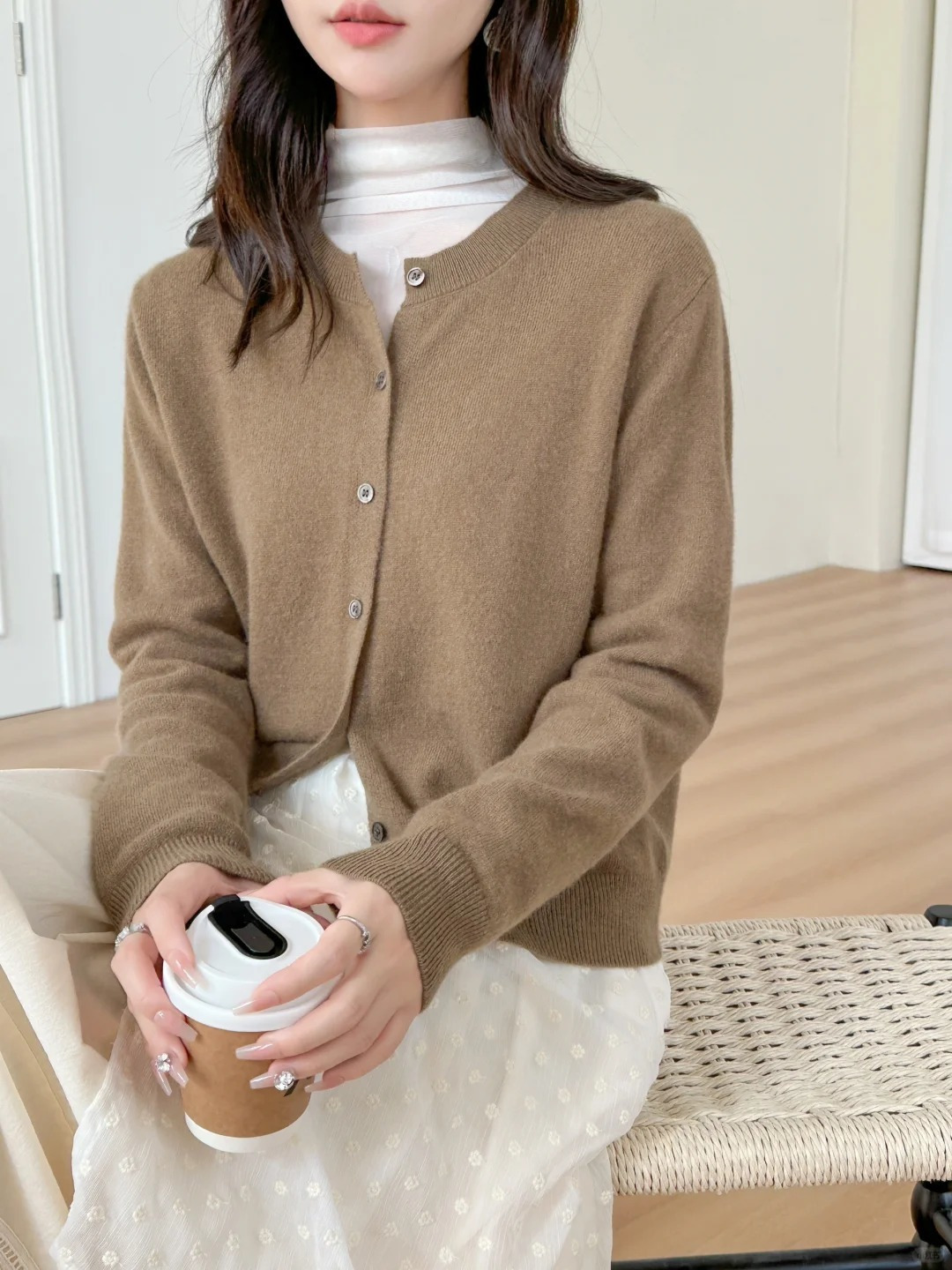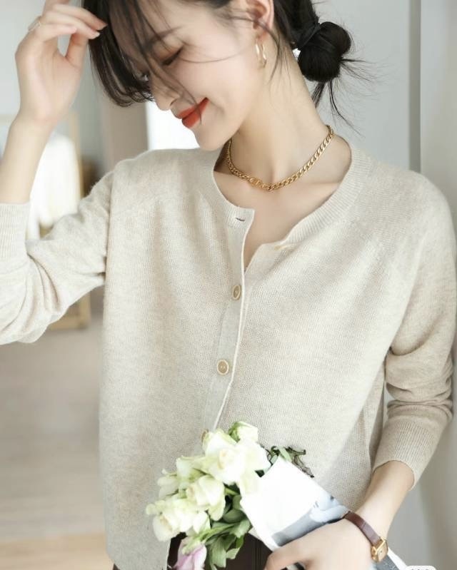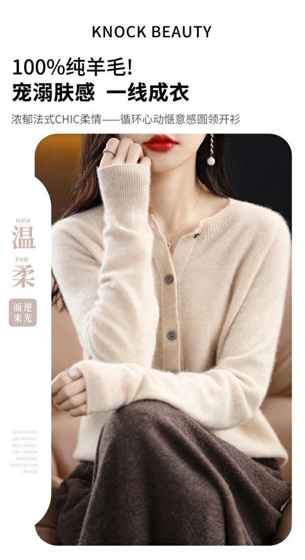 独家高定制0日本岛精一线成衣美利奴 无缝羊毛开衫!质感高级不拉跨,上身好美好 温柔 初秋法式慵懒风穿搭【干吉娜Chigina.羊毛开 衫]开团价 89元直接拿下!