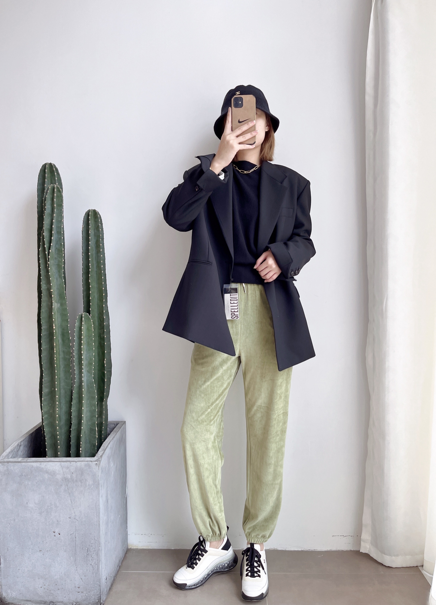 秋季新款九分直筒裤欧货高腰撞色烟管裤