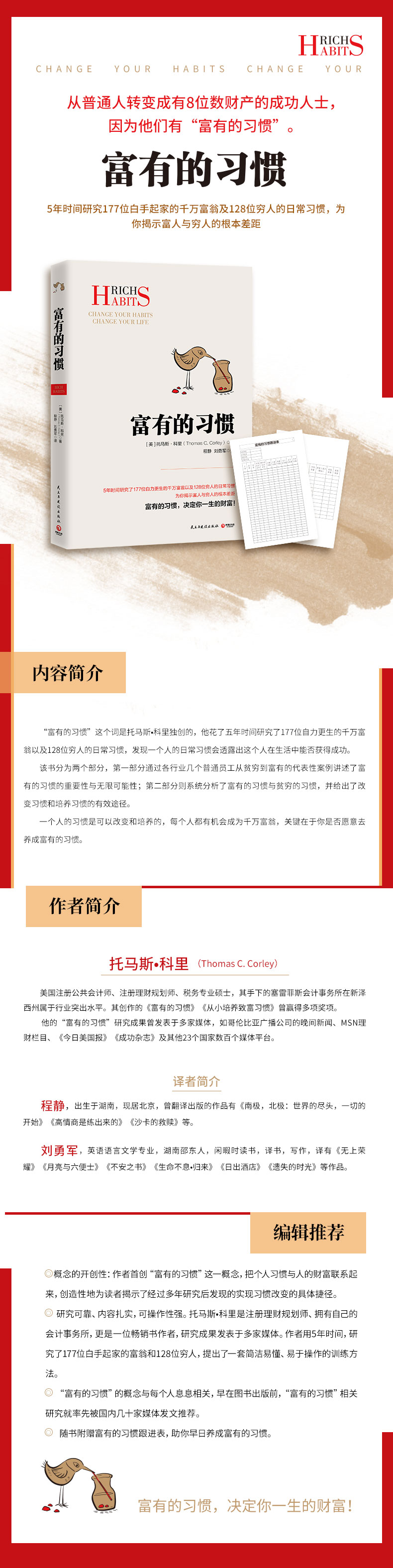 全2册 富有的习惯正+有钱人和你想的不一样正版托马斯-科里著5年研究177位白手起家的千万富翁及128位穷人的日常习惯成功励志书籍