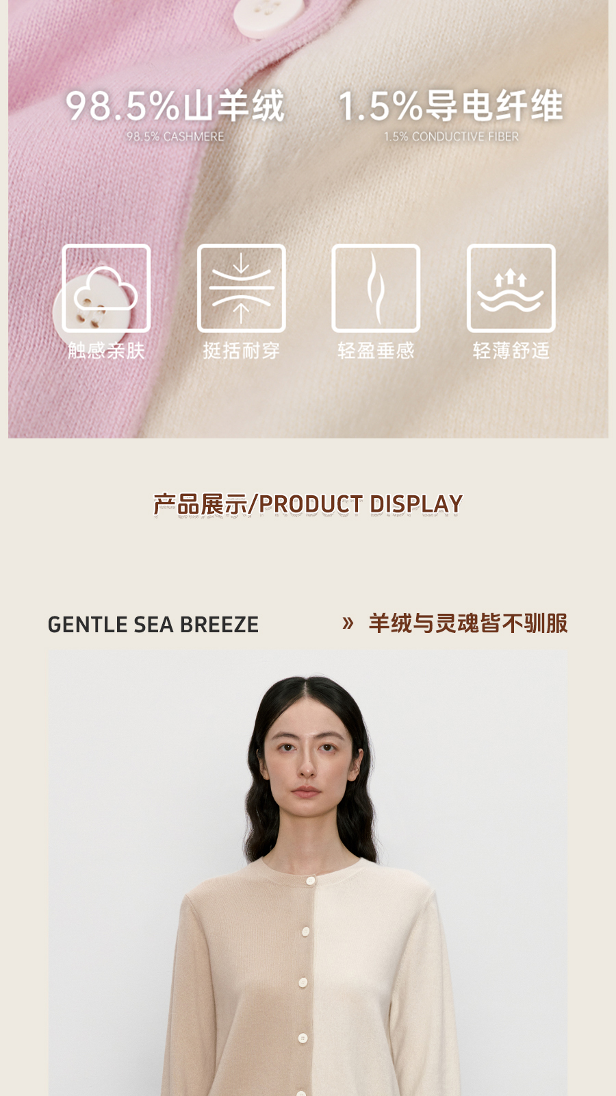 东黎羊绒是赤峰东荣集团自主品牌,自有牧场/羊绒制品全产业链优势,实现了羊绒从“牧场”到“商场”的华丽转变。