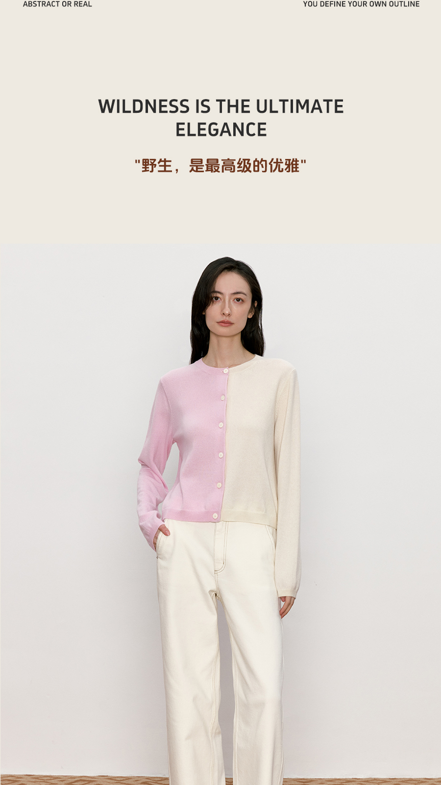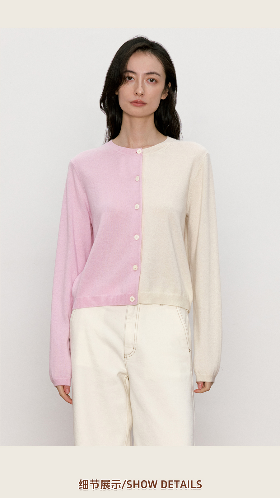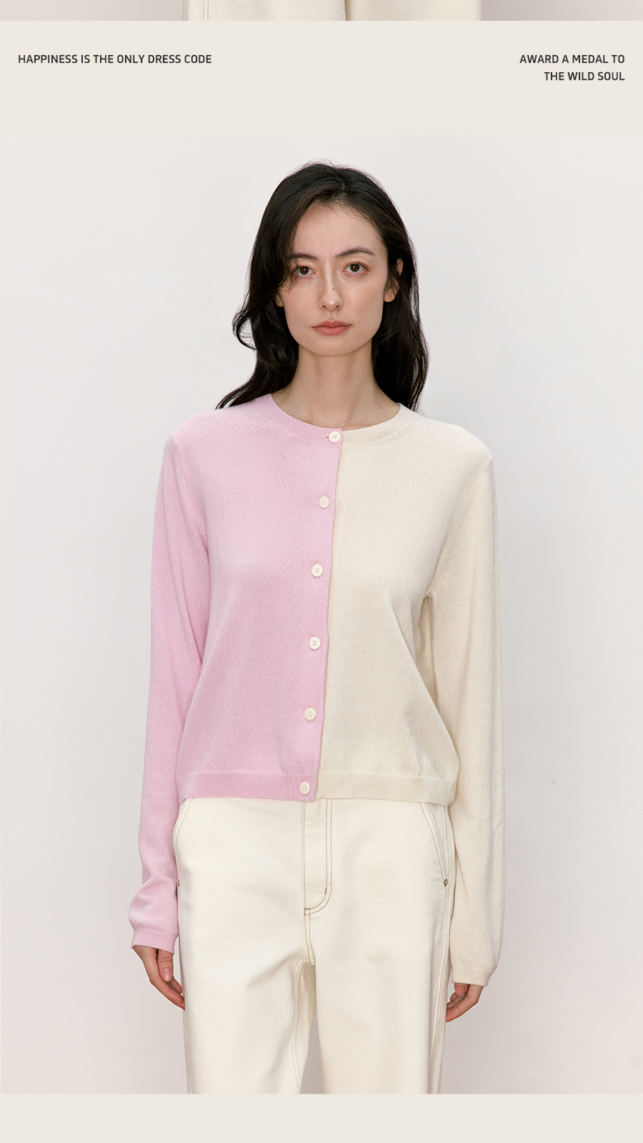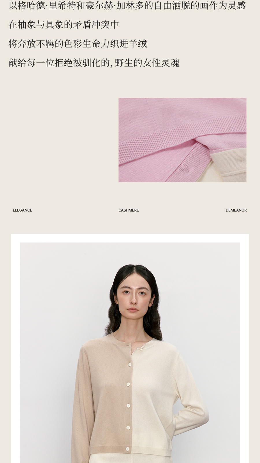 东黎 • 我不被驯化 拼图衫 山羊绒女士秋季拼接圆领开衫 5369