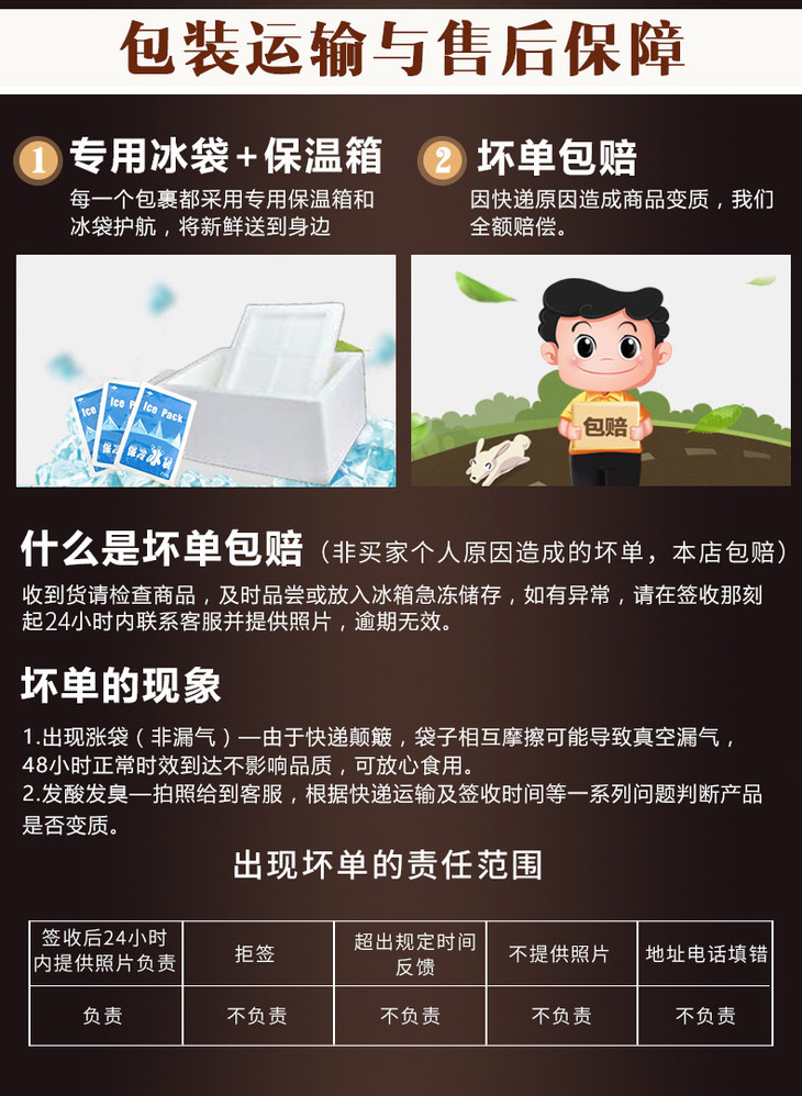 2、超过退换期(冷鲜系列产品为签收那刻起24小时内)则默认不退换。