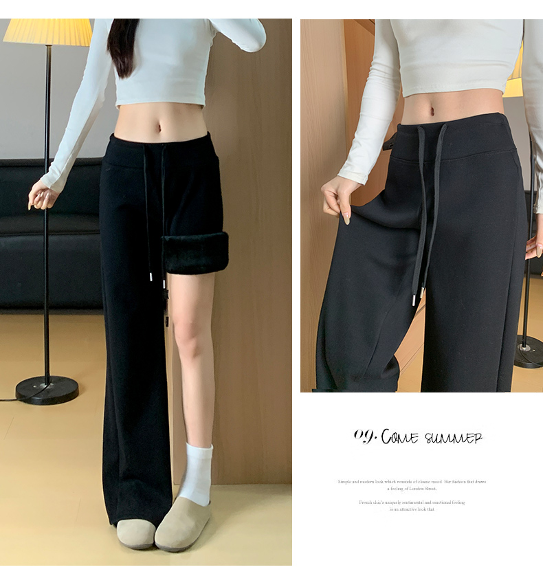 lulu同款加绒加厚美式运动裤女2026新款阔腿裤高腰显瘦直筒休闲裤聚