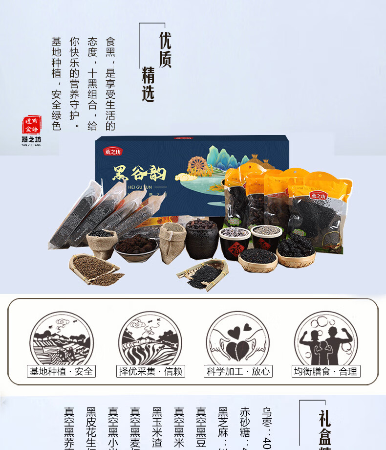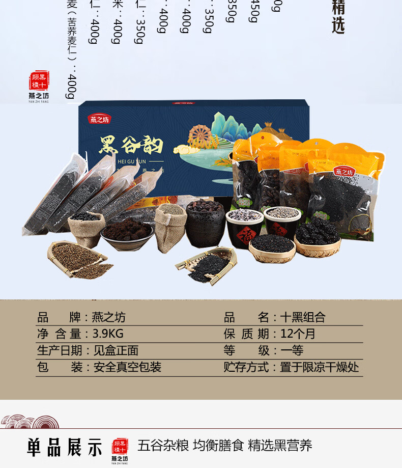 燕之坊 杂粮粥 黑谷韵礼盒3.9kg 五谷杂粮健康组合 节日送礼 企业团购 黑谷韵礼盒3.9kg