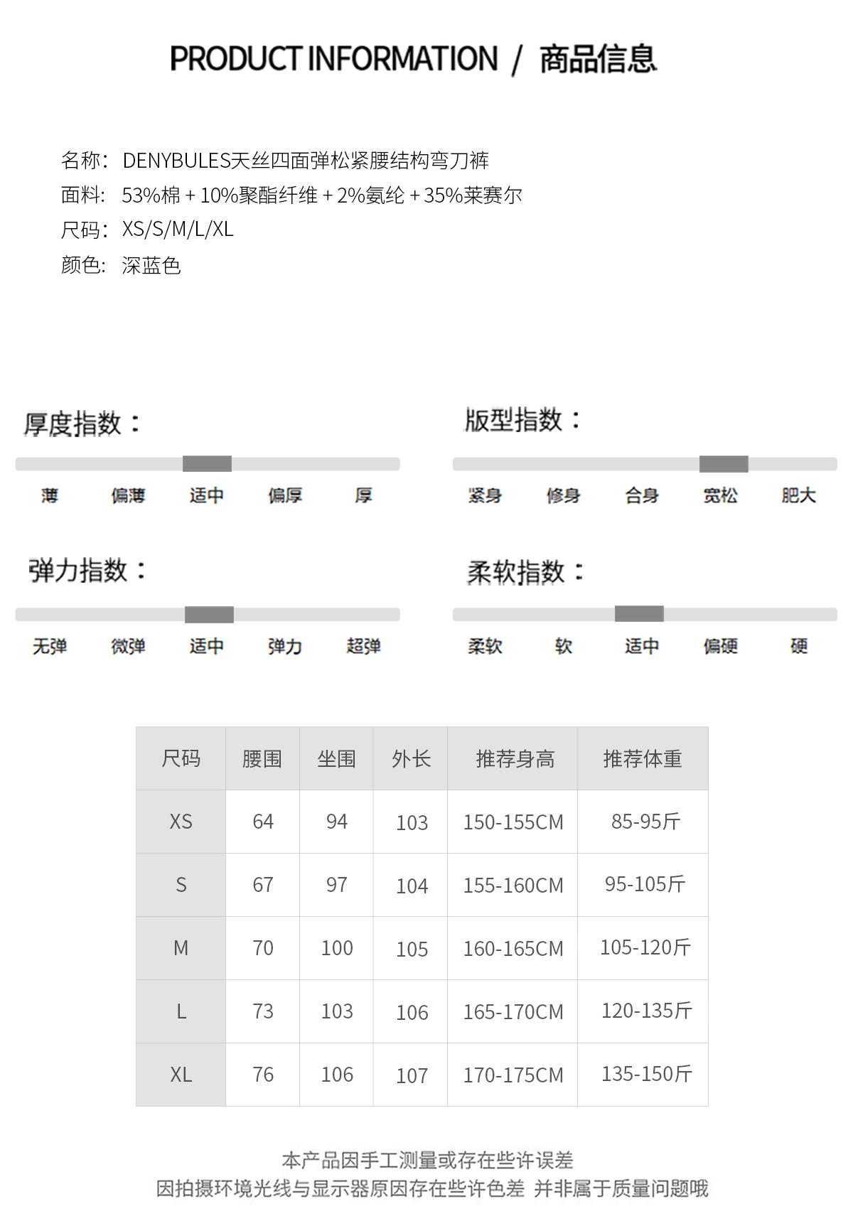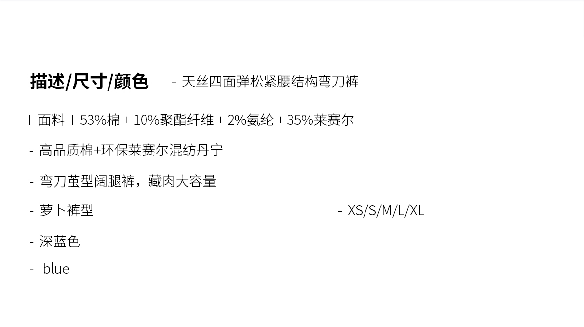 DENYBULES天丝四面弹松紧腰结构弯刀裤