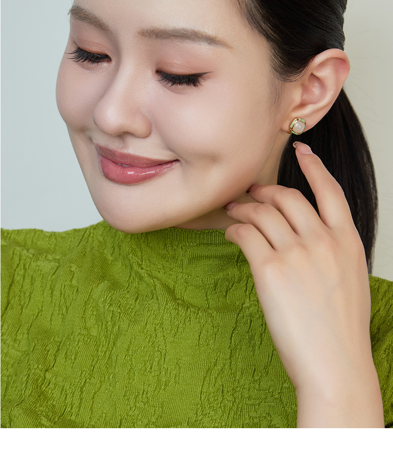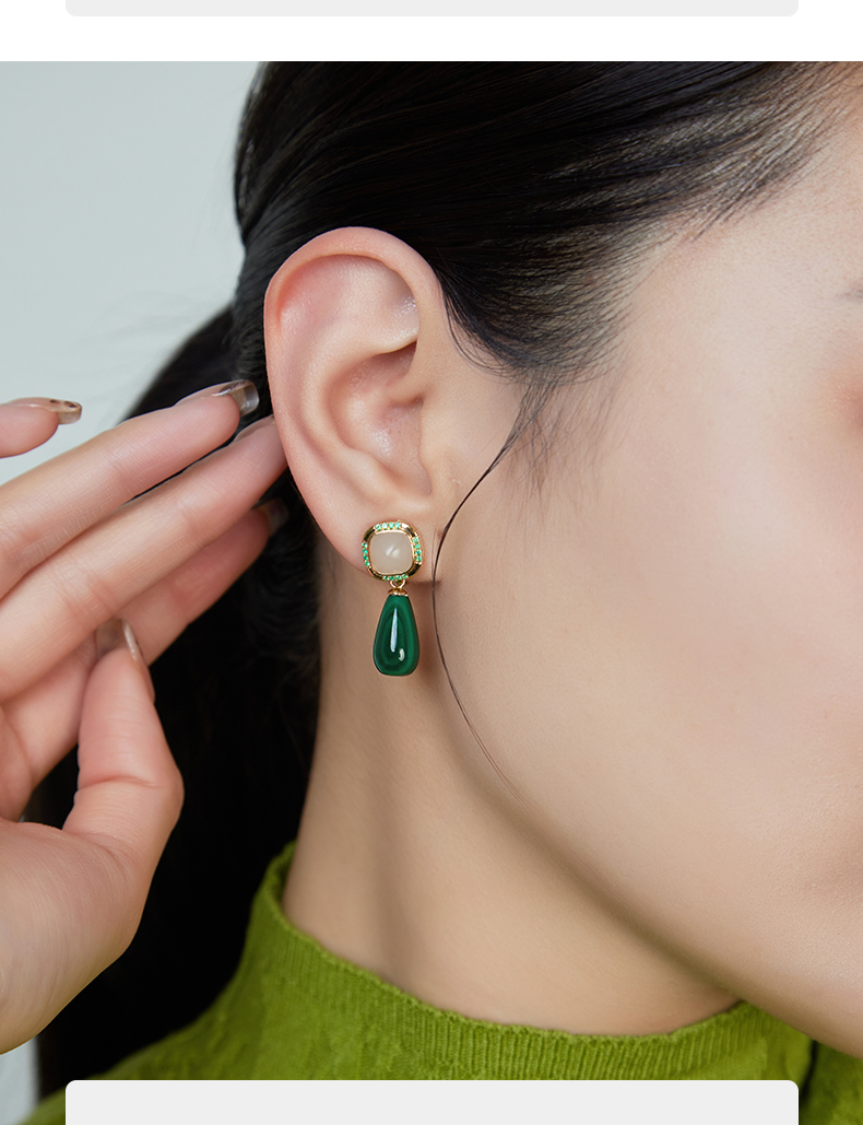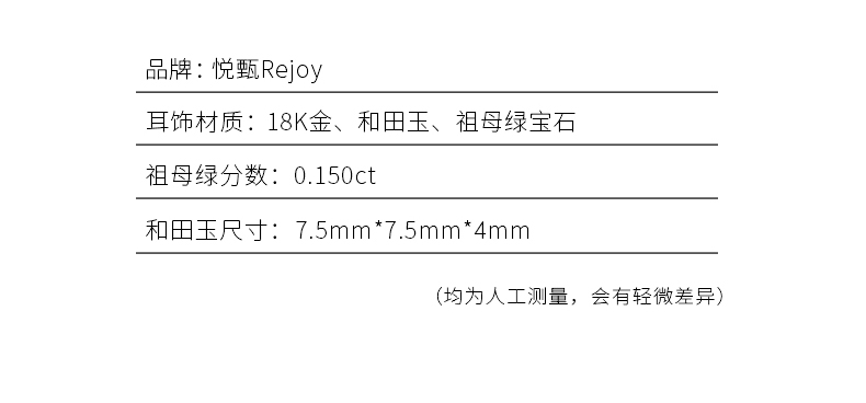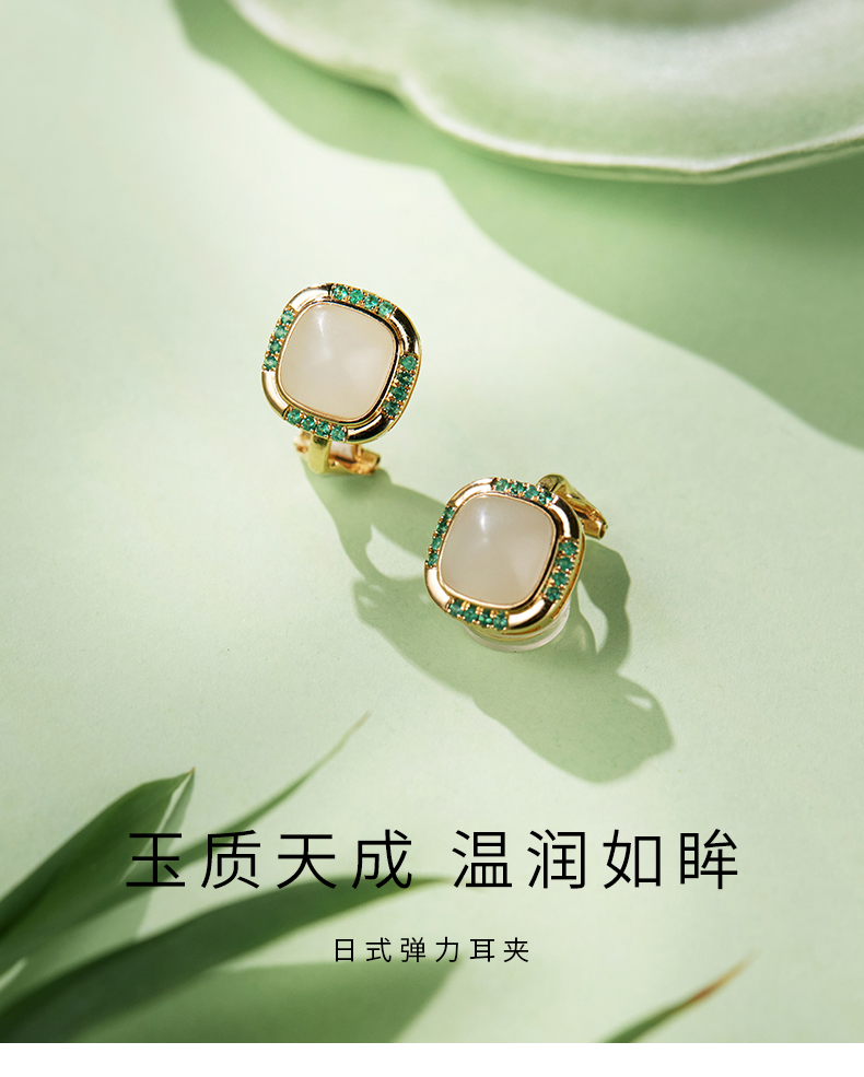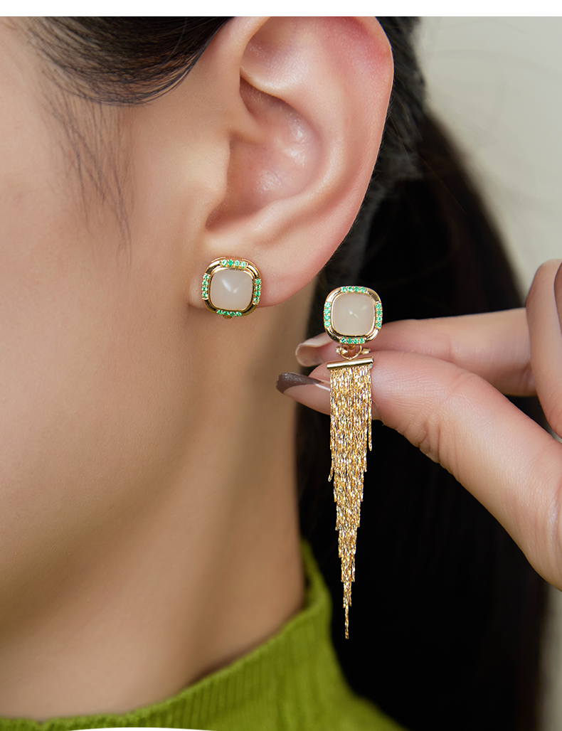 【天猫同款】玉塔-18K金和田玉祖母绿耳夹
