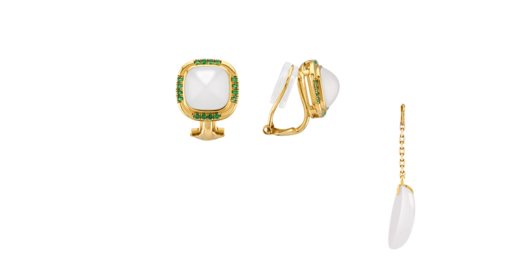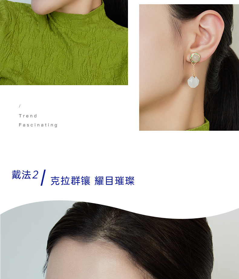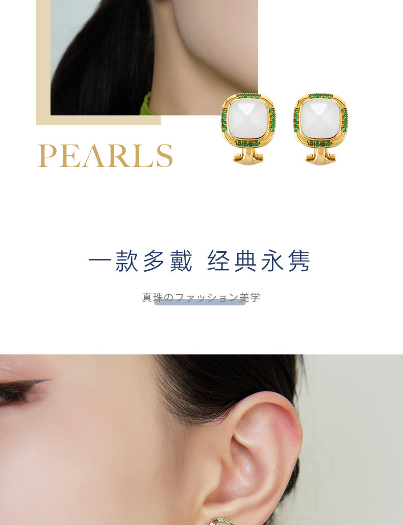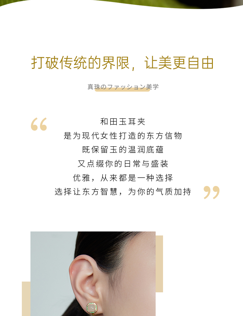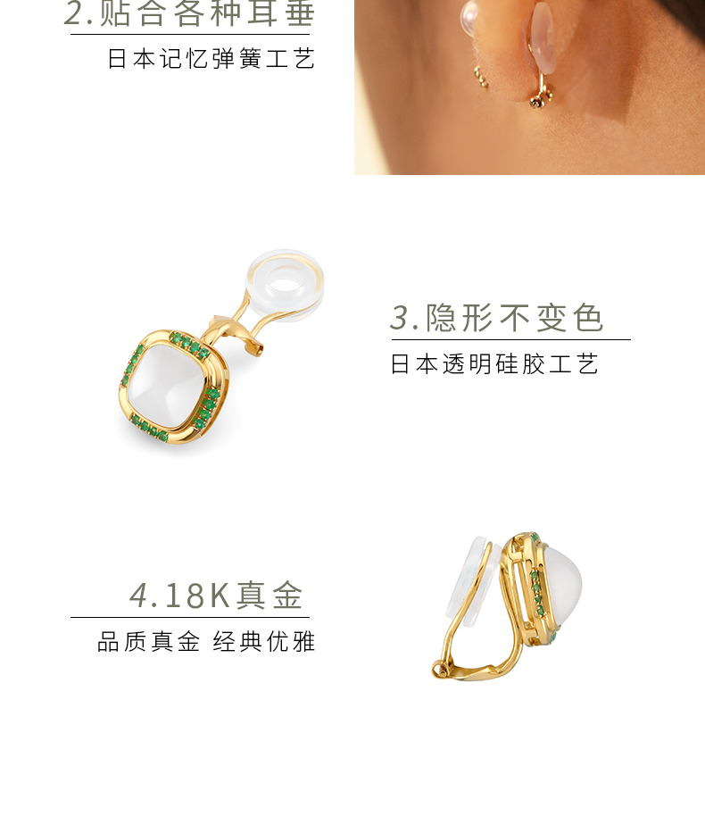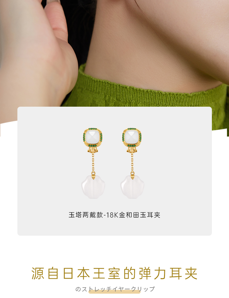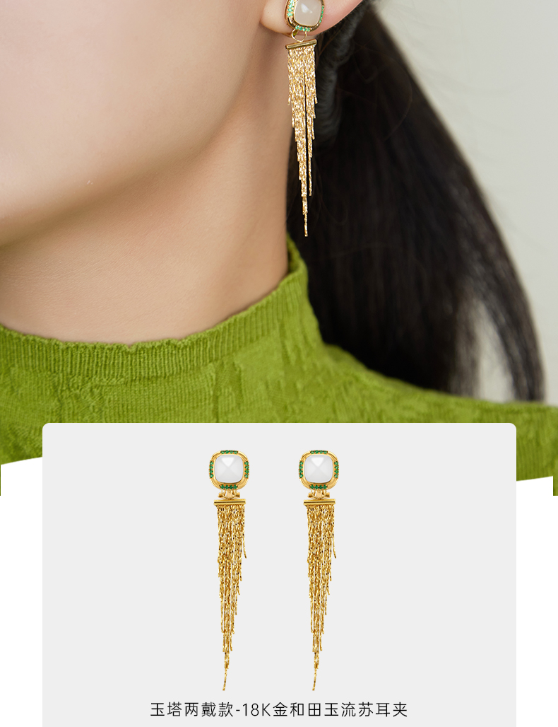 【天猫同款】两戴款玉塔-18K金和田玉祖母绿宝石耳夹