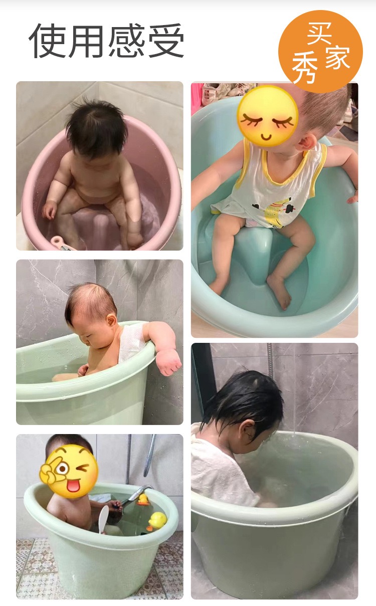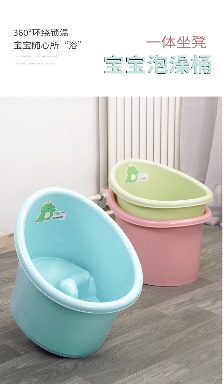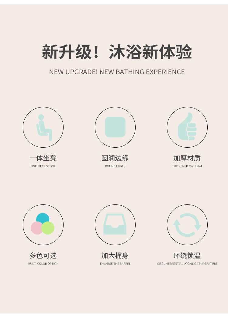 儿童泡澡桶洗澡桶宝宝全身洗澡沐浴桶加厚保温家用大号耐摔带坐凳