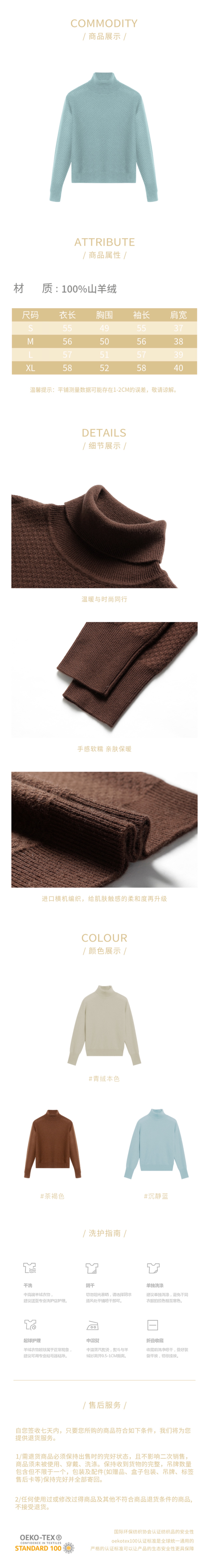 100%山羊绒半高领基础套头衫