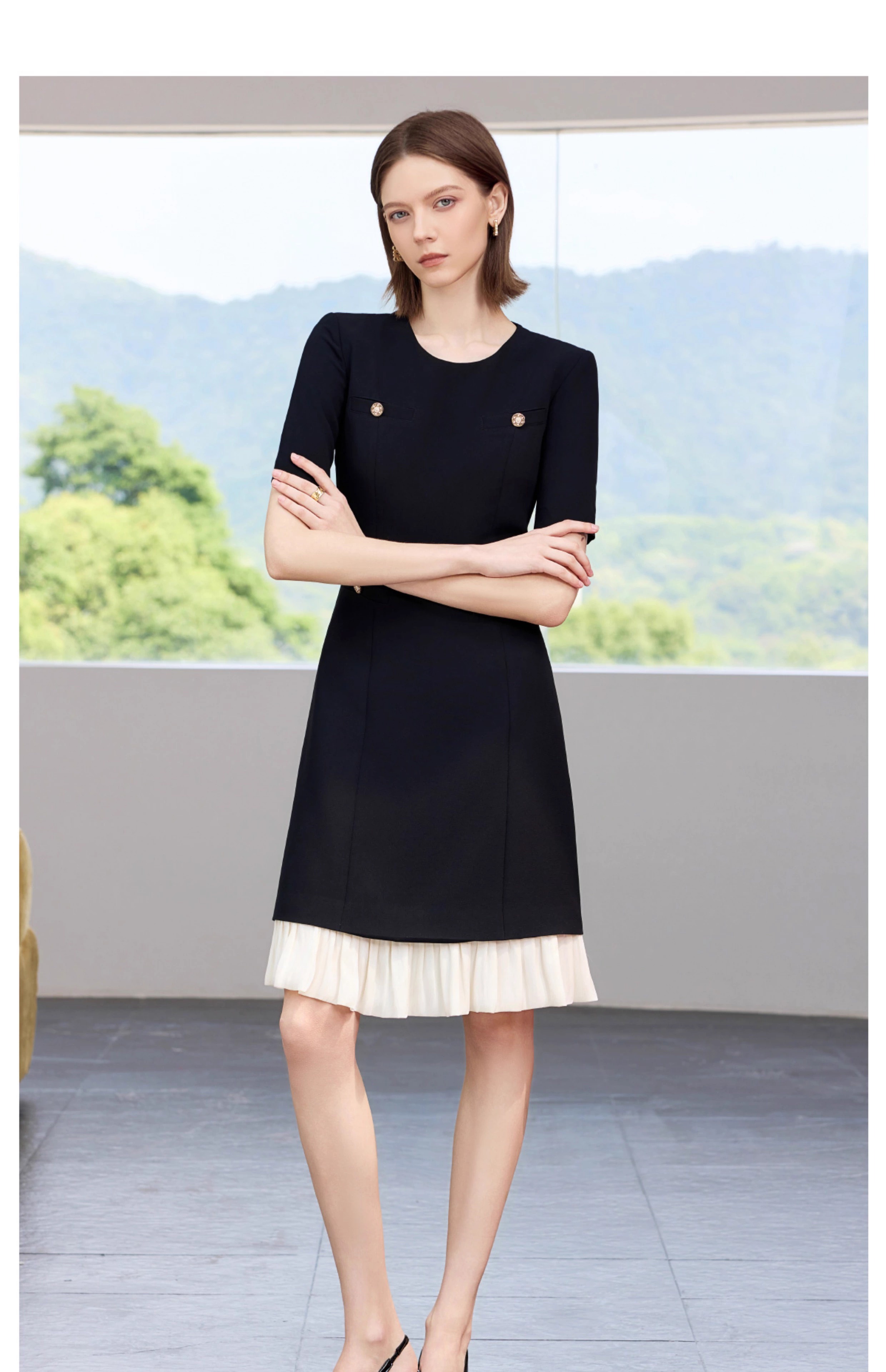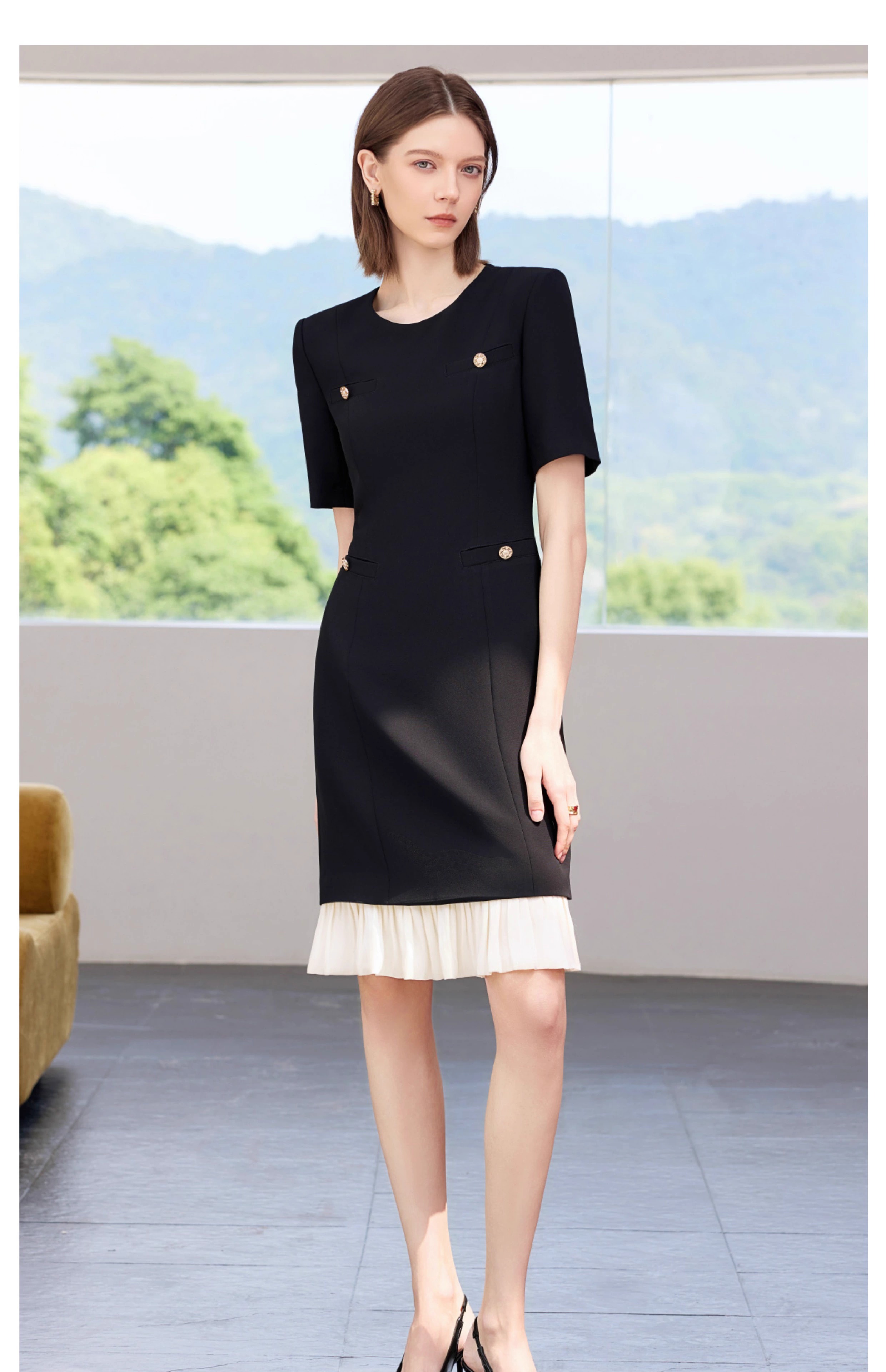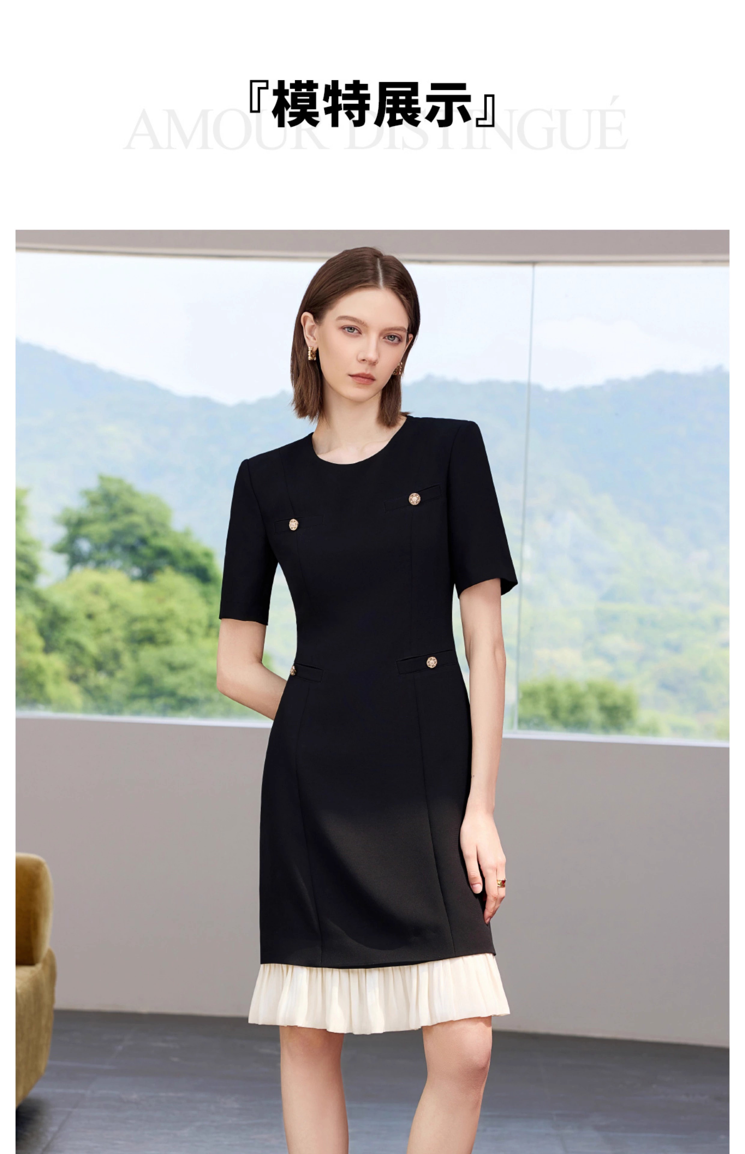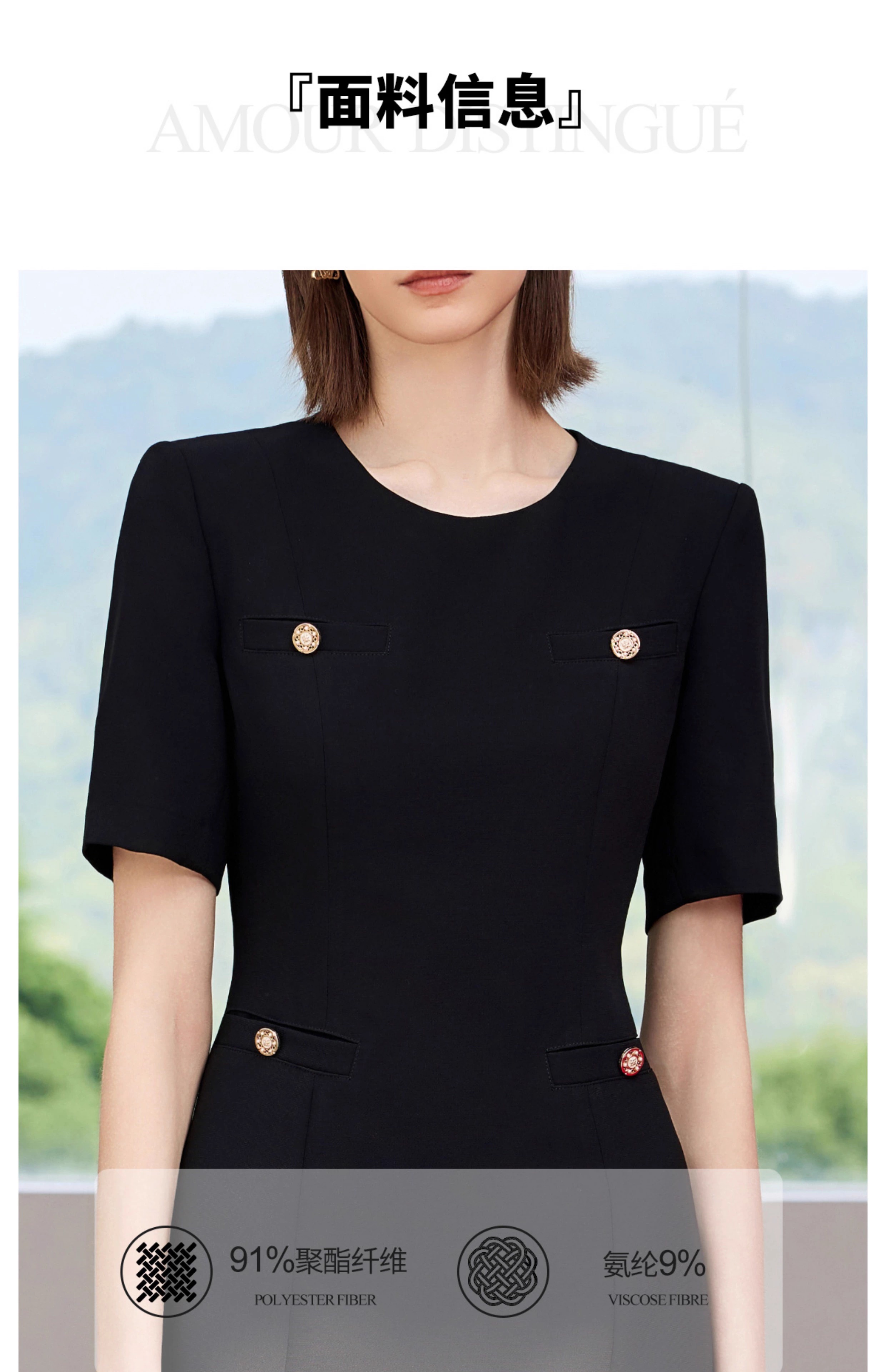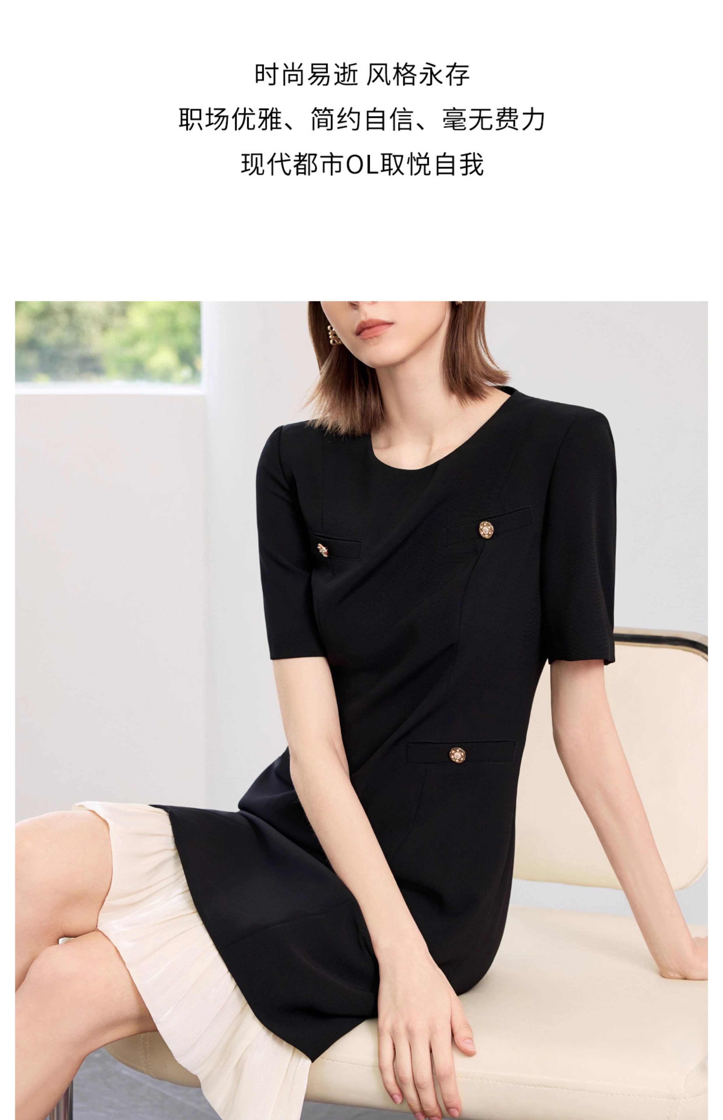 IWY/黑色小香风连衣裙女夏季新款高级感职业装气质女神范短袖正装Q1387