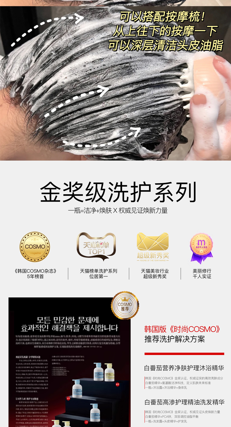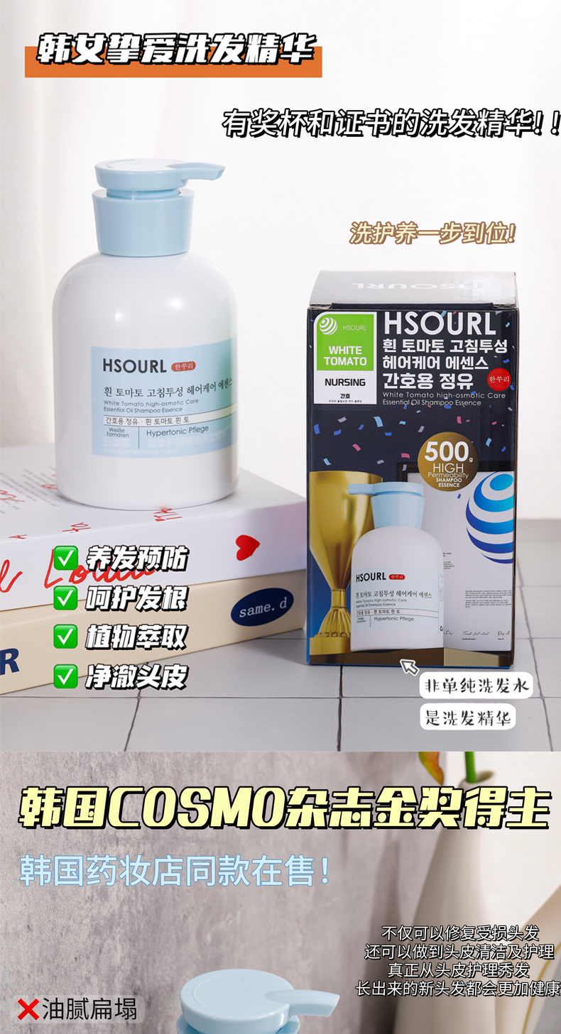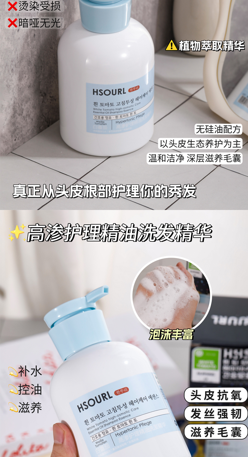 【韩速丽】白番茄高渗护理精油洗发水 温和洁净 柔顺蓬松 留香持久 改善毛躁