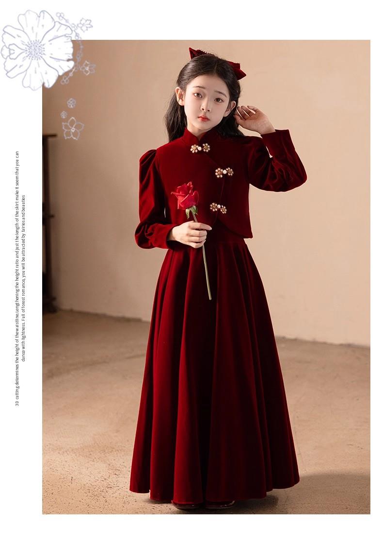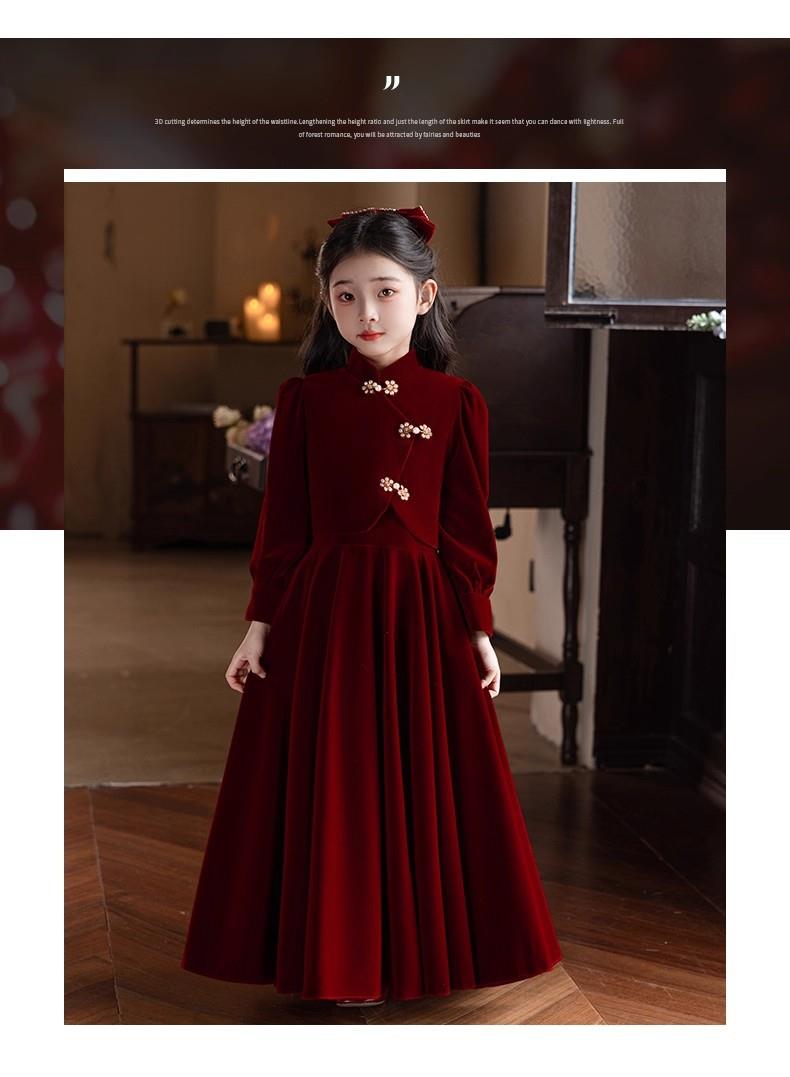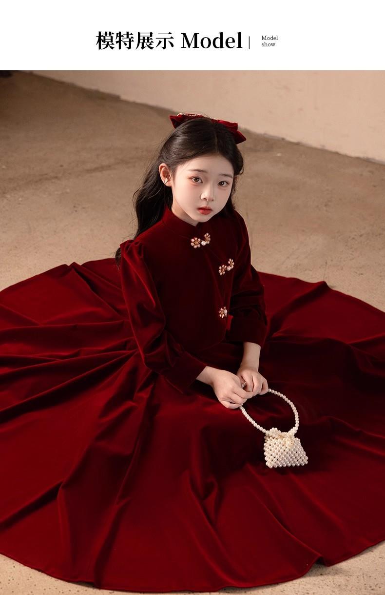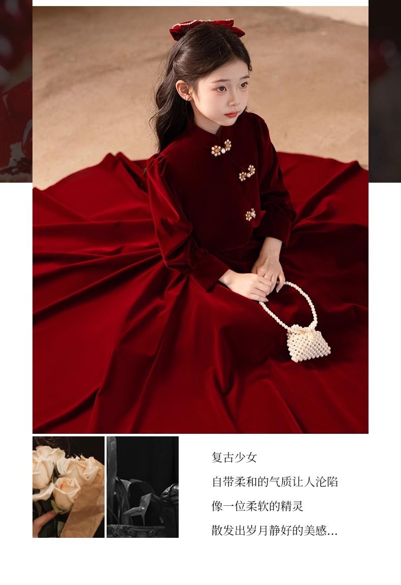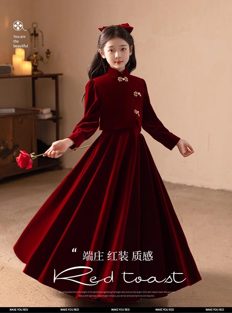 女童礼服秋冬新款红色连衣裙洋气生日公主裙小女孩过年服儿童裙子