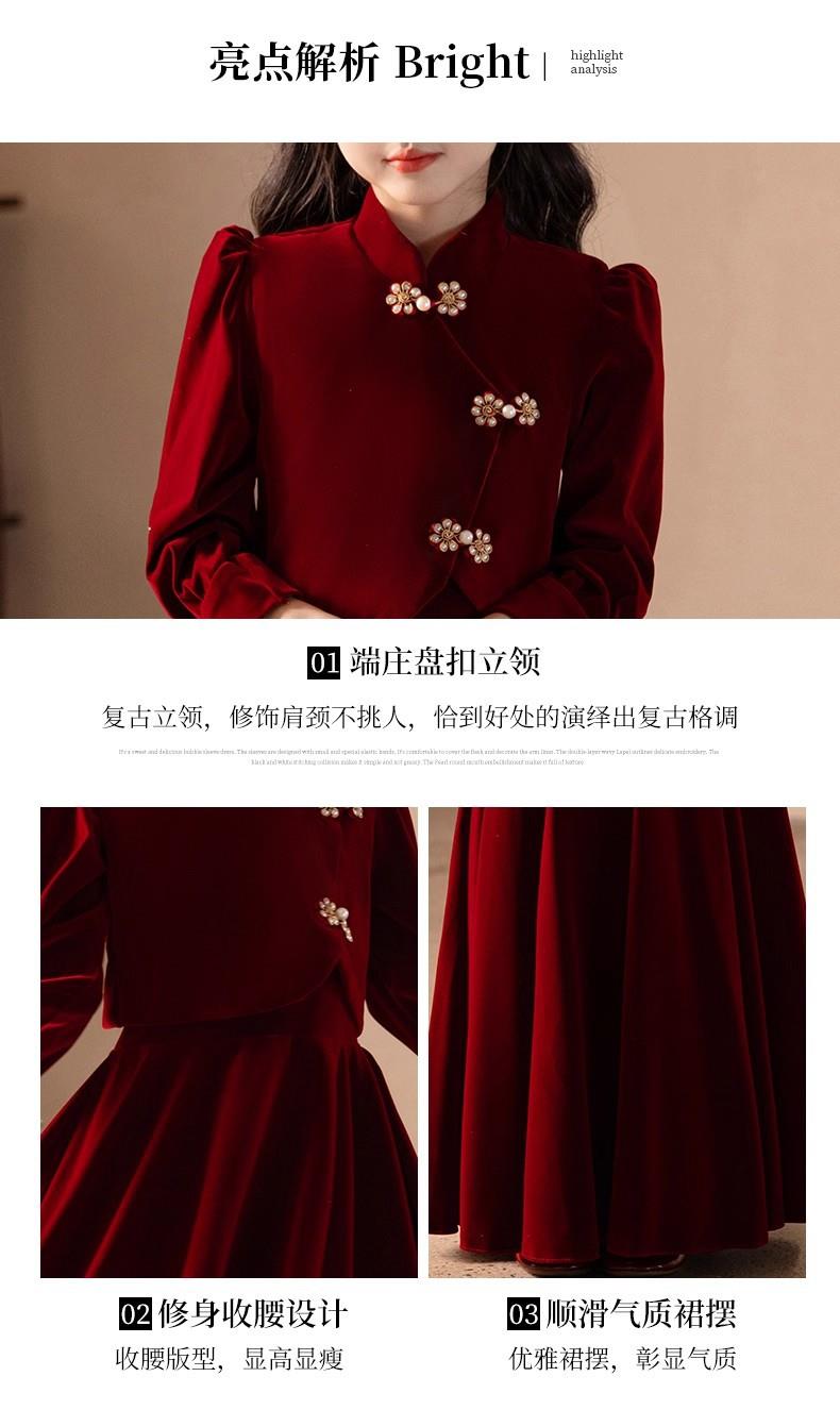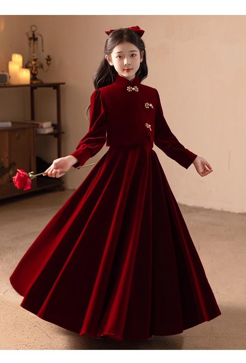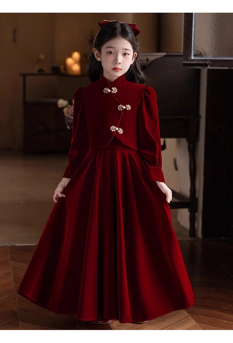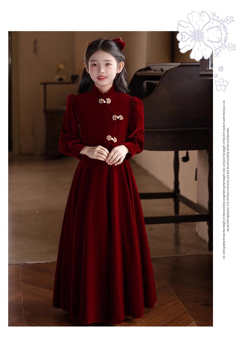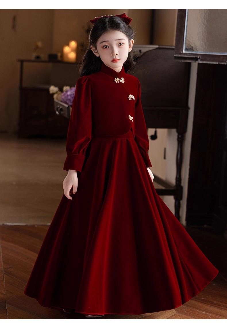 女童礼服秋冬新款红色连衣裙洋气生日公主裙小女孩过年服儿童裙子