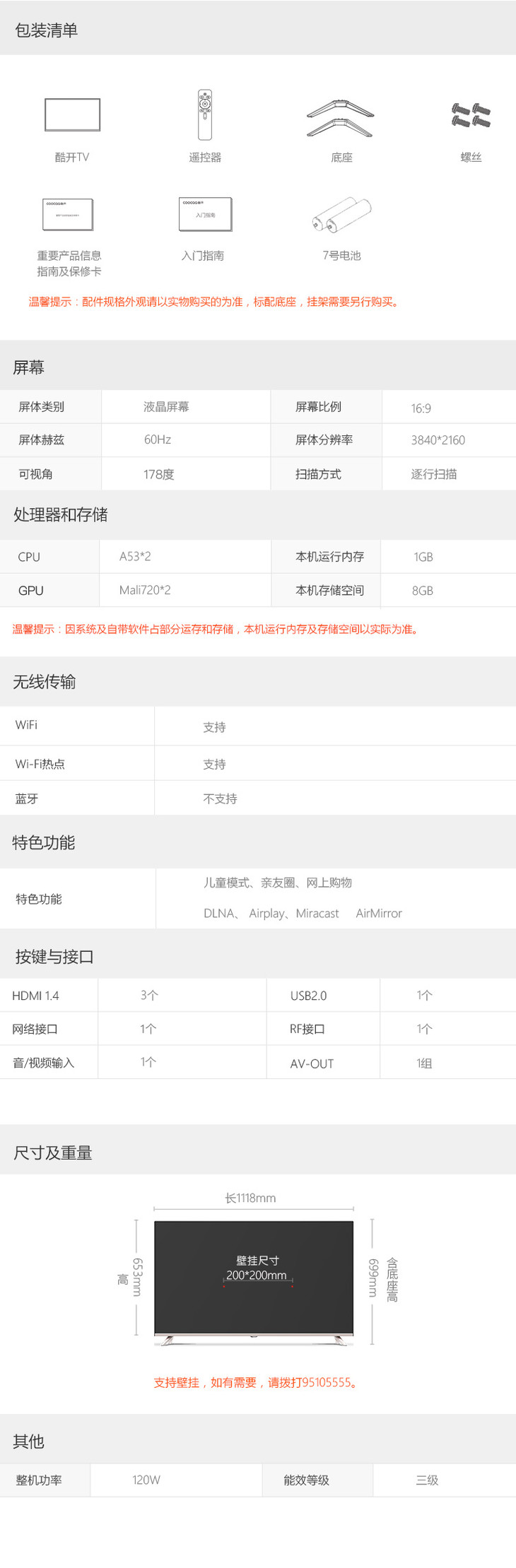 创维coocaa/酷开 50K5A 电视机50吋4K智能网络wifi平板液晶
