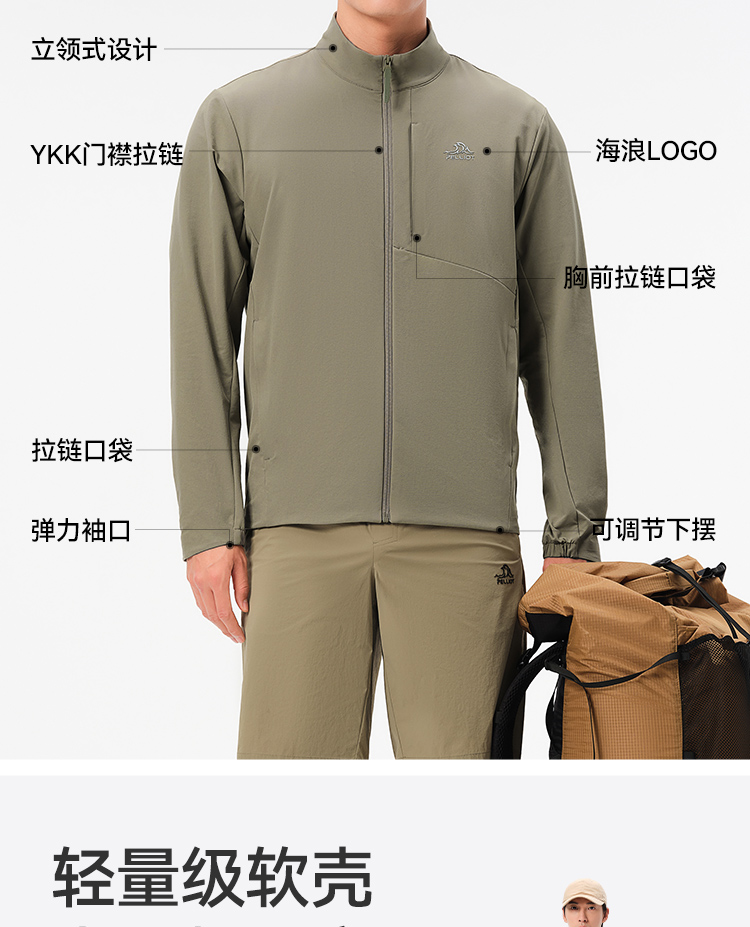 伯希和户外休闲衣男款防风防泼运动夹克上衣高弹耐磨徒步登山外套