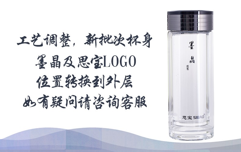 思宝墨晶双层玻璃杯商务办公带茶隔礼盒装车载透明水杯
