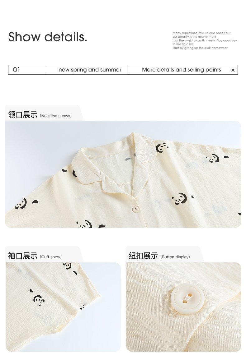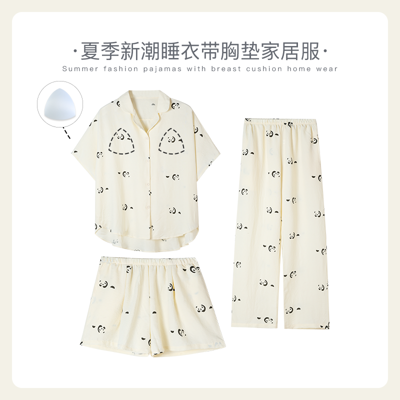 可人儿小众设计师新款泡泡绵女士睡衣夏季短袖可外出家居服三件套