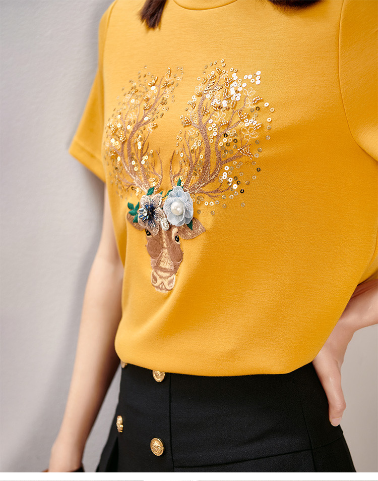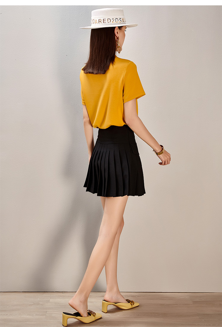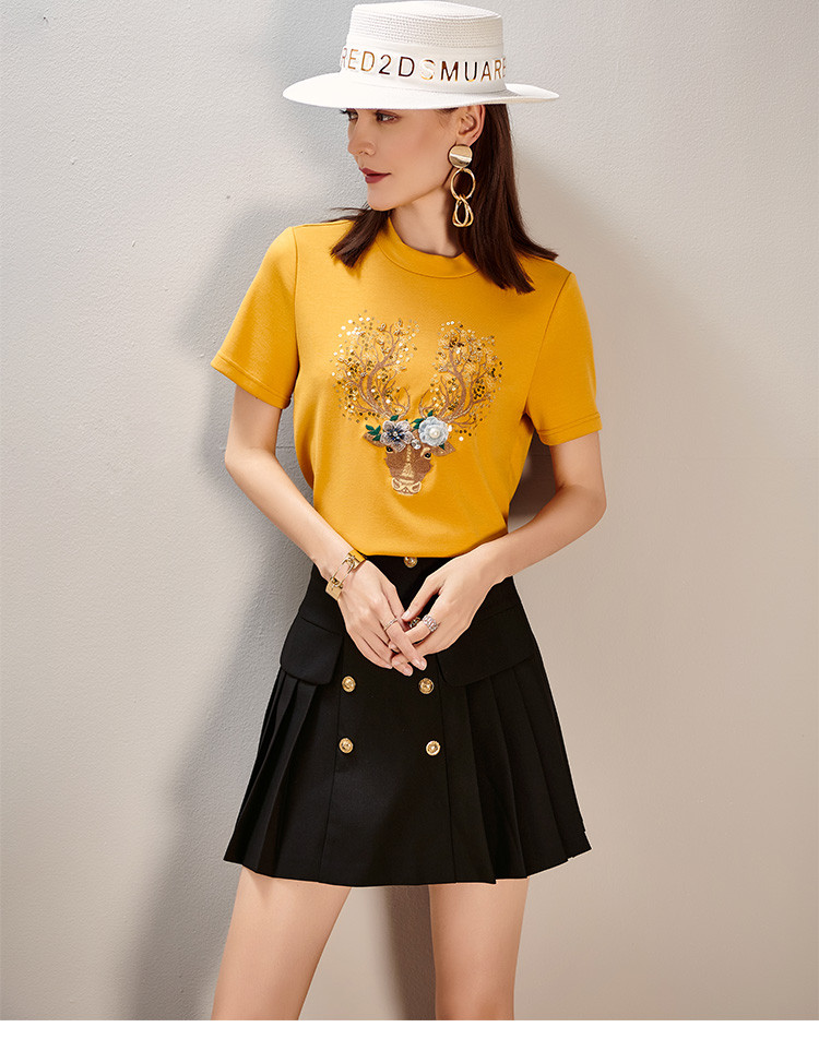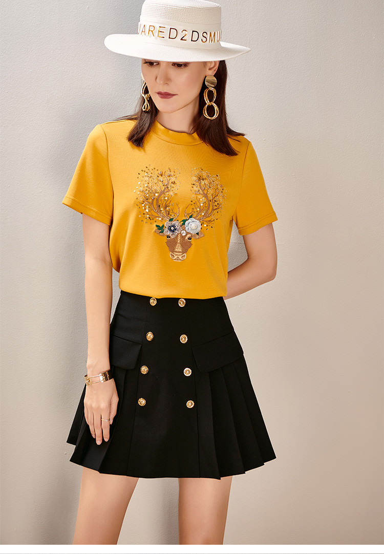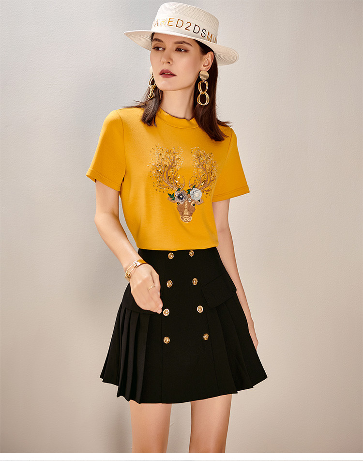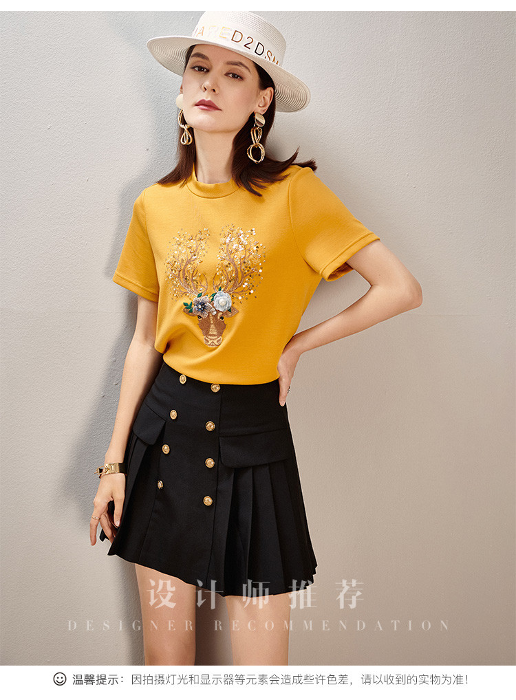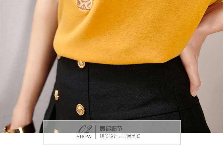 夏季时尚套装刺绣短袖T恤百褶A字半裙两件套