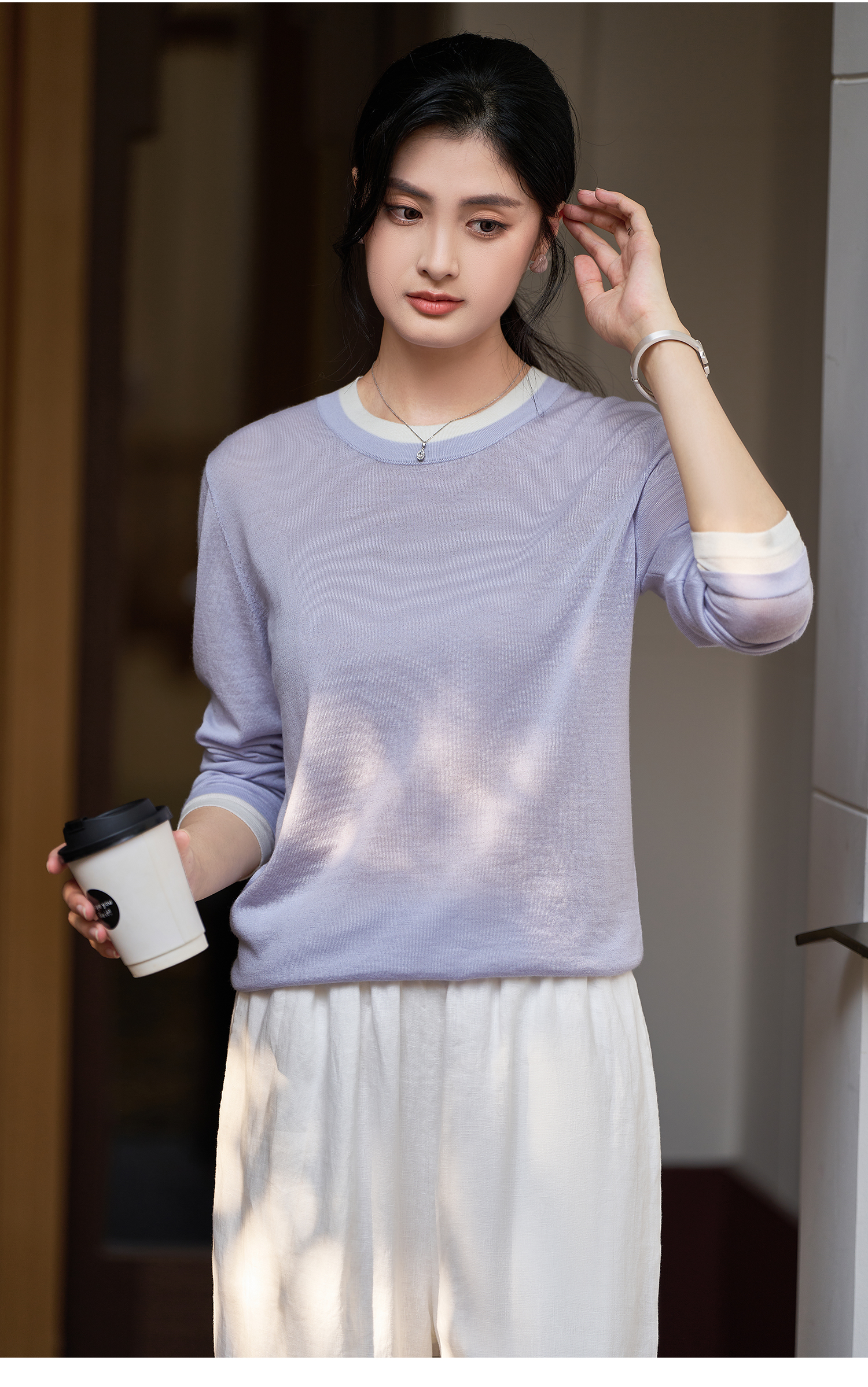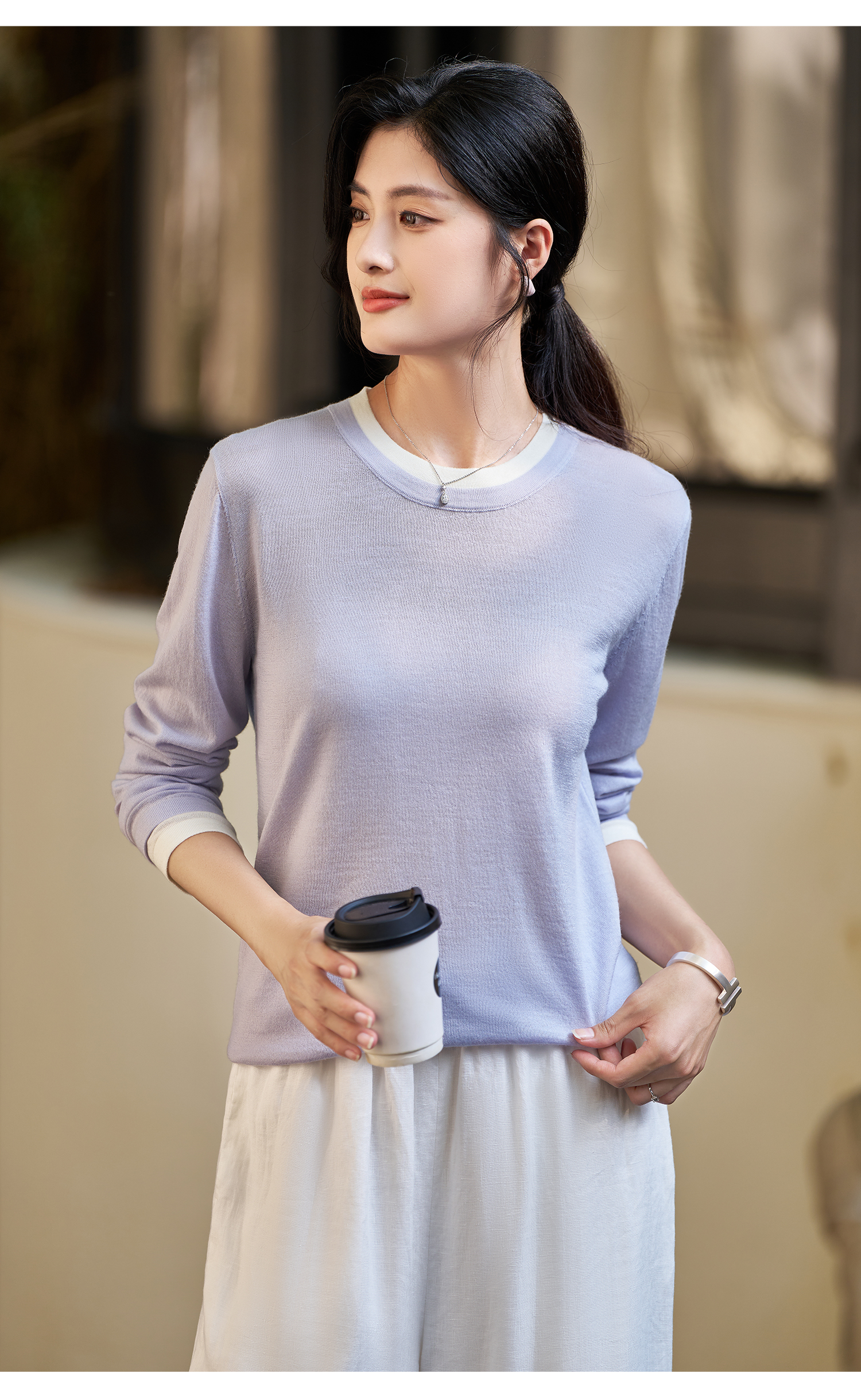 剩S/M/L/XL 米思阳2026春季新款设计感撞色毛针织衫时尚宽松显瘦内搭上衣4016